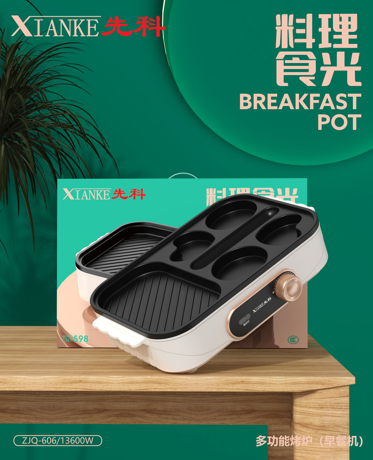 Новая многофункциональная машина для завтрака Xianke, универсальная домашняя кастрюля, сковорода для стейков, гриль для колбасы, сковорода для яиц с четырьмя отверстиями в подарок