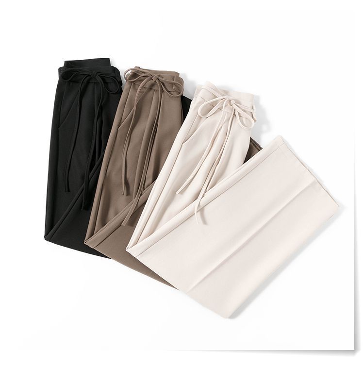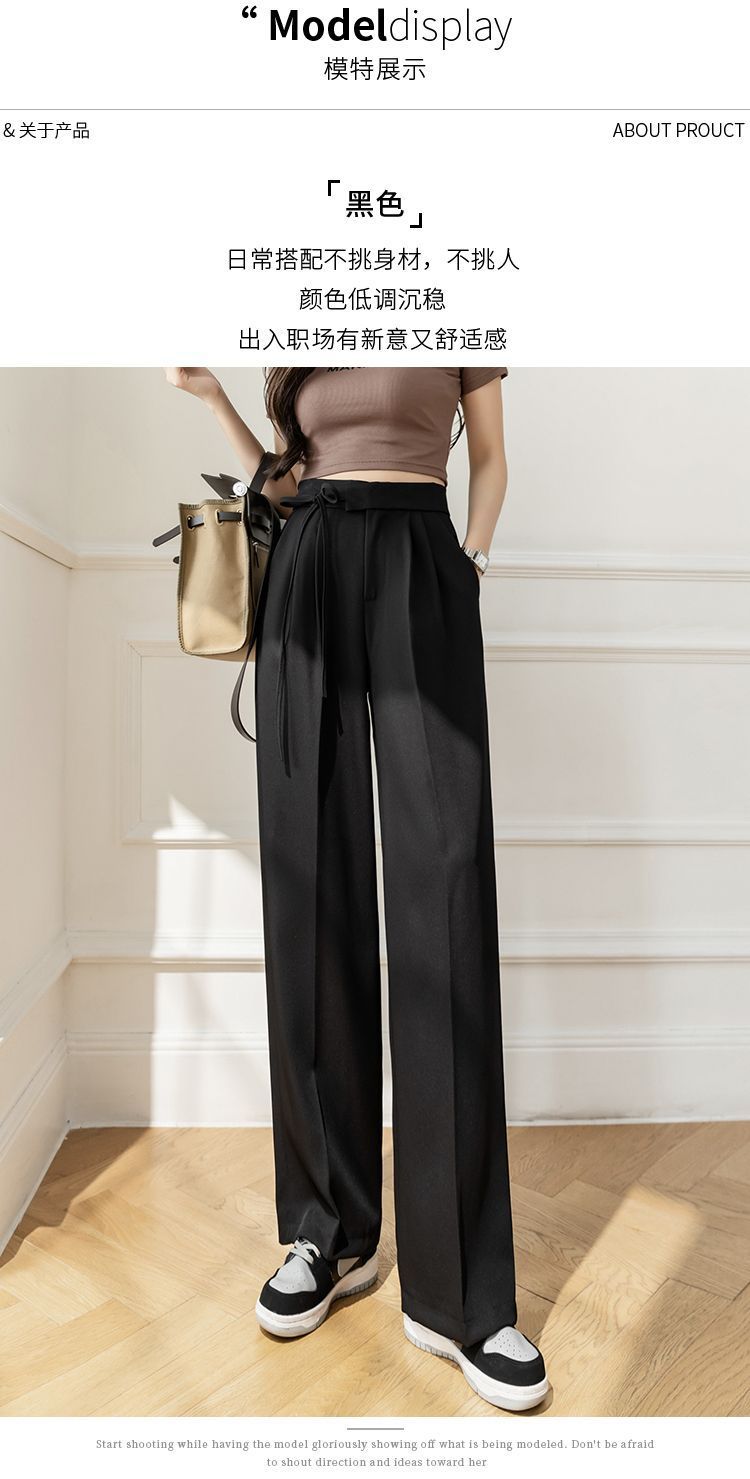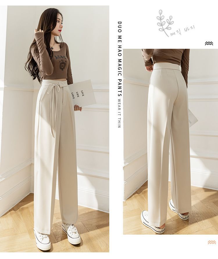 Прямые брюки с завязками для женщин, осенние миниатюрные брюки с высокой талией и широкими штанинами, новые повседневные классические брюки 2025 года.