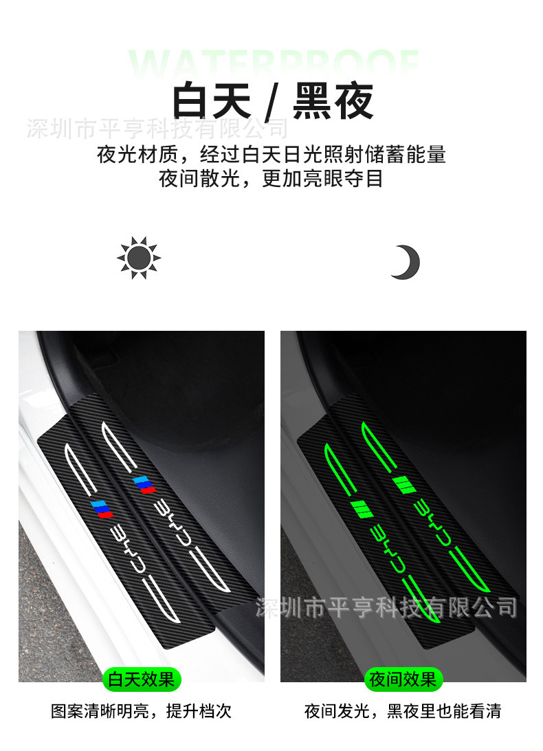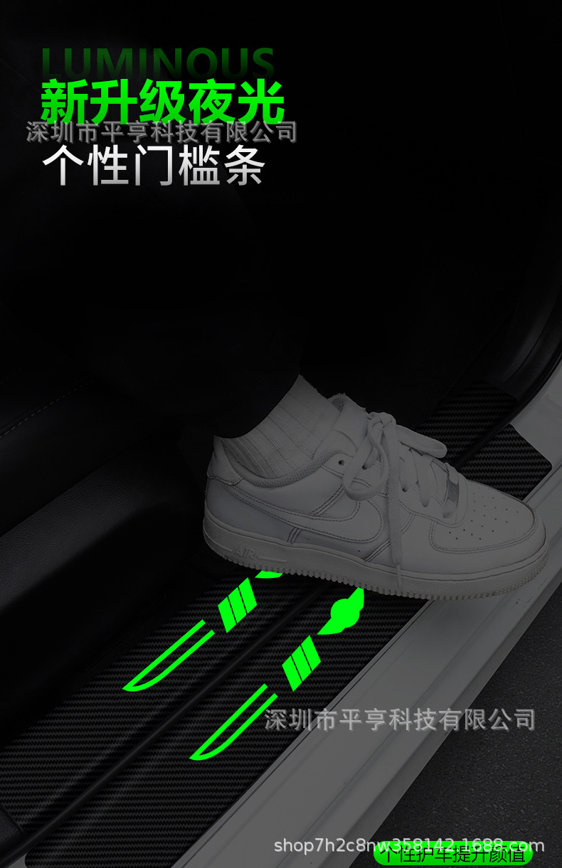 Автомобильные светящиеся накладки на пороги, наклейки против ступенек, защитные полосы для педалей приветствия на краю двери, универсальные декоративные принадлежности