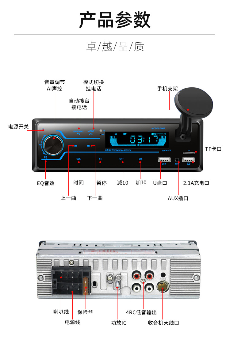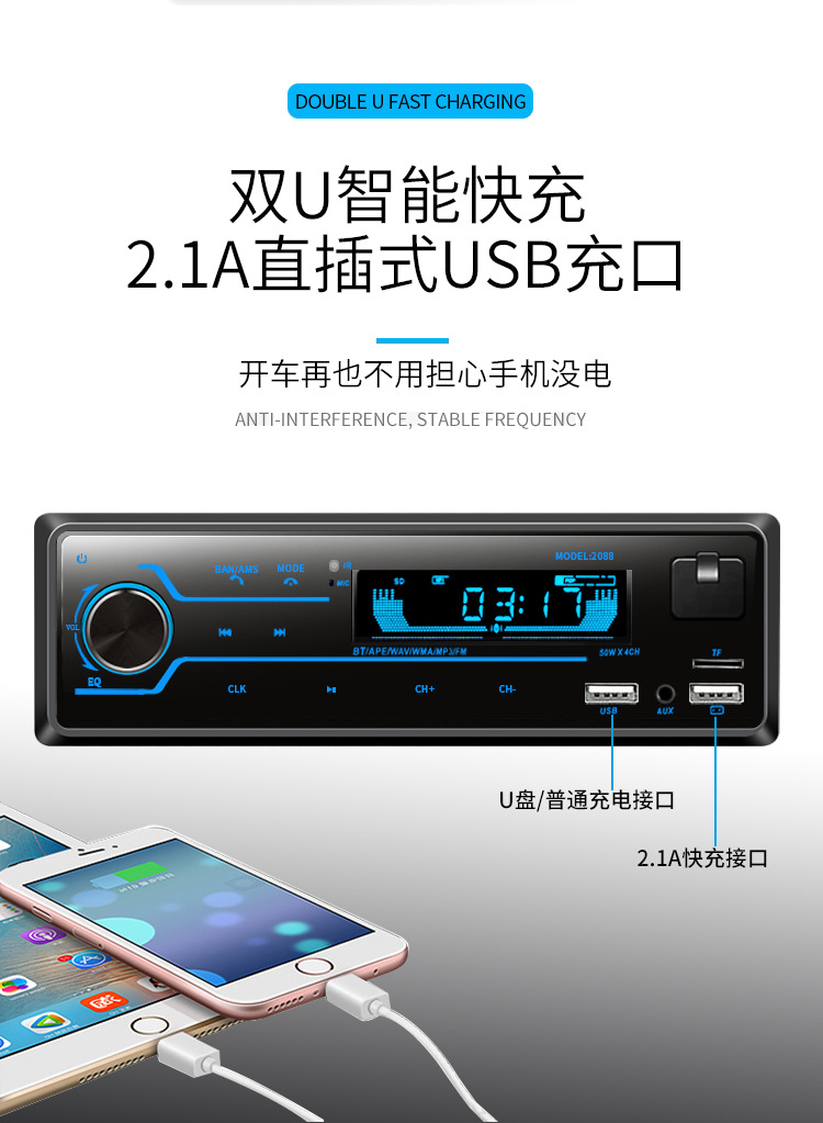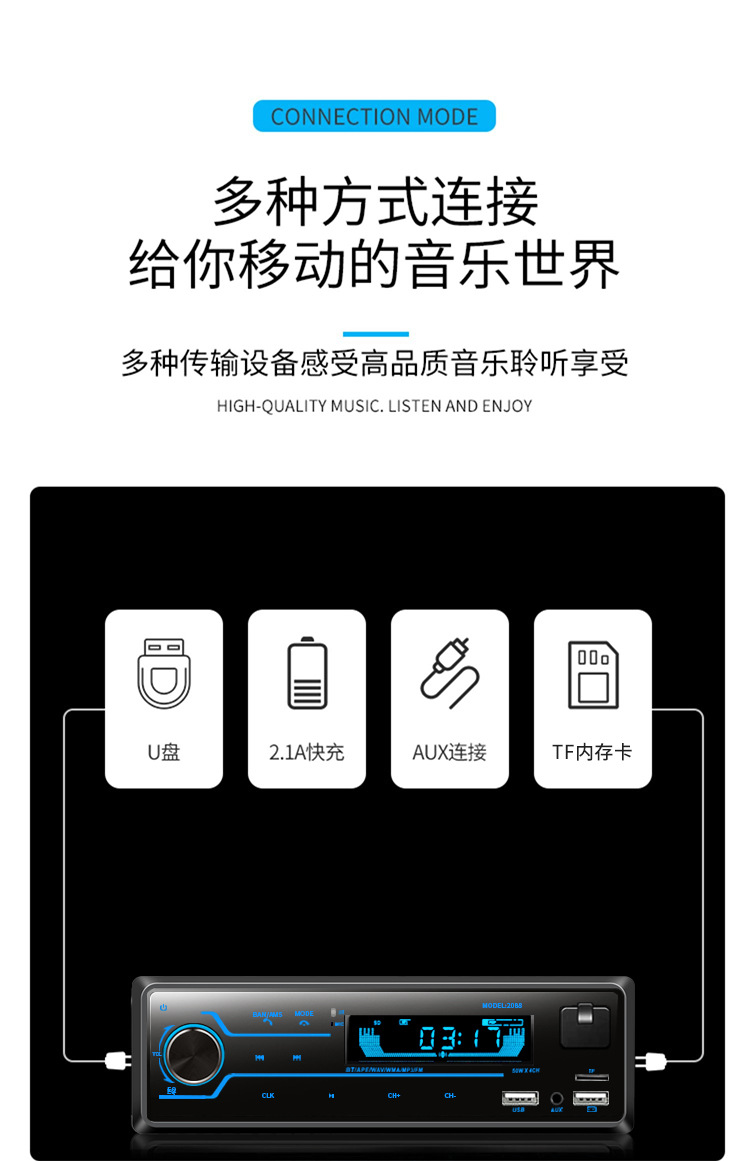 12V24V大功率蓝牙汽车插卡收音机车载MP3播放器汽车音响U盘主机