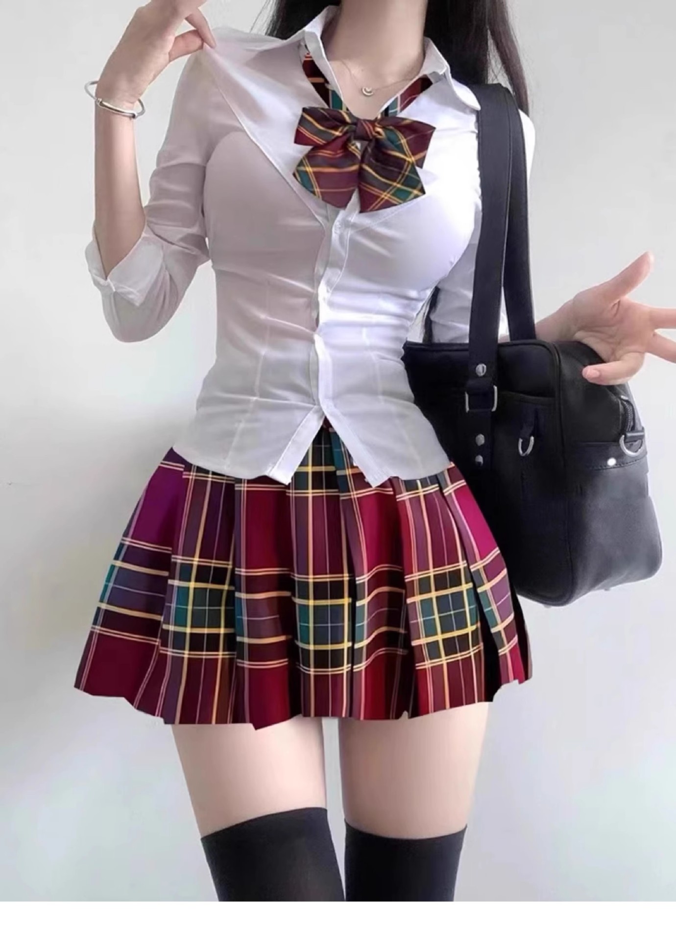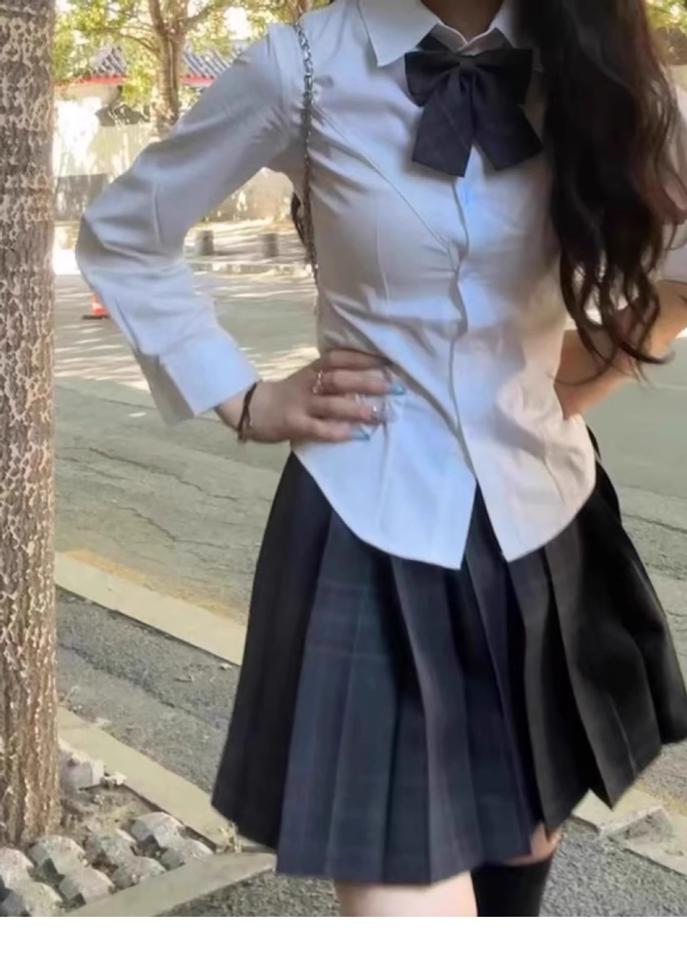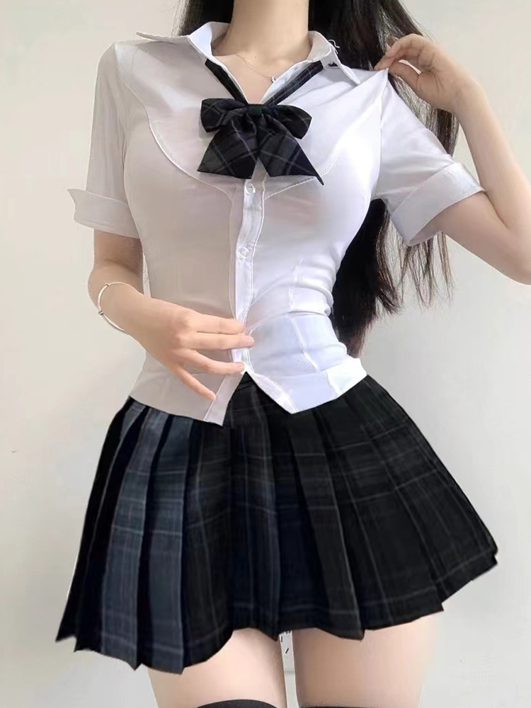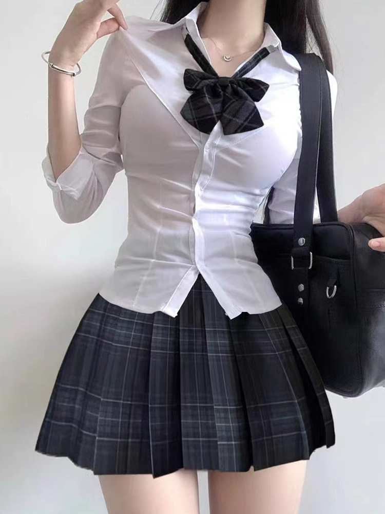 Рубашка с V-образным вырезом и короткими рукавами + черная клетчатая юбка + черный бант; Рубашка с V-образным вырезом и длинными рукавами + черная клетчатая юбка + черный галстук-бабочка; Рубашка с V-образным вырезом и короткими рукавами + красная клетчатая юбка + красный бант; Рубашка с V-образным вырезом и длинными рукавами + красная клетчатая юбка + красный бант; Рубашка с V-образным вырезом и короткими рукавами + клетчатая юбка Далан + бант Далан; Рубашка с V-образным вырезом и длинными рукавами + клетчатая юбка Далан + галстук-бабочка Далан; Рубашка с V-образным вырезом и короткими рукавами + юбка в клетку подсолнечника + бант подсолнечника; Рубашка с V-образным вырезом и длинными рукавами + юбка в клетку подсолнечника + бант подсолнечника; Рубашка с V-образным вырезом и короткими рукавами + юбка в клетку перца + бант перца; Рубашка с V-образным вырезом и длинными рукавами + юбка в перцевом клетку + бант в перцем; Рубашка с V-образным вырезом и короткими рукавами + клетчатая юбка Окарида + темно-синий бант; Рубашка с V-образным вырезом и длинными рукавами + клетчатая юбка Окарида + клетчатая юбка с бантом; Рубашка с V-образным вырезом и короткими рукавами + летняя клетчатая юбка + летний бант; Рубашка с длинными рукавами с V-образным вырезом + летняя клетчатая юбка + летний галстук-бабочка; Рубашка с V-образным вырезом и короткими рукавами + маленькая абрикосовая юбка средней длины + маленький абрикосовый бант средней длины.; Рубашка с V-образным вырезом и длинными рукавами + маленькая абрикосовая юбка средней длины + маленький абрикосовый бант средней длины.; Рубашка с V-образным вырезом и короткими рукавами + серая клетчатая юбка + серый бант; Рубашка с V-образным вырезом и длинными рукавами + серая клетчатая юбка + серый бант; Рубашка с короткими рукавами с V-образным вырезом + клетчатая юбка из боярышника + клетчатая юбка с бантом; Рубашка с V-образным вырезом и длинными рукавами + клетчатая юбка из боярышника + клетчатая юбка с бантом; Рубашка с V-образным вырезом и короткими рукавами + угольно-серая клетчатая юбка + клетчатая юбка с бантом; Рубашка с V-образным вырезом и длинными рукавами + угольно-серая клетчатая юбка + клетчатая юбка с бантом; Белая рубашка с острым воротником и длинными рукавами, базовый фасон (без аксессуаров), можно отметить короткие рукава.; Рубашка с V-образным вырезом и короткими рукавами (одинарная рубашка); Рубашка с V-образным вырезом, рубашка с длинными рукавами (одинарная рубашка); Черная клетчатая юбка + черный бант