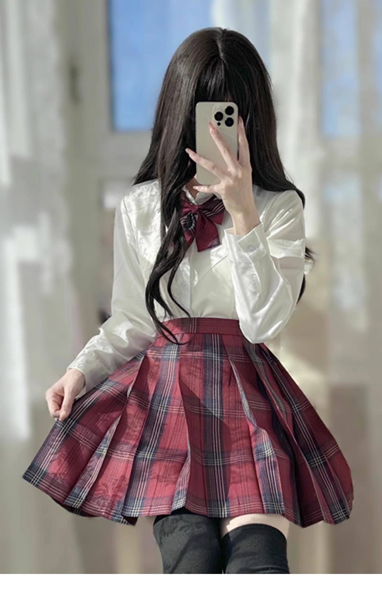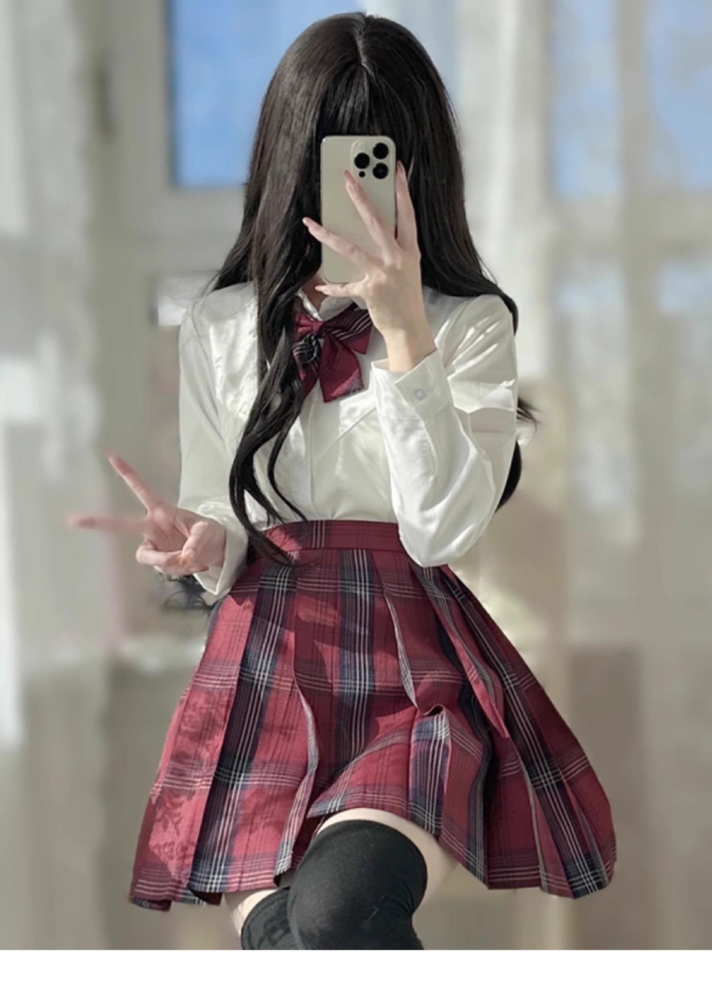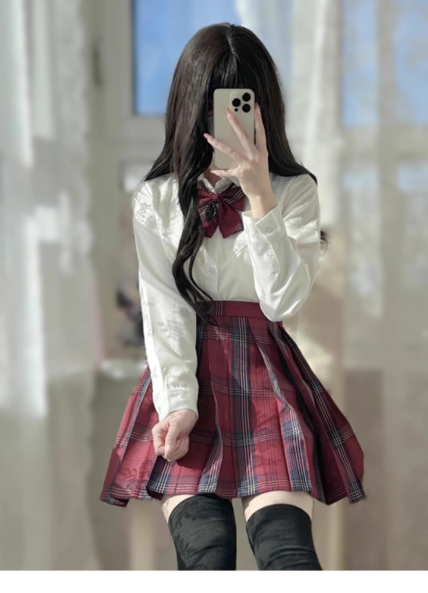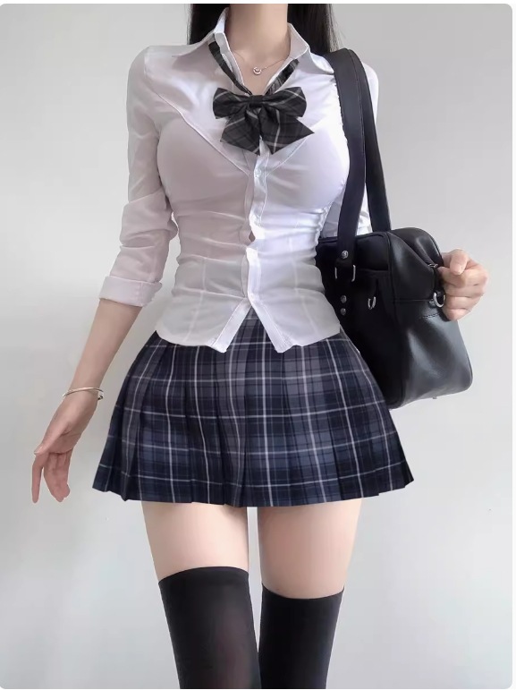 Рубашка с V-образным вырезом и короткими рукавами + черная клетчатая юбка + черный бант; Рубашка с V-образным вырезом и длинными рукавами + черная клетчатая юбка + черный галстук-бабочка; Рубашка с V-образным вырезом и короткими рукавами + красная клетчатая юбка + красный бант; Рубашка с V-образным вырезом и длинными рукавами + красная клетчатая юбка + красный бант; Рубашка с V-образным вырезом и короткими рукавами + клетчатая юбка Далан + бант Далан; Рубашка с V-образным вырезом и длинными рукавами + клетчатая юбка Далан + галстук-бабочка Далан; Рубашка с V-образным вырезом и короткими рукавами + юбка в клетку подсолнечника + бант подсолнечника; Рубашка с V-образным вырезом и длинными рукавами + юбка в клетку подсолнечника + бант подсолнечника; Рубашка с V-образным вырезом и короткими рукавами + юбка в клетку перца + бант перца; Рубашка с V-образным вырезом и длинными рукавами + юбка в перцевом клетку + бант в перцем; Рубашка с V-образным вырезом и короткими рукавами + клетчатая юбка Окарида + темно-синий бант; Рубашка с V-образным вырезом и длинными рукавами + клетчатая юбка Окарида + клетчатая юбка с бантом; Рубашка с V-образным вырезом и короткими рукавами + летняя клетчатая юбка + летний бант; Рубашка с длинными рукавами с V-образным вырезом + летняя клетчатая юбка + летний галстук-бабочка; Рубашка с V-образным вырезом и короткими рукавами + маленькая абрикосовая юбка средней длины + маленький абрикосовый бант средней длины.; Рубашка с V-образным вырезом и длинными рукавами + маленькая абрикосовая юбка средней длины + маленький абрикосовый бант средней длины.; Рубашка с V-образным вырезом и короткими рукавами + серая клетчатая юбка + серый бант; Рубашка с V-образным вырезом и длинными рукавами + серая клетчатая юбка + серый бант; Рубашка с короткими рукавами с V-образным вырезом + клетчатая юбка из боярышника + клетчатая юбка с бантом; Рубашка с V-образным вырезом и длинными рукавами + клетчатая юбка из боярышника + клетчатая юбка с бантом; Рубашка с V-образным вырезом и короткими рукавами + угольно-серая клетчатая юбка + клетчатая юбка с бантом; Рубашка с V-образным вырезом и длинными рукавами + угольно-серая клетчатая юбка + клетчатая юбка с бантом; Белая рубашка с острым воротником и длинными рукавами, базовый фасон (без аксессуаров), можно отметить короткие рукава.; Рубашка с V-образным вырезом и короткими рукавами (одинарная рубашка); Рубашка с V-образным вырезом, рубашка с длинными рукавами (одинарная рубашка); Черная клетчатая юбка + черный бант