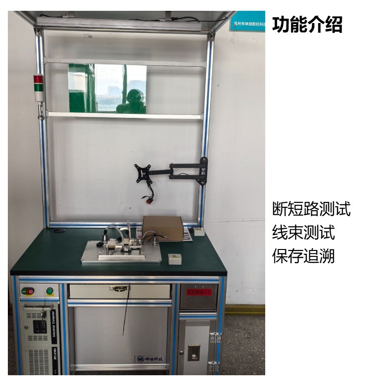 设备可以自动检测线束的导通、电阻、电压、绝缘、断线等功能。自动保存数据。并输出产品测试结果。设备带有打印及扫描功能。不良品控制等功能。数据自动保存及且可随时查阅。设备型号可扩展,数量不受限制,可节约大量专机专用成本。
