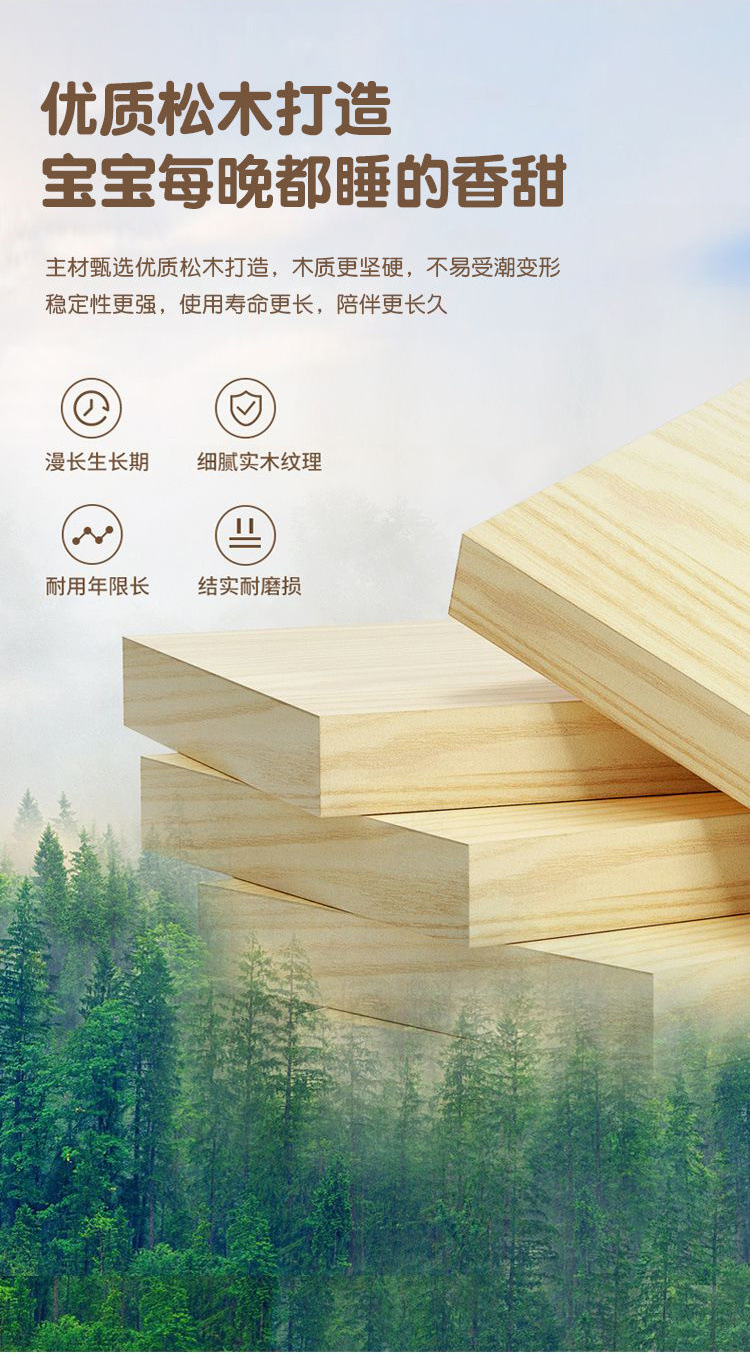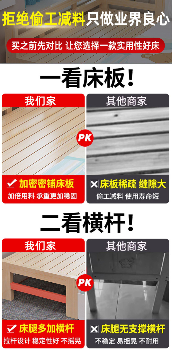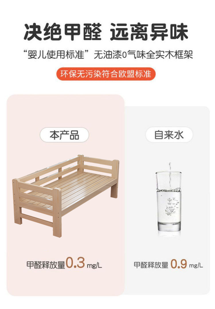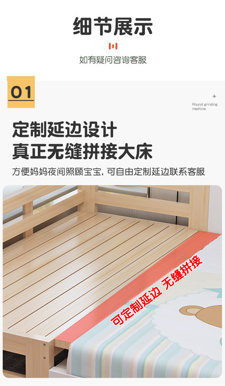 Кровать из цельного дерева, детская кровать, детская кроватка из цельного дерева, утолщенная и утолщенная большая кровать, детская прикроватная кровать, плоская кровать.