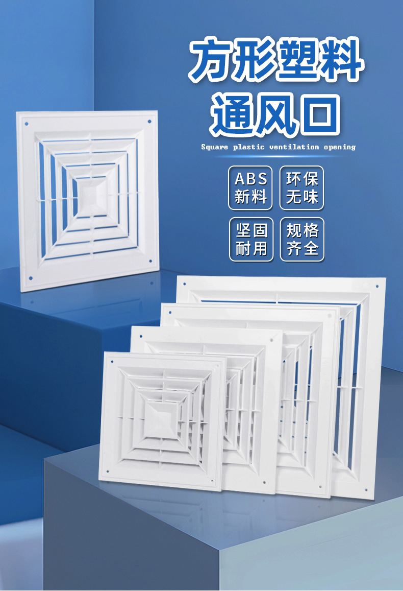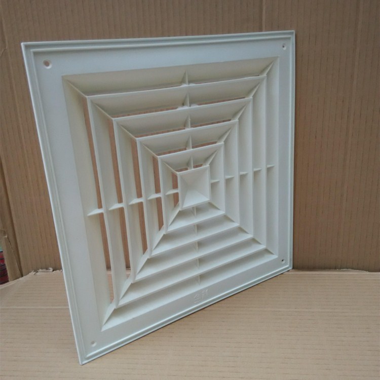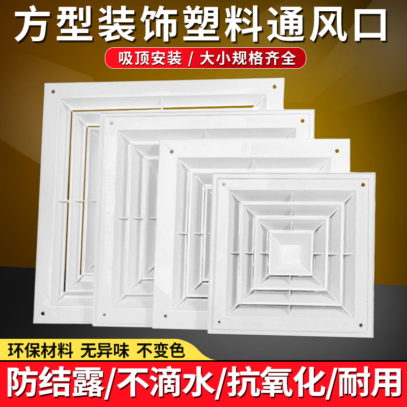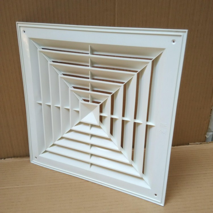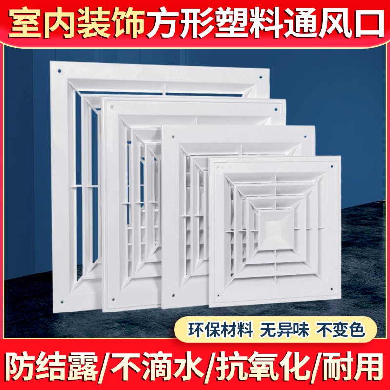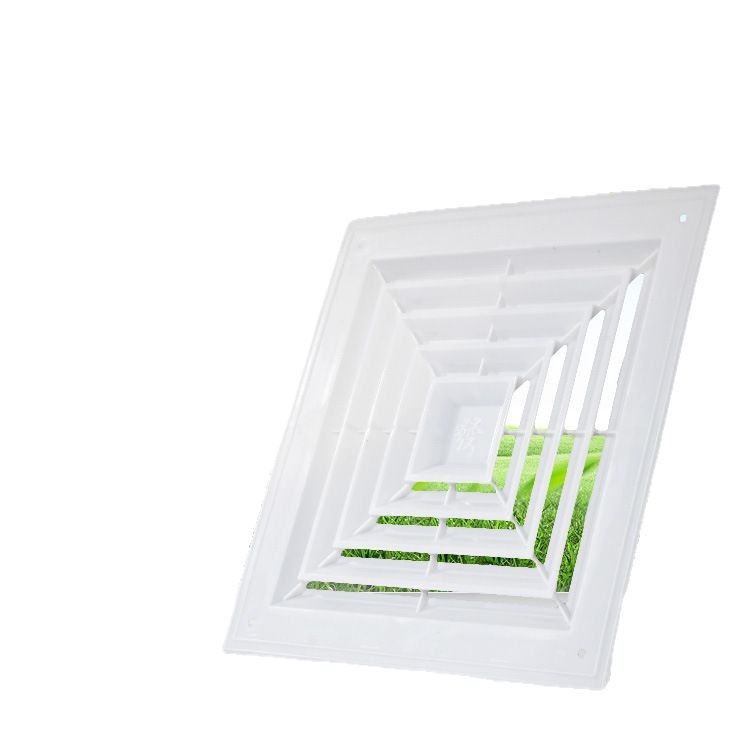 Вентиляционный центральный кондиционер, потолочный пластиковый жалюзийный воздуховод, квадратный диффузор