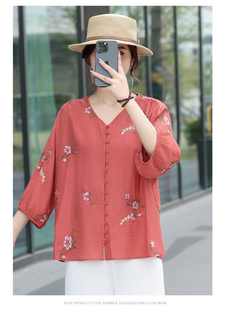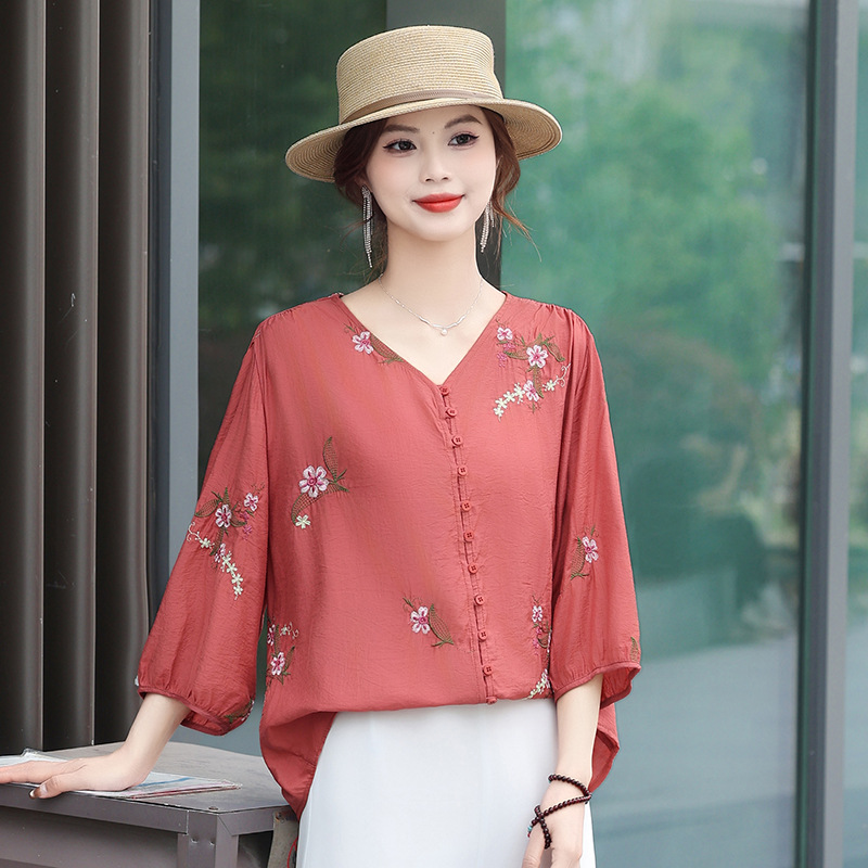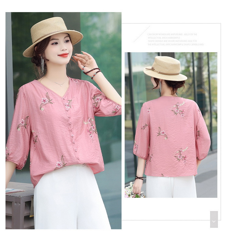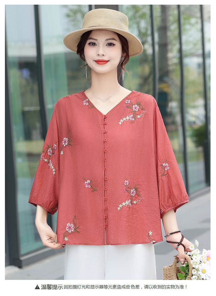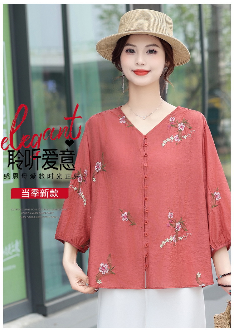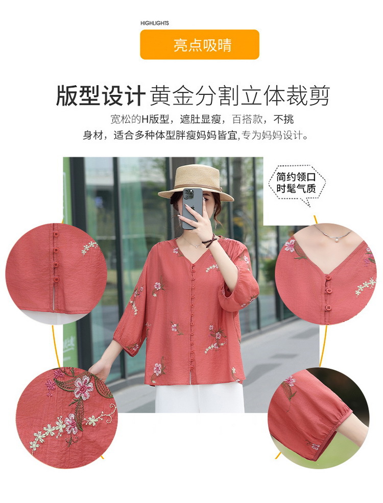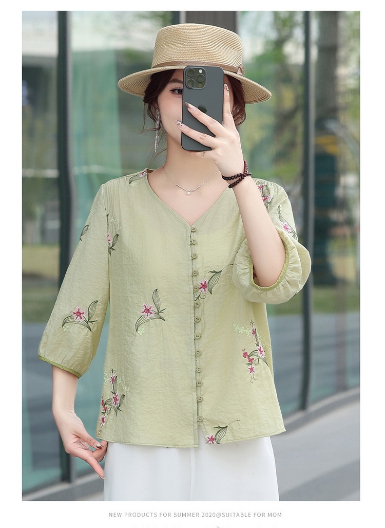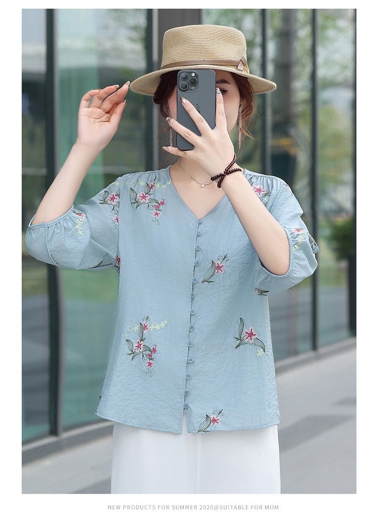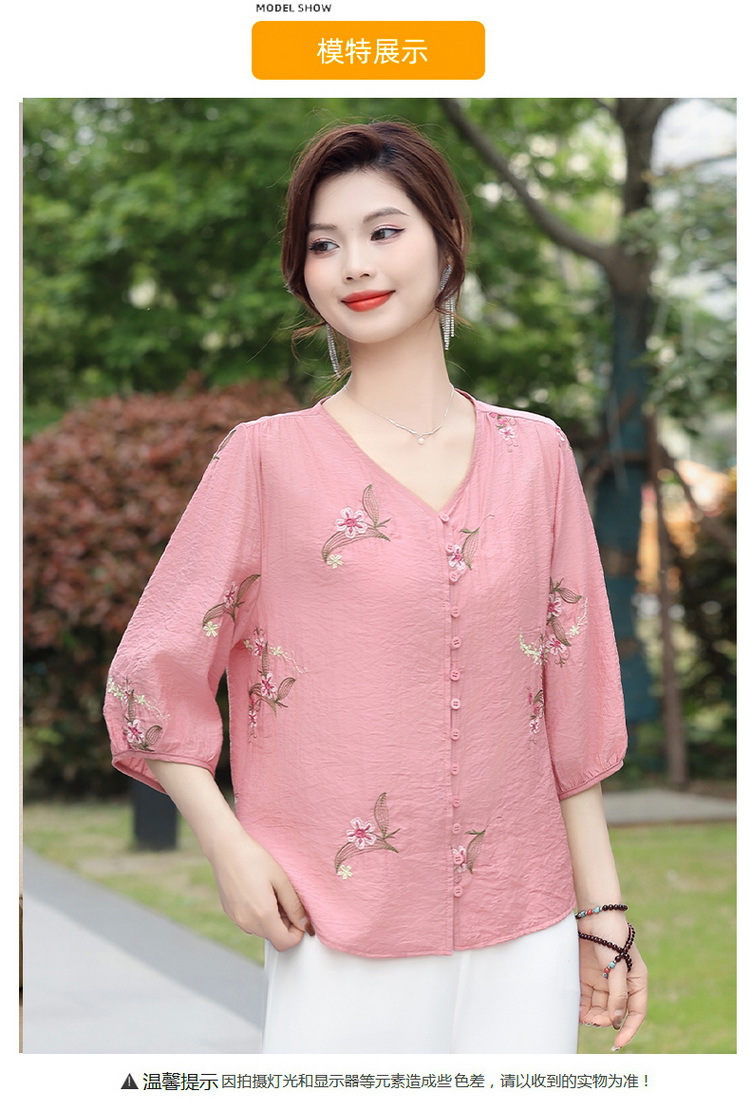 2025 Новый стиль вышитый хлопчатобумажный пиджак с короткими рукавами рубашка женская пуговица