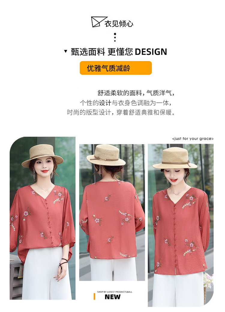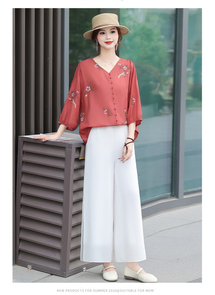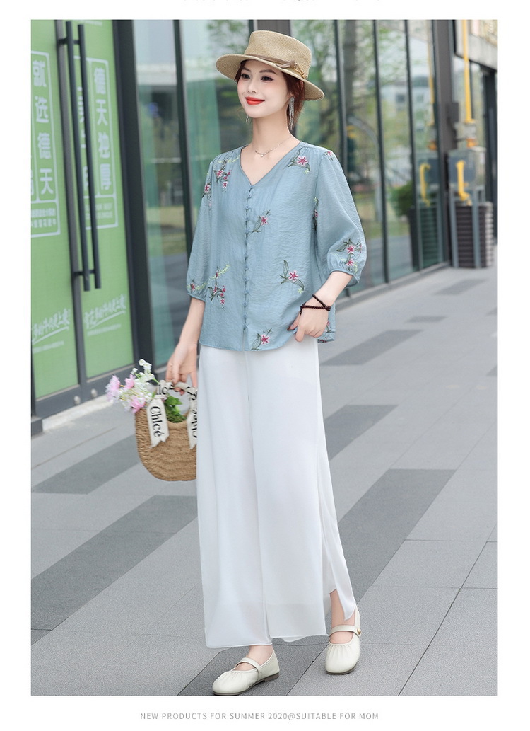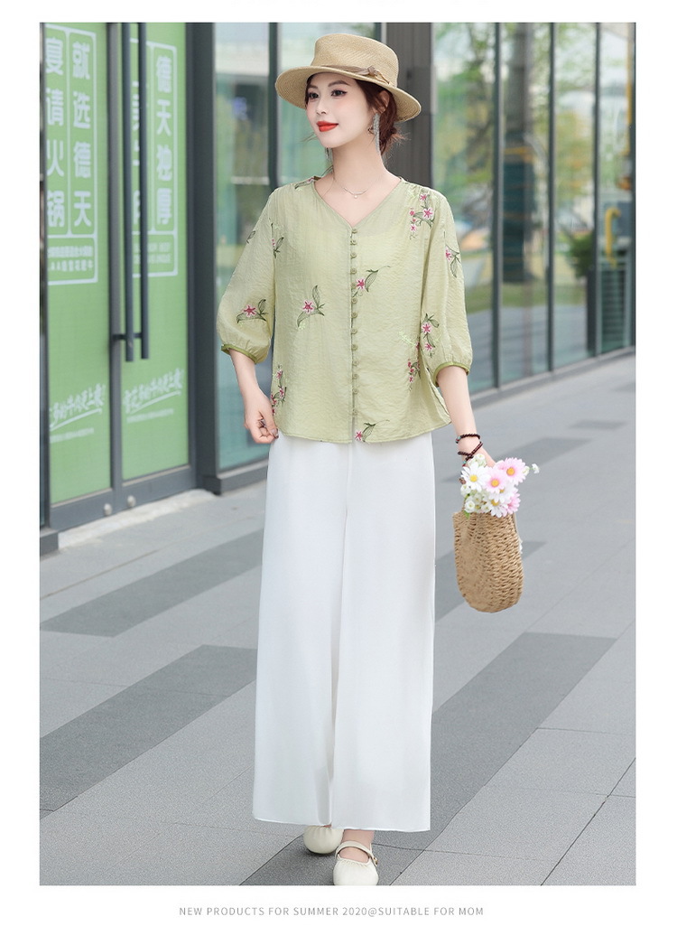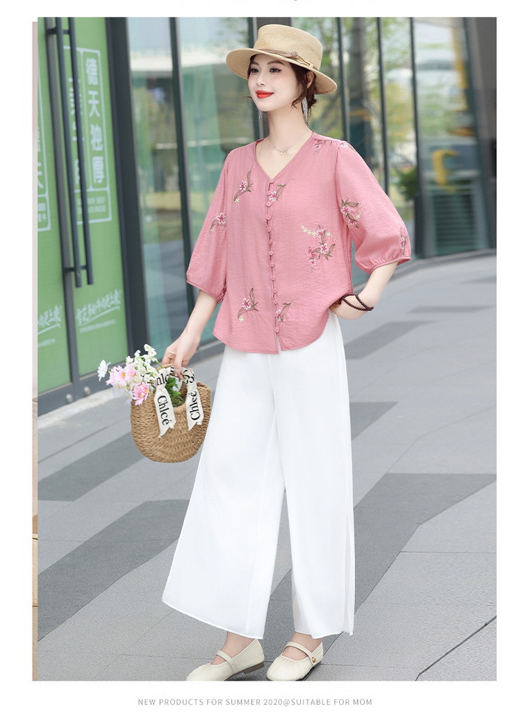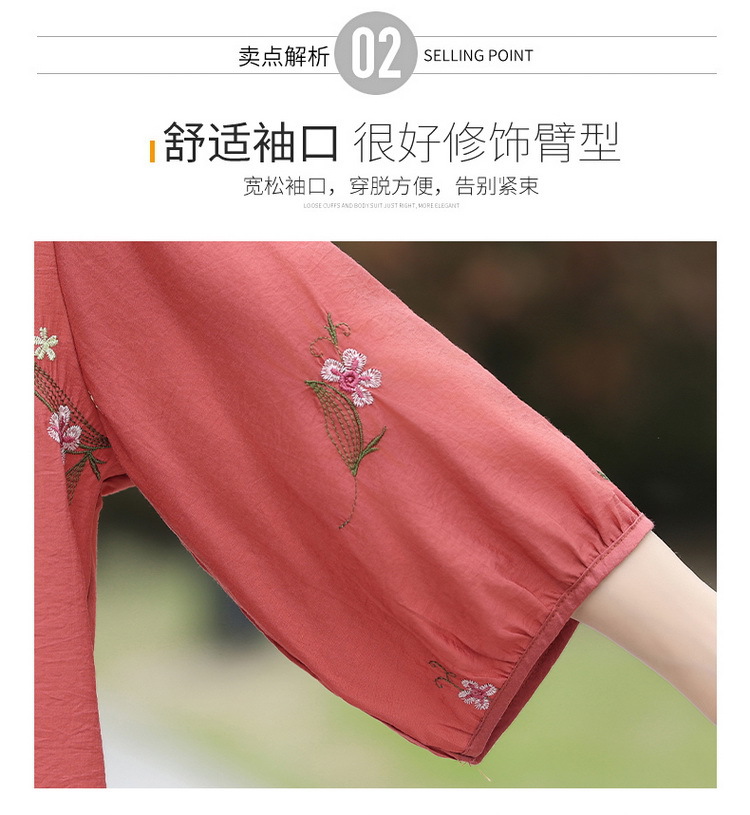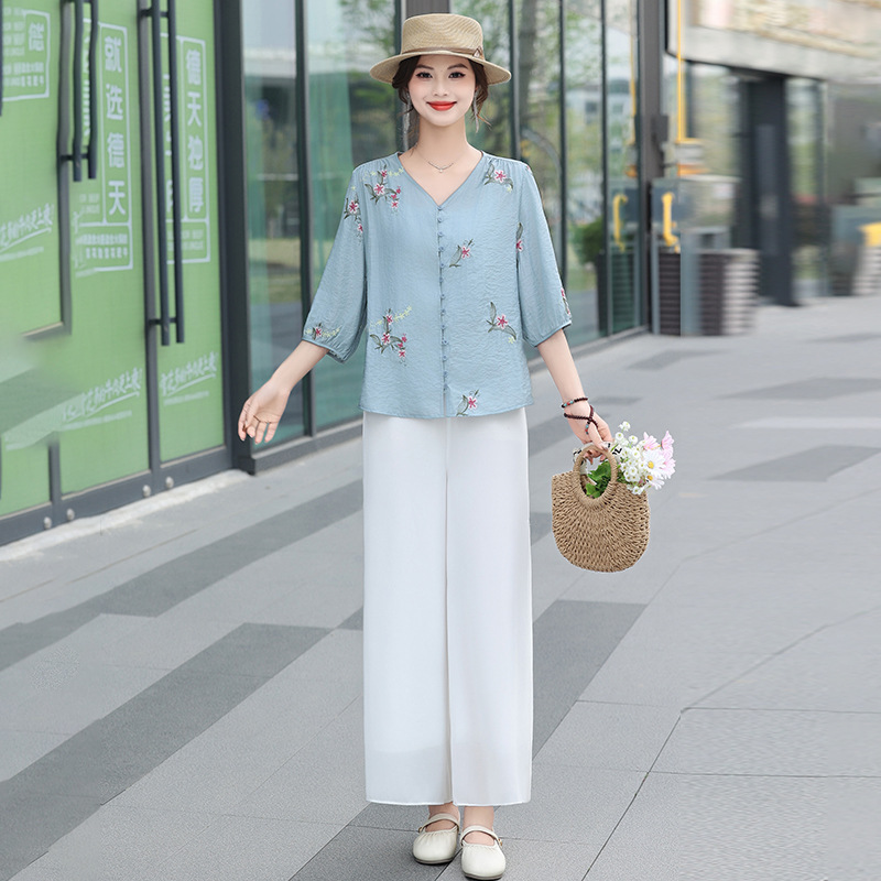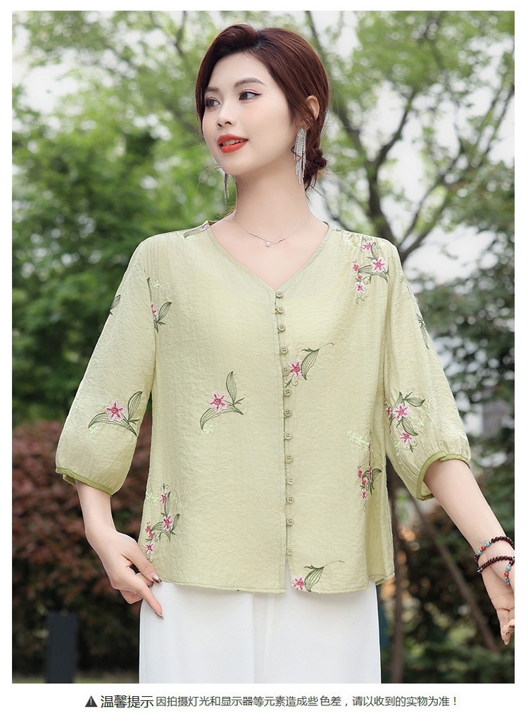 2025 Новый стиль вышитый хлопчатобумажный пиджак с короткими рукавами рубашка женская пуговица