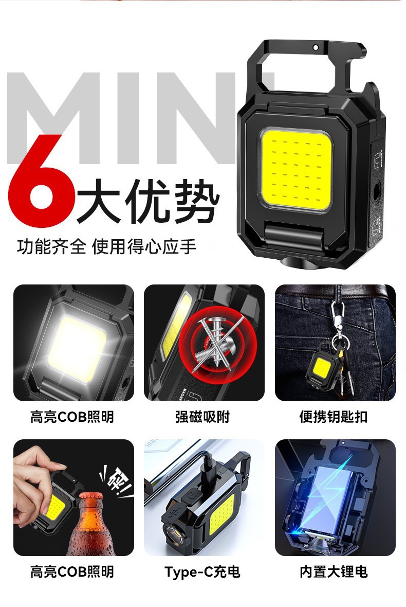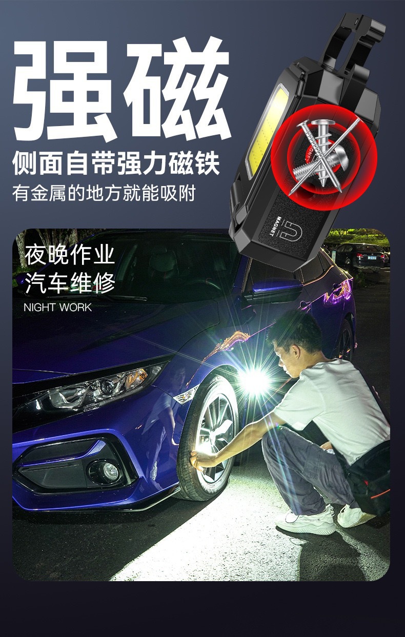 Трансграничный новый многофункциональный свет для ключей USB зарядка портативный мини-светодиодный фонарь для росы магнитный всасывающий рабочий свет