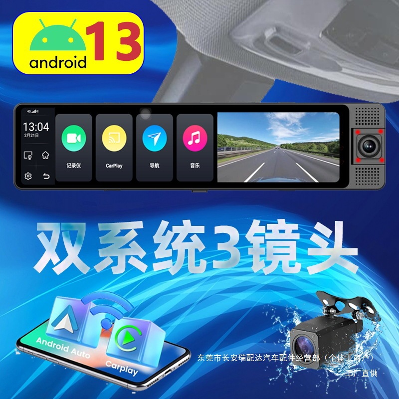 Lutian 2025 новый видеорегистратор с зеркалом заднего вида с тремя объективами для передней и задней части, интеллектуальная навигация, дистанционная настройка.