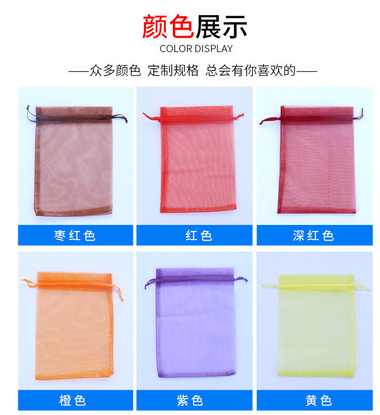 Сплошной цветной мешочек из органзы, упаковка на шнурке, прозрачный марлевый мешочек, подарочный мешочек разных размеров, маленький мешочек на шнурке, свадебный мешочек для конфет