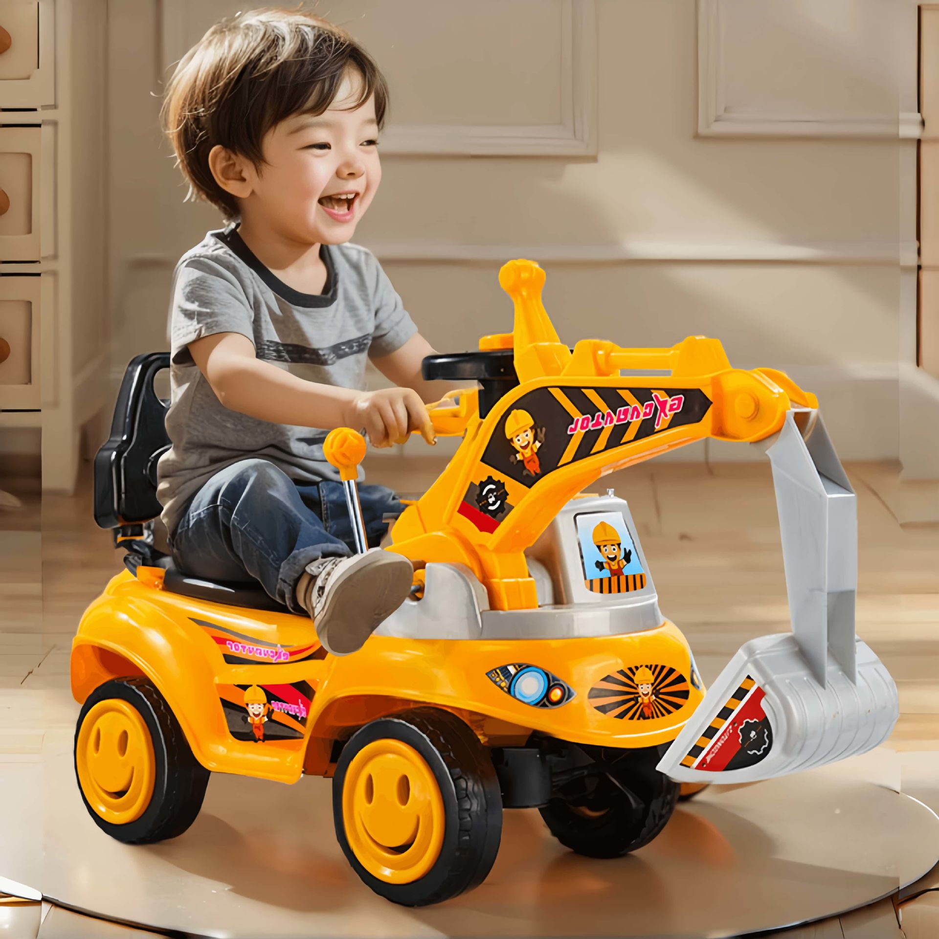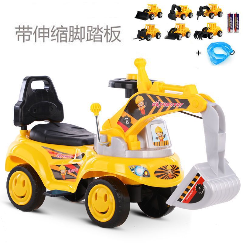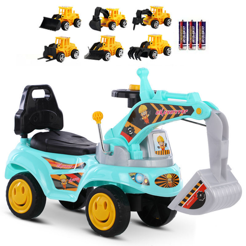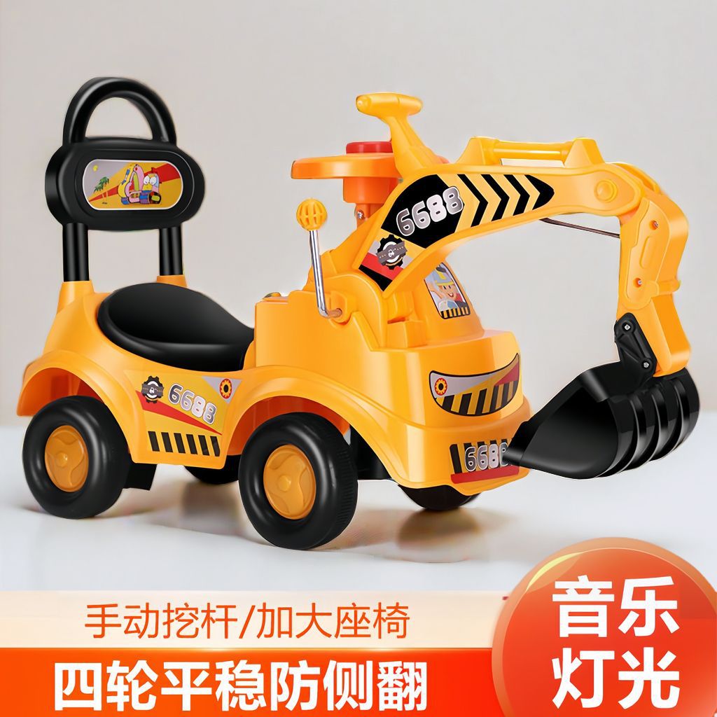 Детский экскаватор, на котором может сидеть мальчик, игрушка для детей от 1 до 3 лет, с возможностью катания на поворотном автомобиле и скользящей строительной машиной.