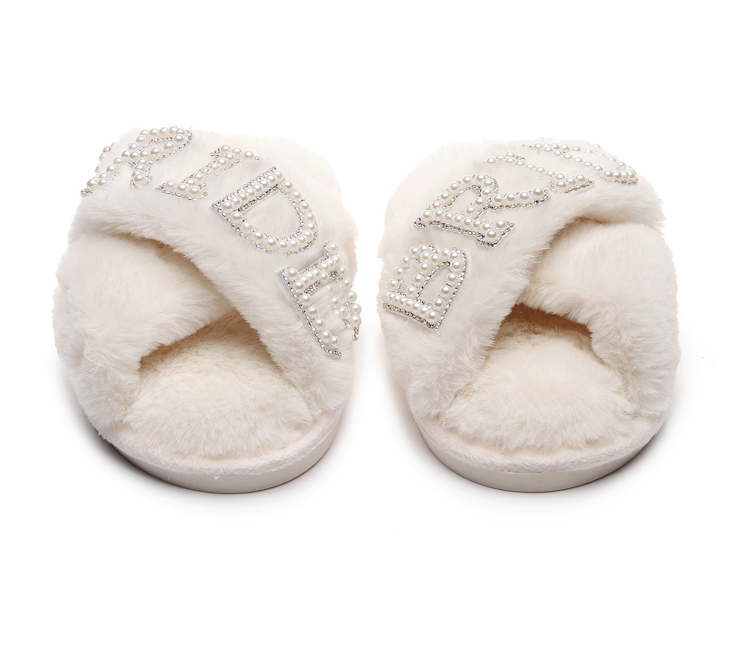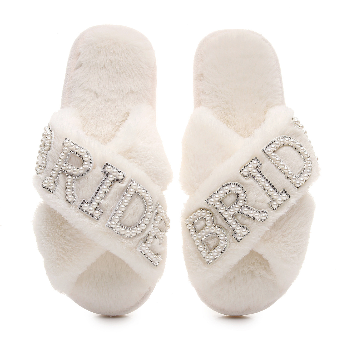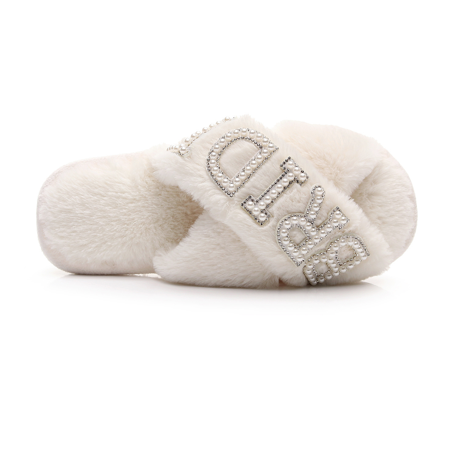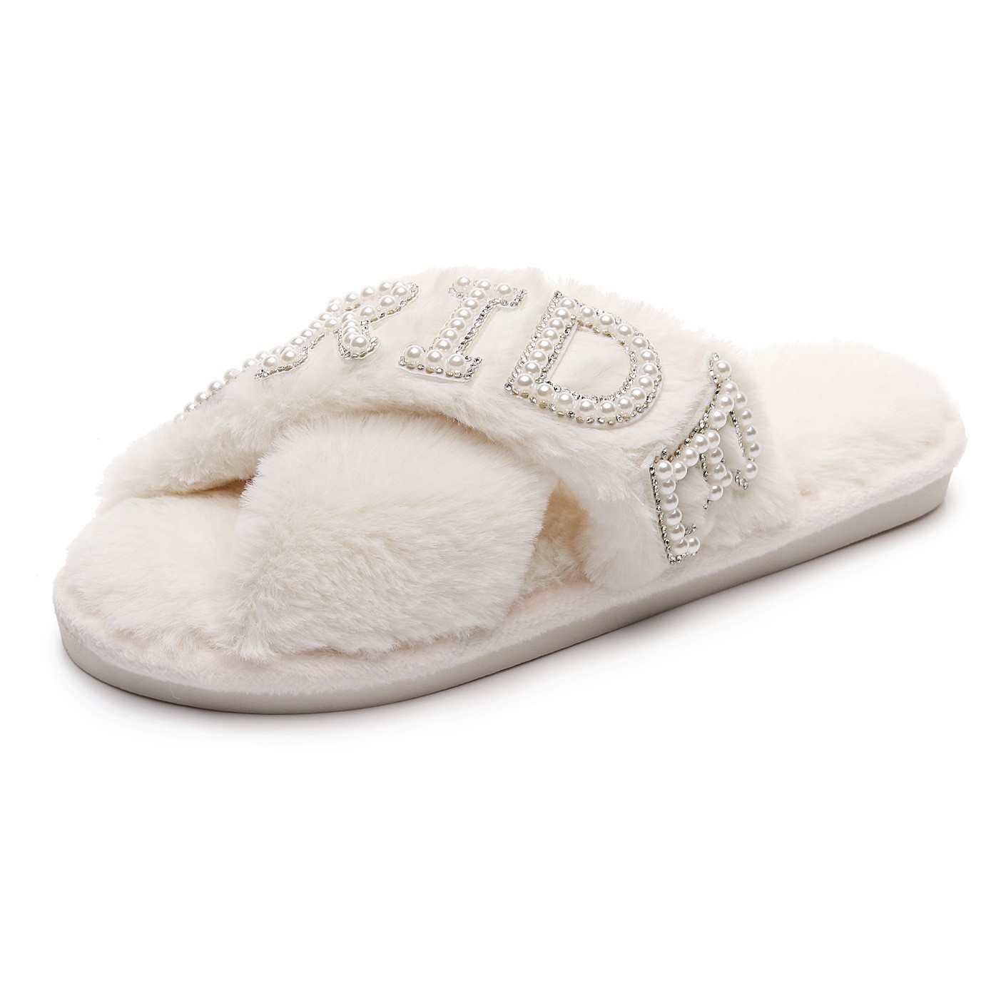 Трансграничные взрывные жемчужные бриллиантовые буквы BRIDE свадебные скрещенные шерстяные тапочки для девичника свадебные плюшевые тапочки