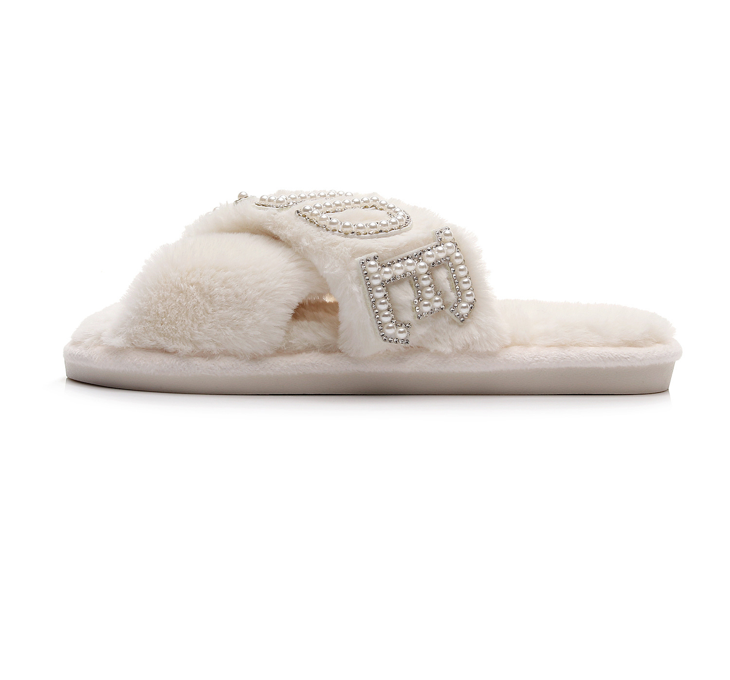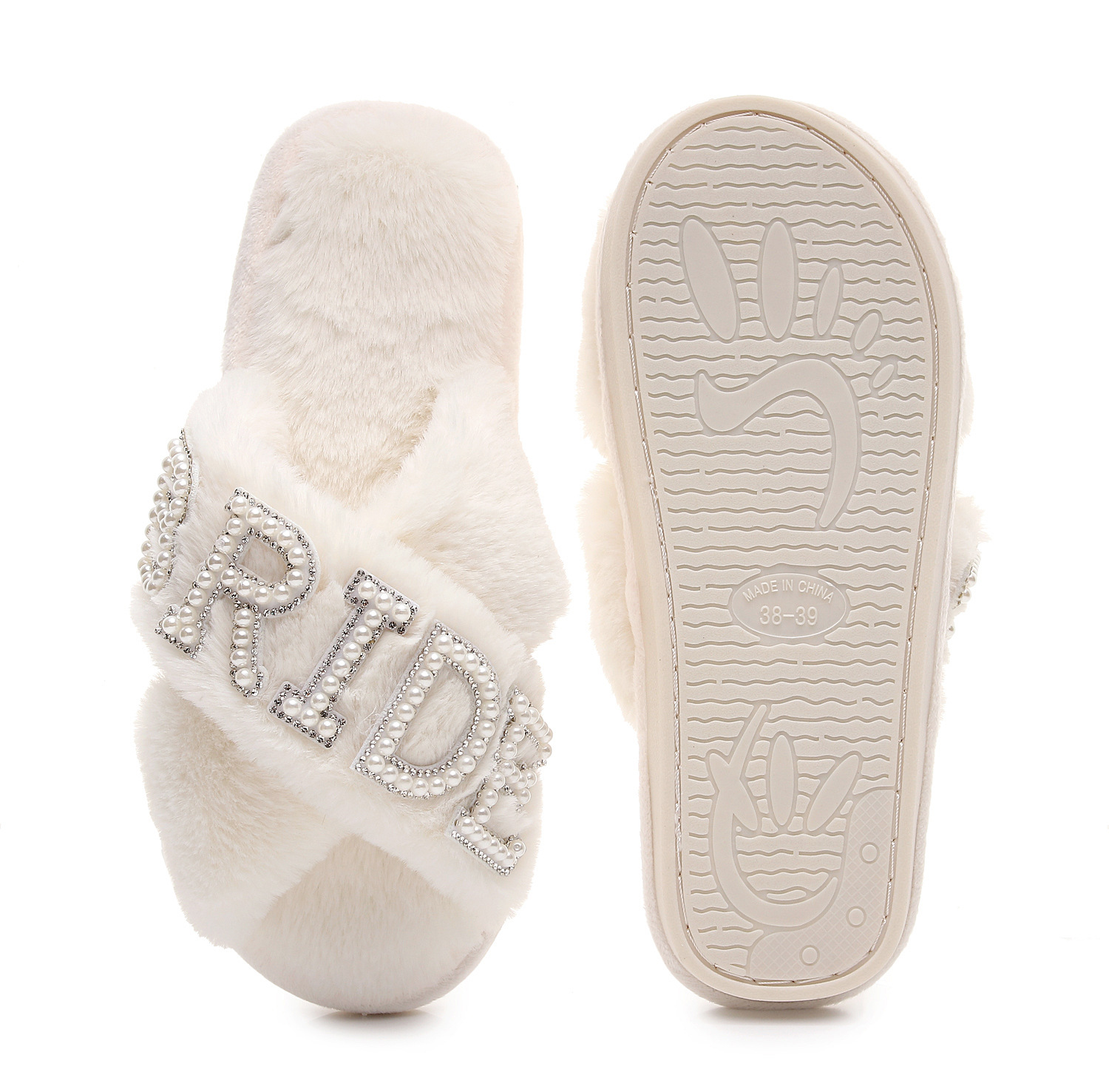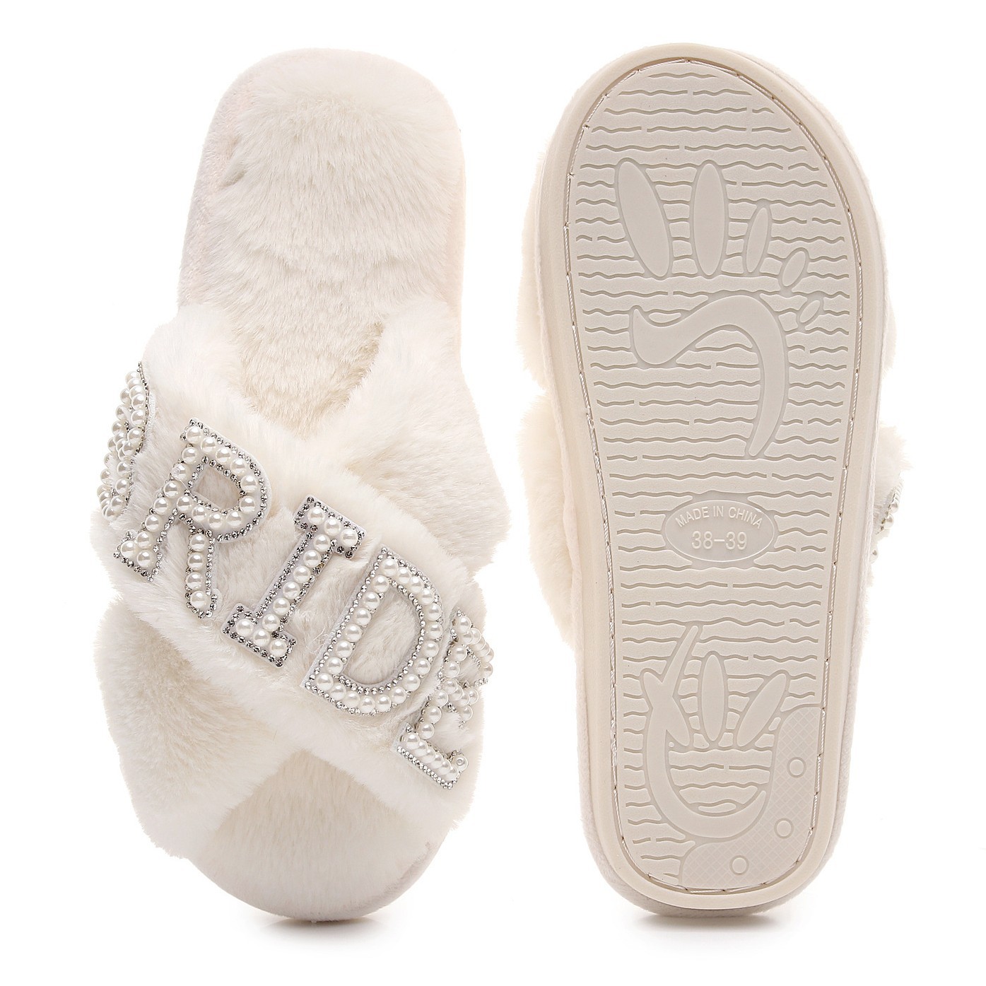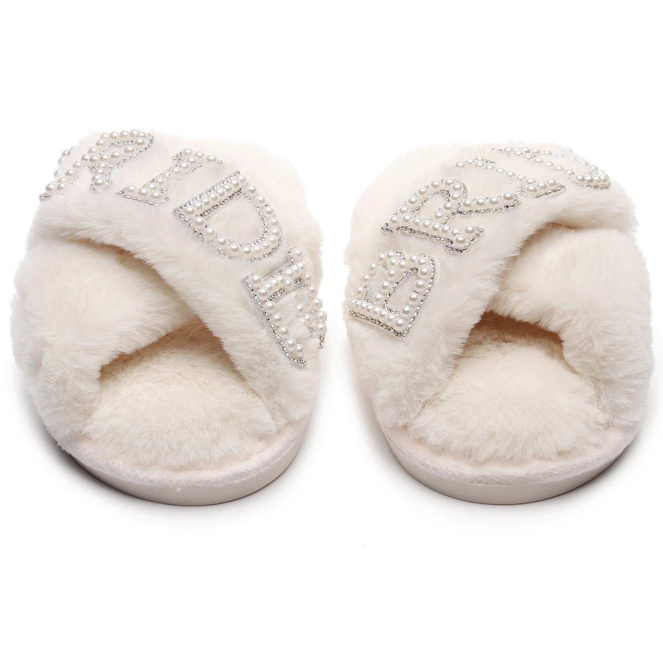 Трансграничные взрывные жемчужные бриллиантовые буквы BRIDE свадебные скрещенные шерстяные тапочки для девичника свадебные плюшевые тапочки