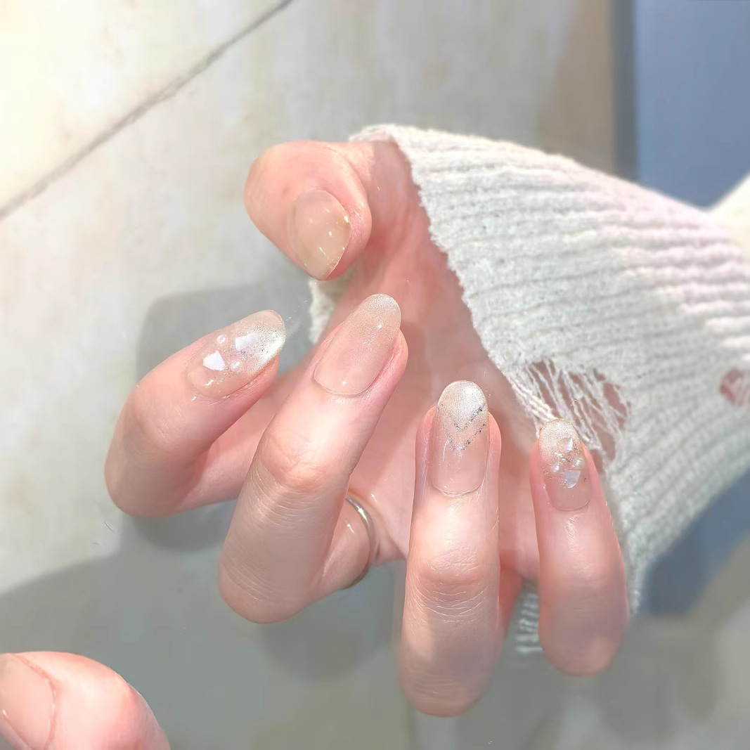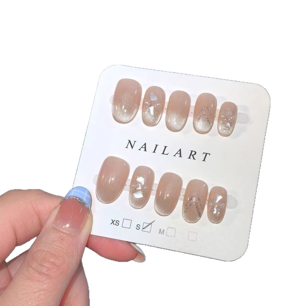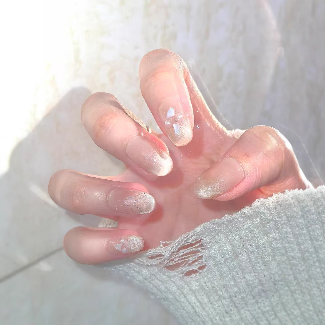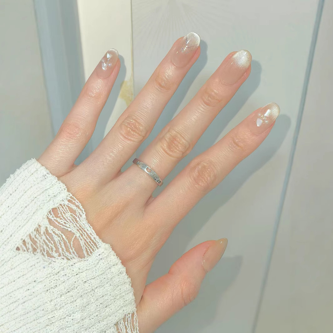 Носимые ногти ручной работы, высококачественные сказочные ракушки, привлекающие удачу, французские кошачьи глаза, нежные блестки, элегантные бабочки, отбеливающий маникюр.