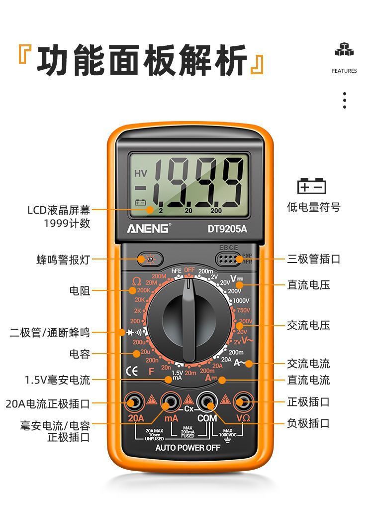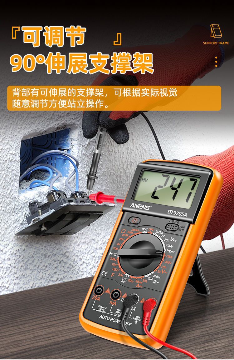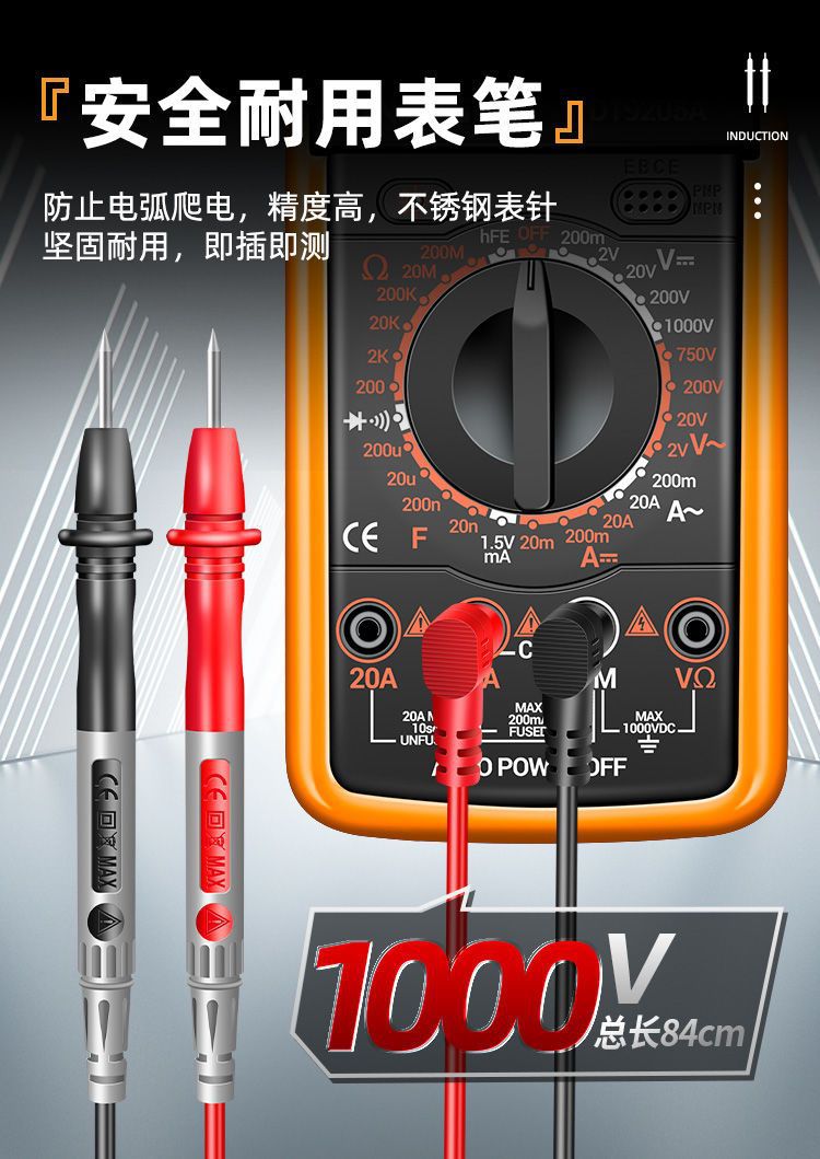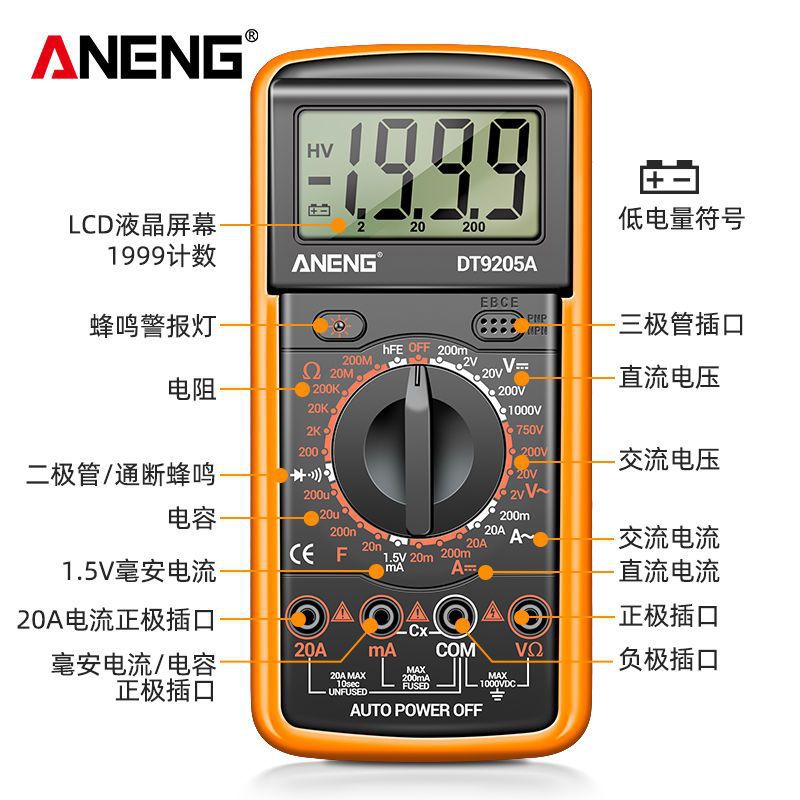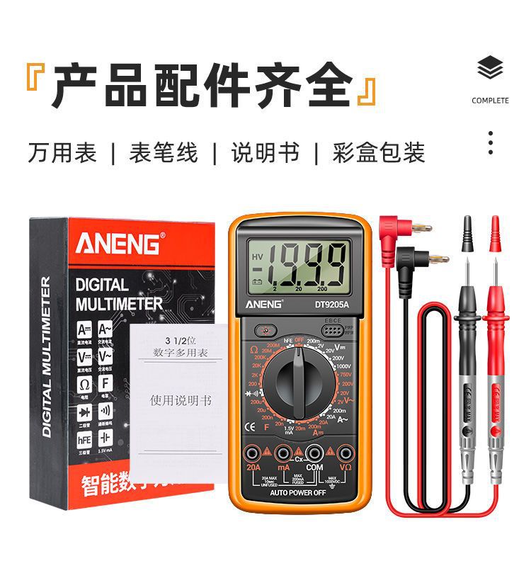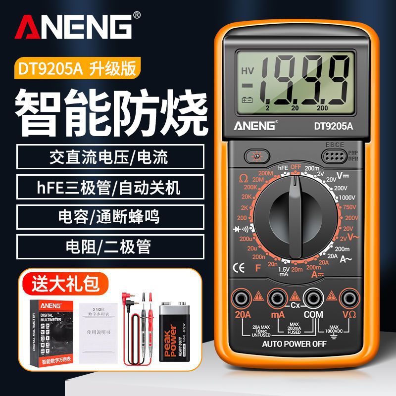 Цифровой мультиметр, высокоточный электрик, ремонтный мультиметр напряжения и тока, интеллектуальный мультиметр с защитой от ожогов 9205A