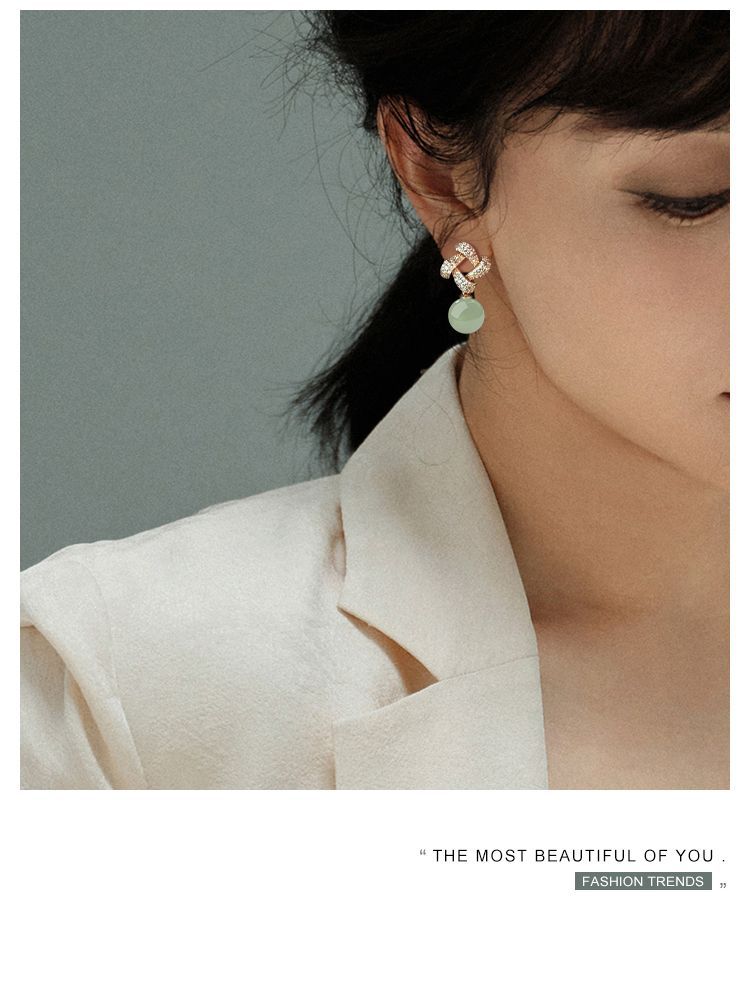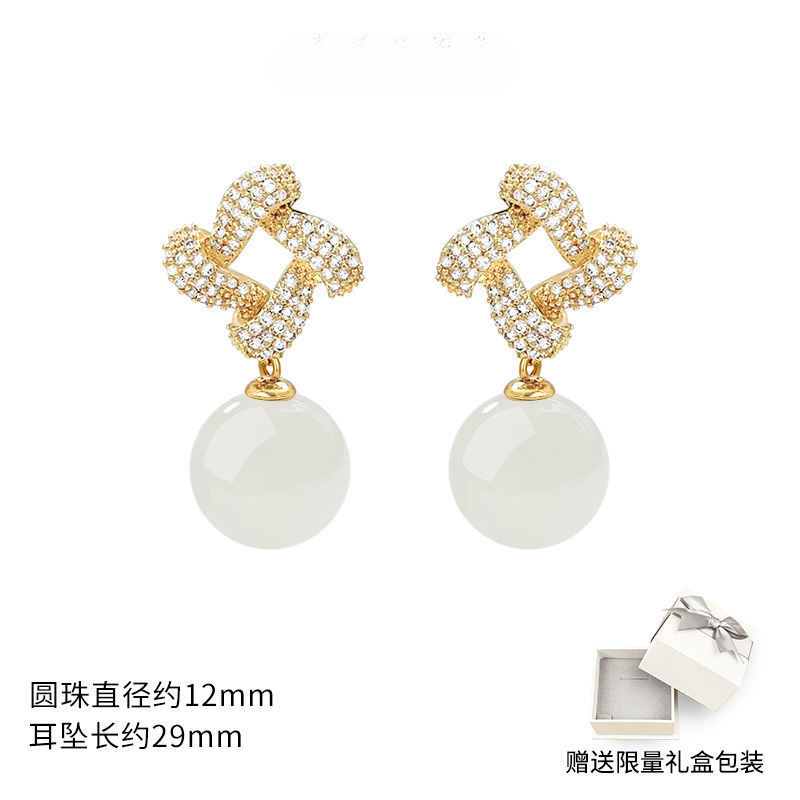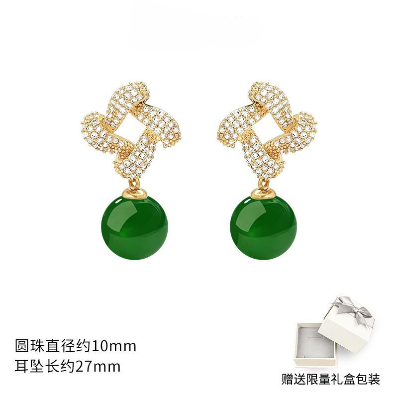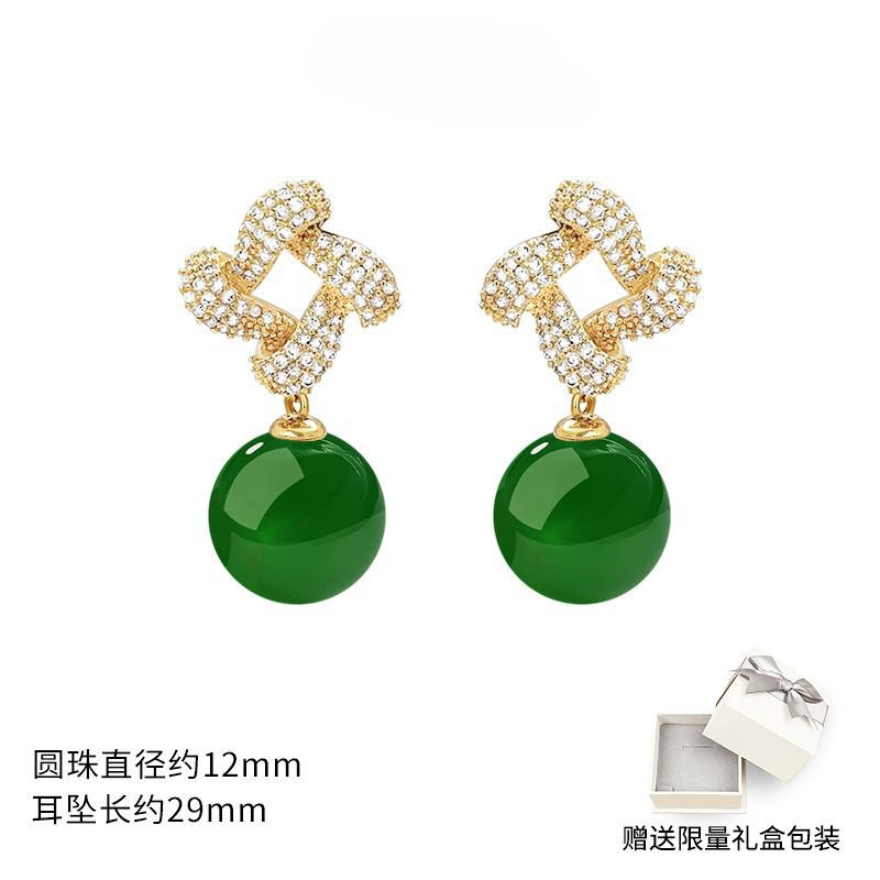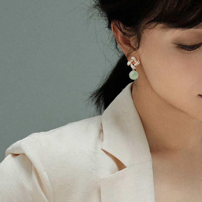 Хотан нефритовый золотой серьги 2025 новый взрывной ледяной камень нефритовый серьги нишевой дизайн высокого уровня старинных ушных украшений