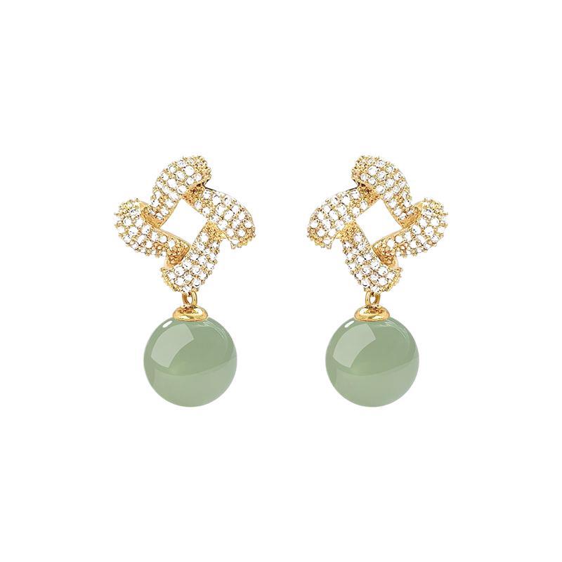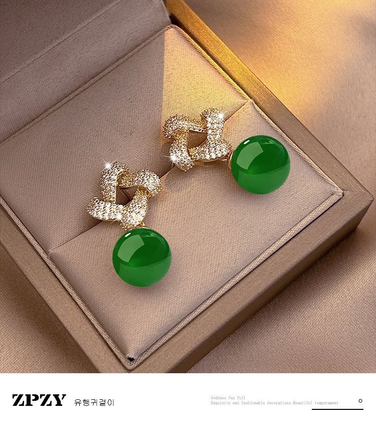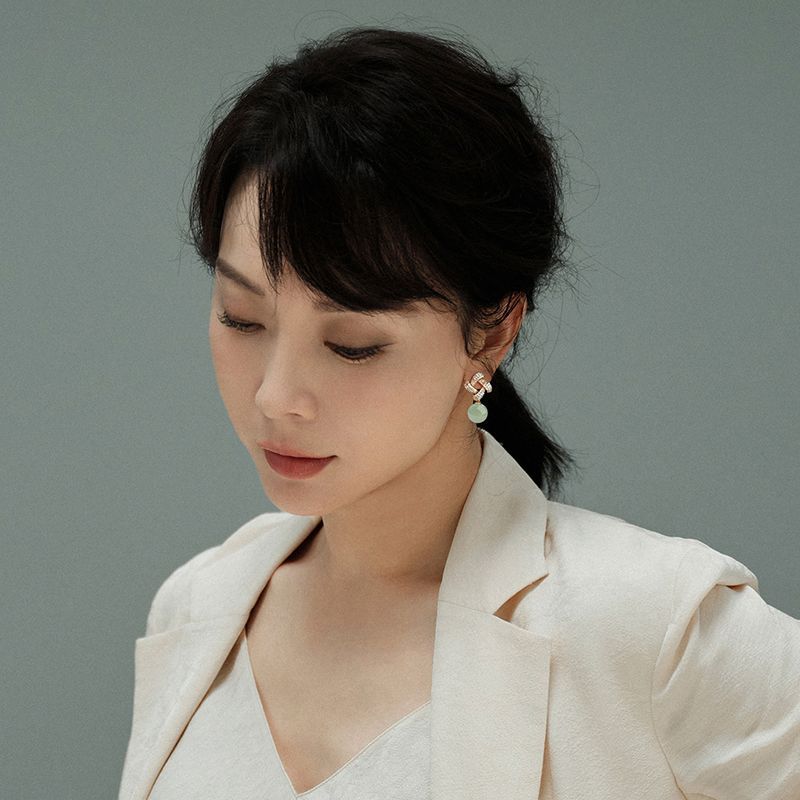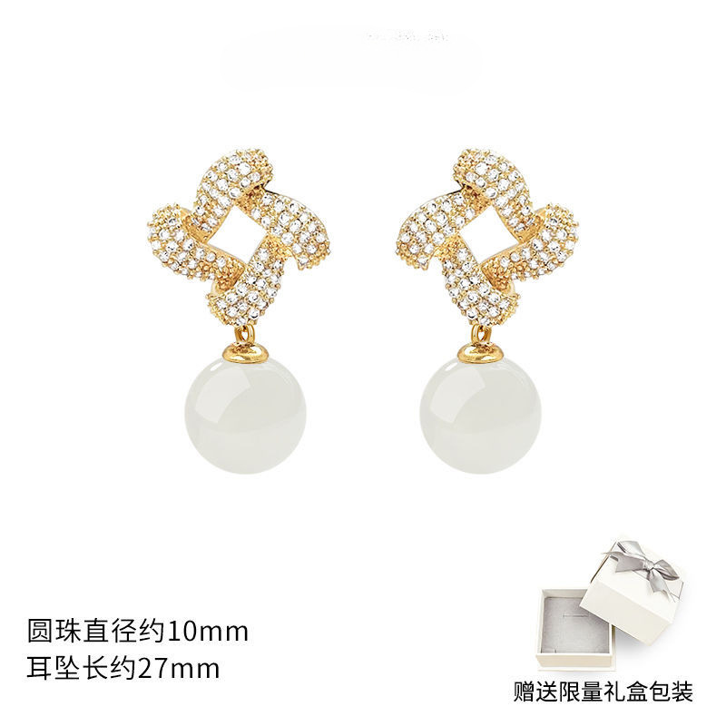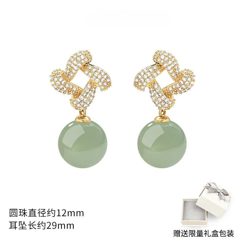 Хотан нефритовый золотой серьги 2025 новый взрывной ледяной камень нефритовый серьги нишевой дизайн высокого уровня старинных ушных украшений