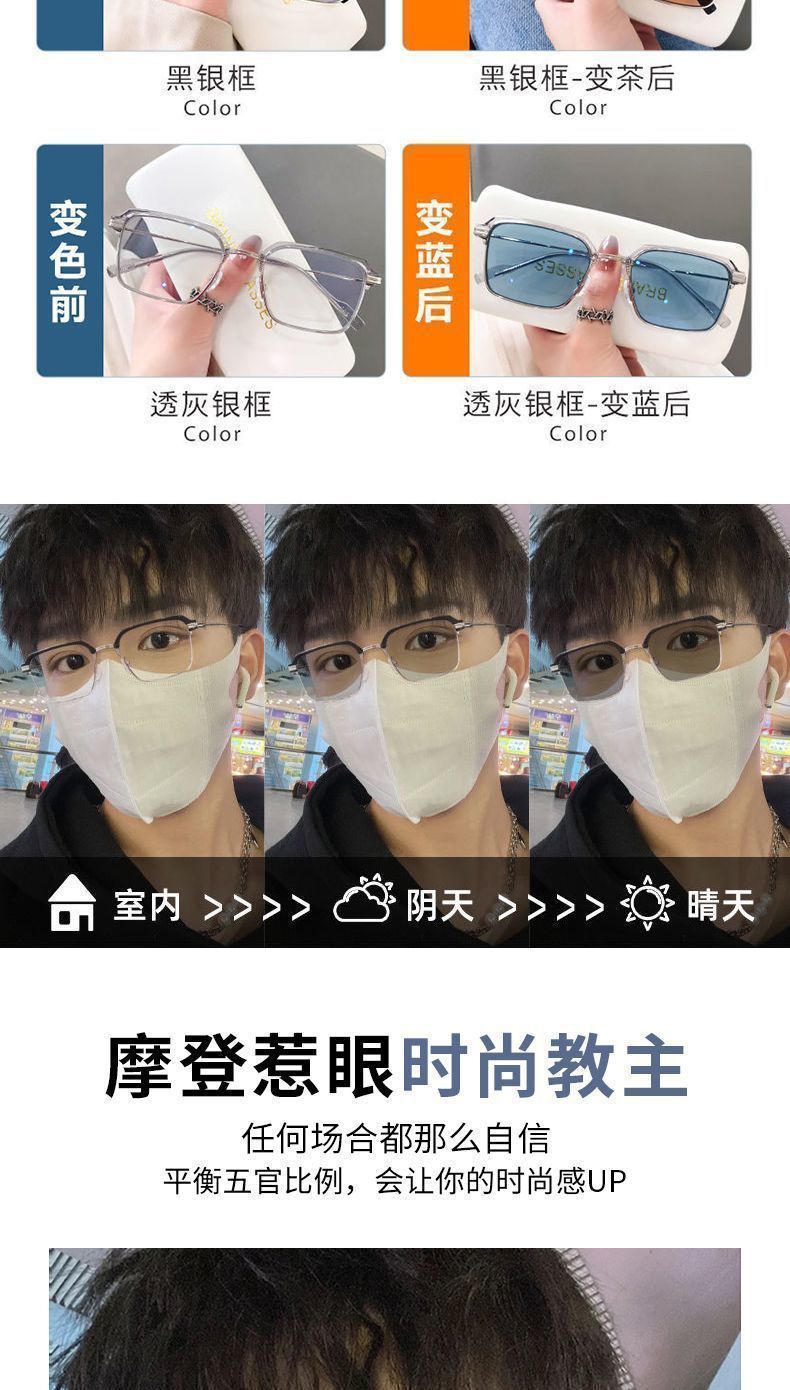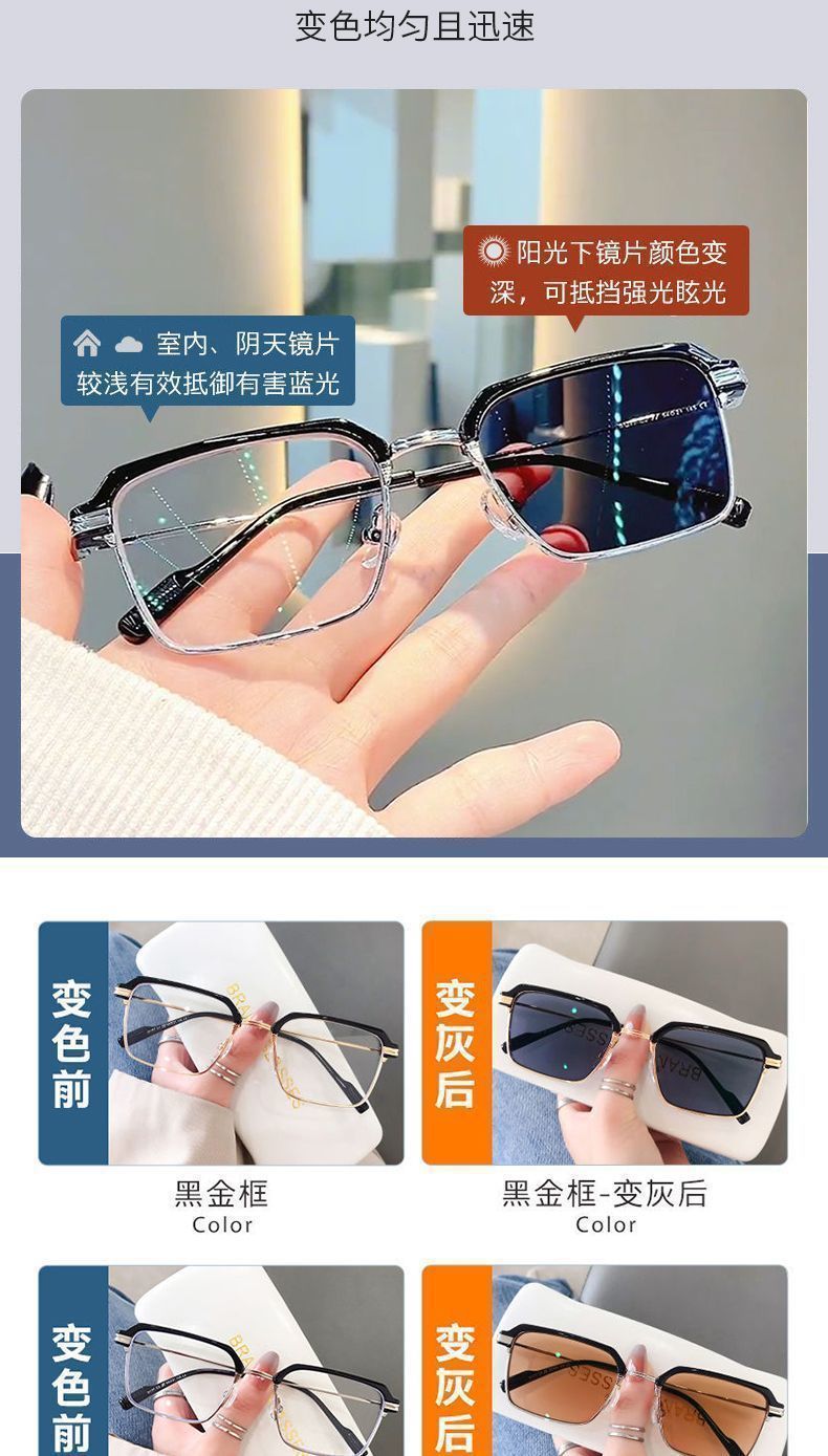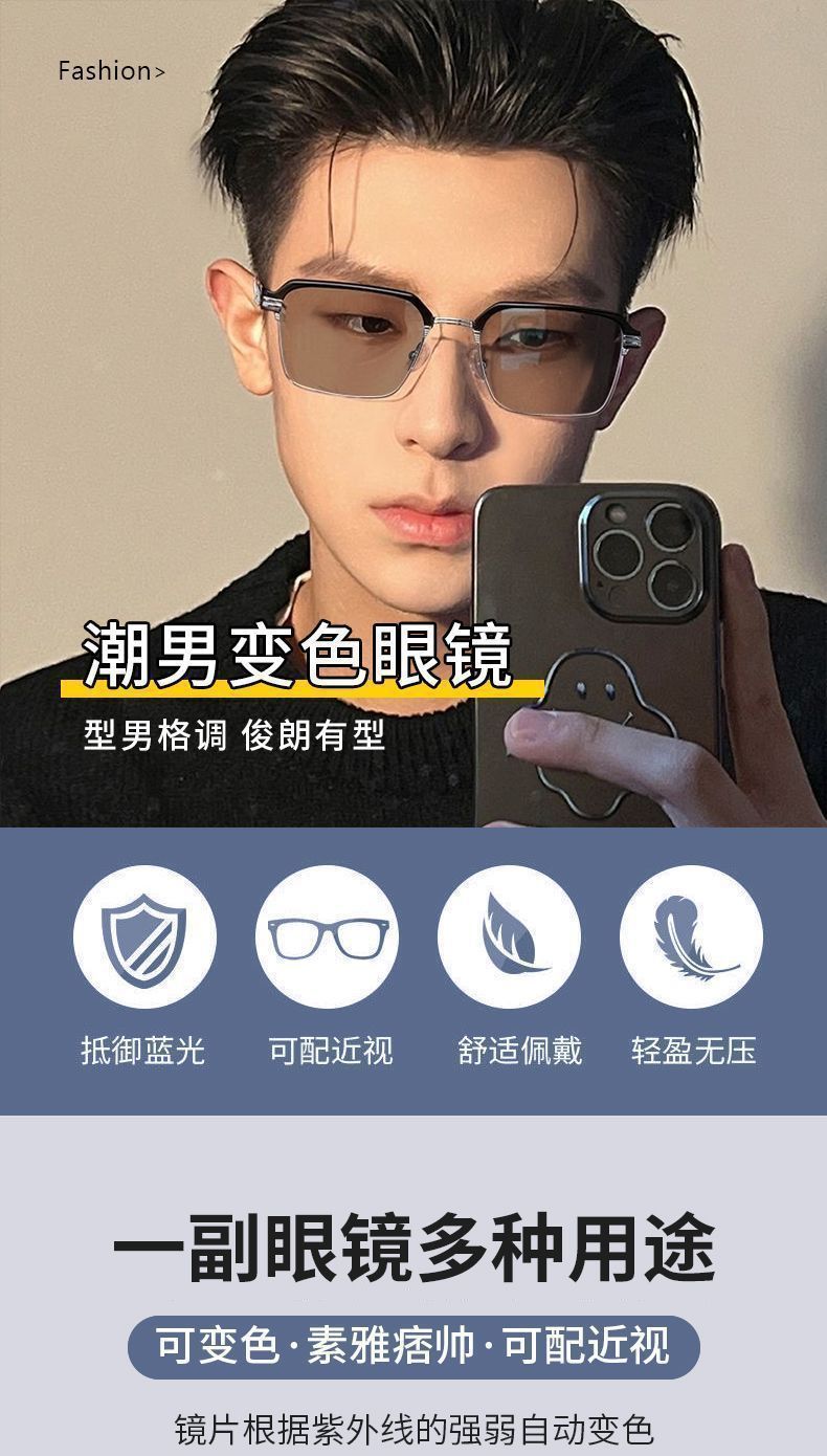 Красивая мужская оправа для очков в полуоправе, автоматическая фотохромная, защита от синего света, защита от радиации, может быть оснащена сверхлегкими оправами для глаз.