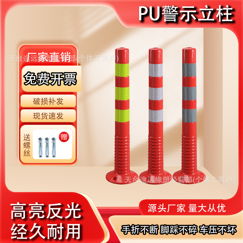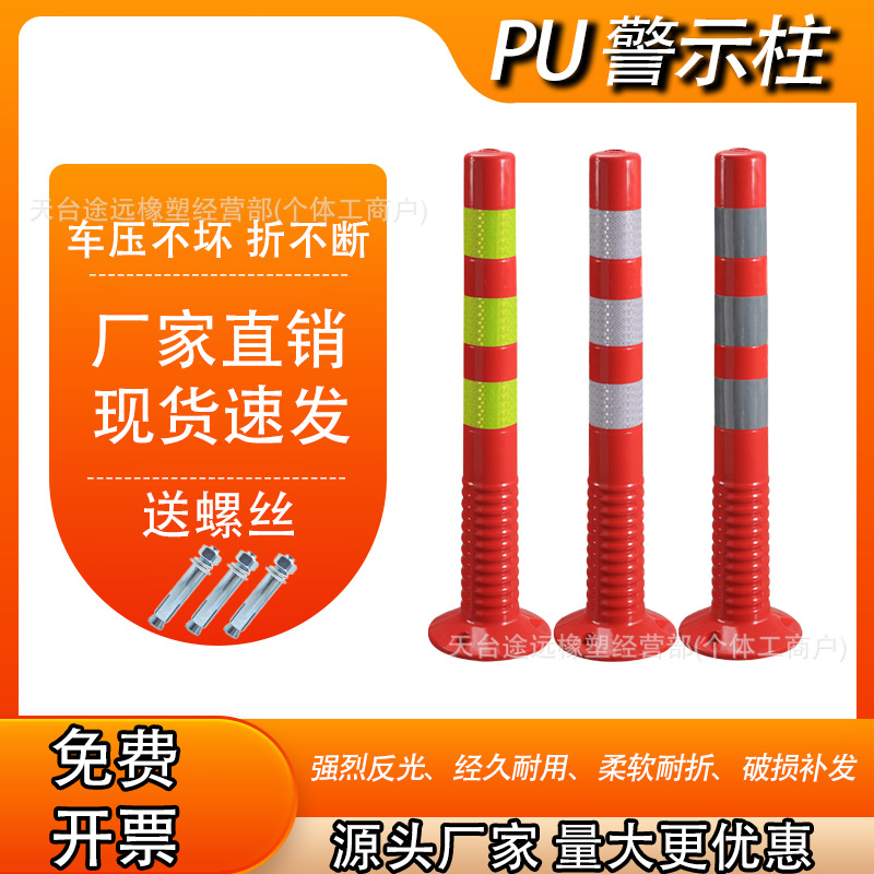 Пластиковая предупреждающая колонна из ПУ, противоударный столб, эластичная колонна, дорожный разделитель, светоотражающий столбик, резиновый барьер, дорожный заграждение
