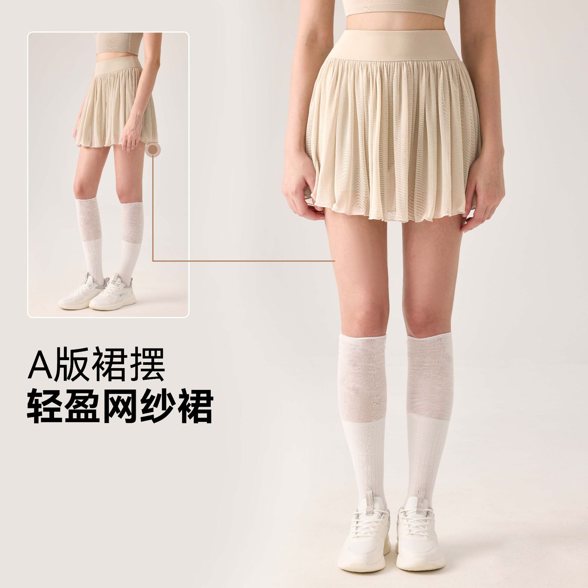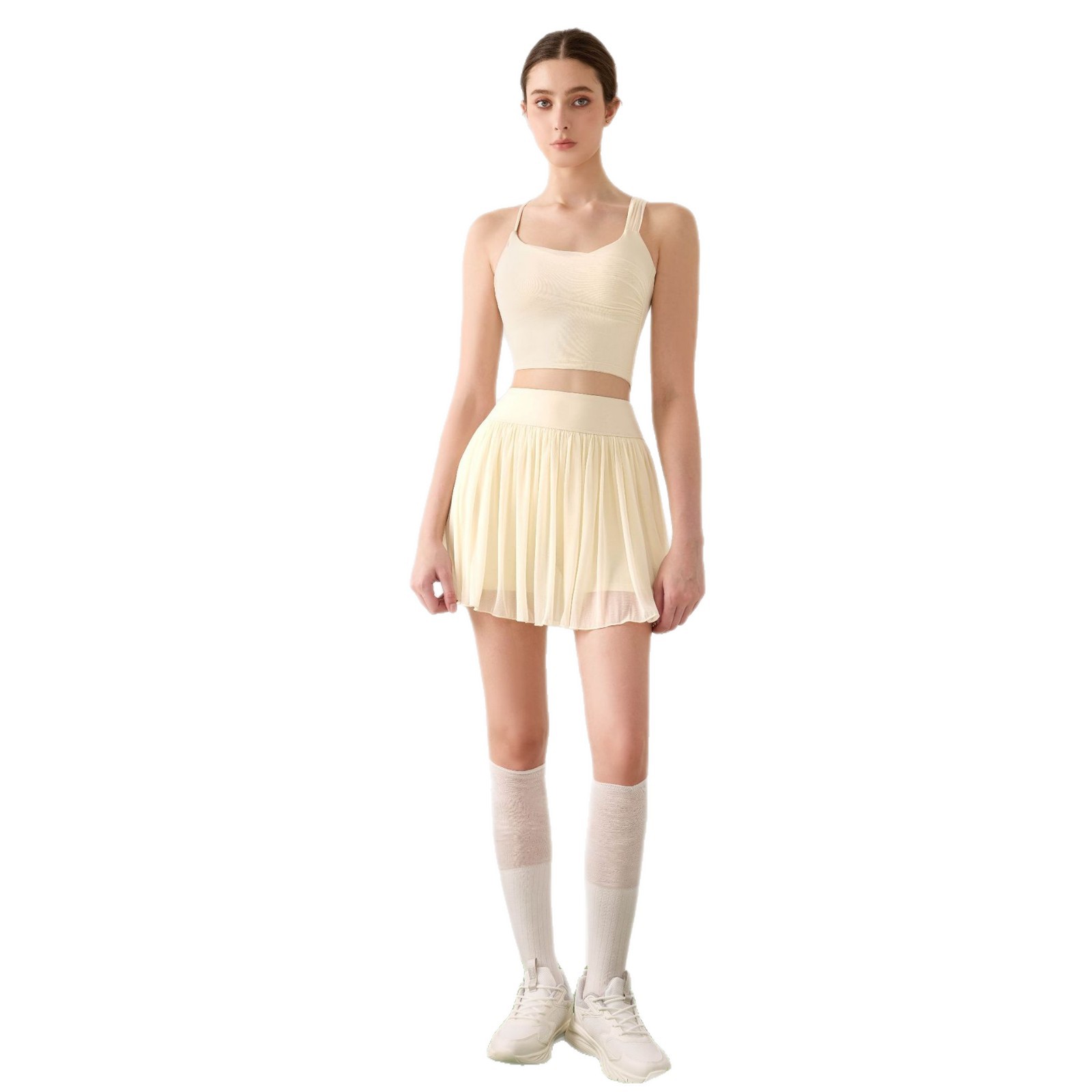 Новая весенне-летняя юбка для тенниса для женщин, однотонная спортивная юбка с высокой талией, имитация двухслойной юбки, короткая юбка с защитой от просвечивания и оборками.