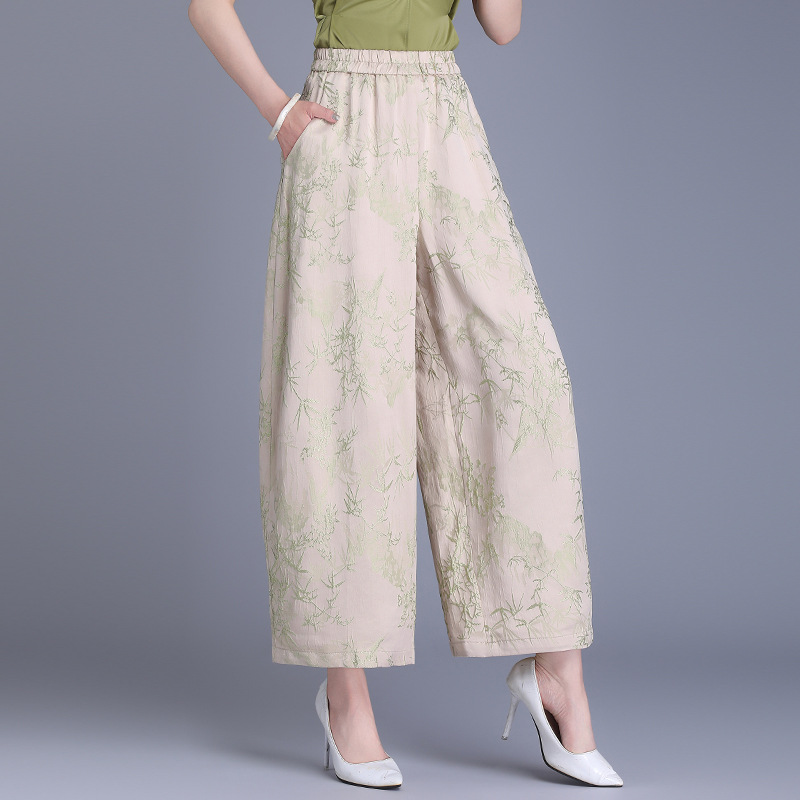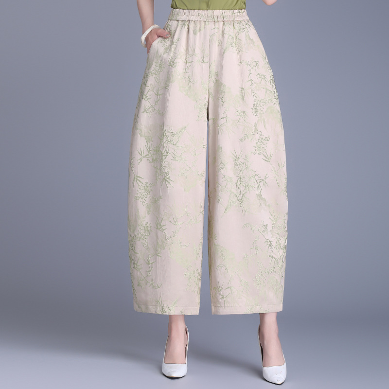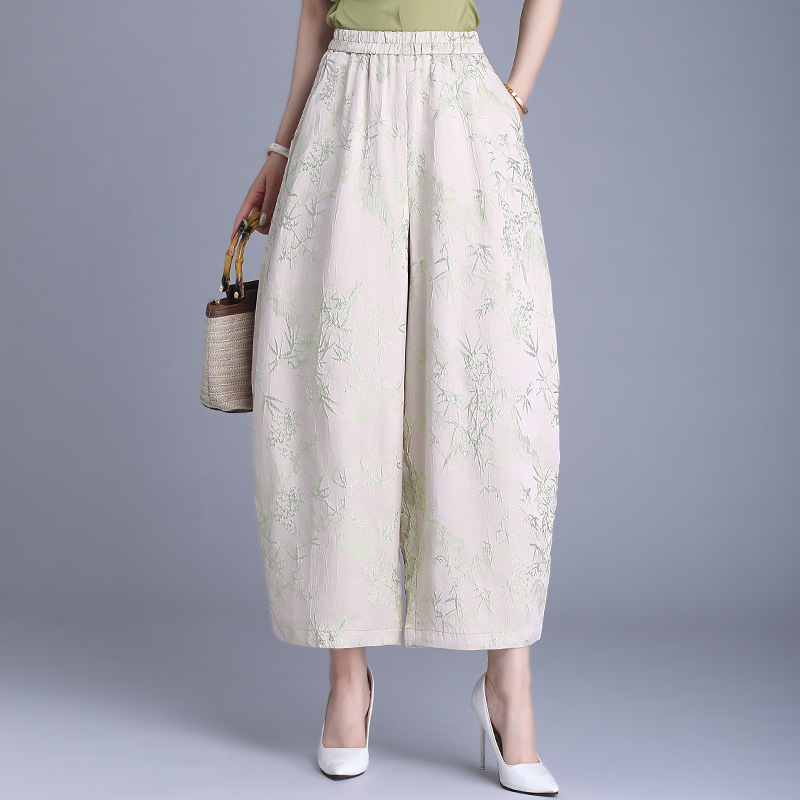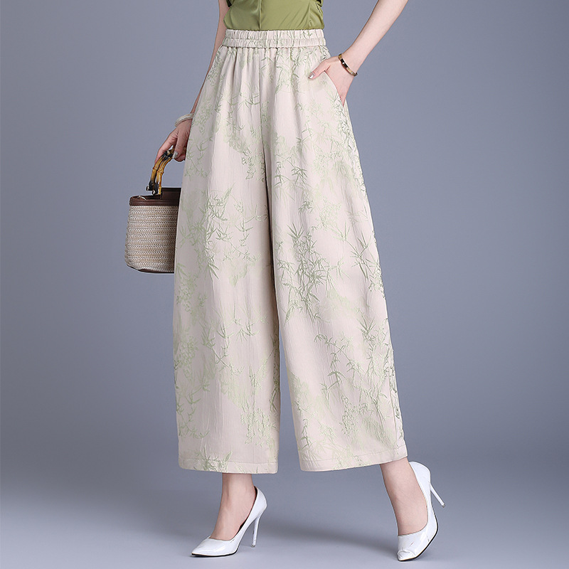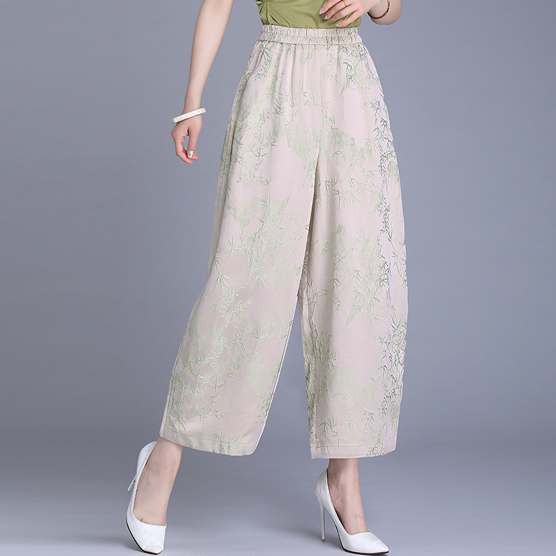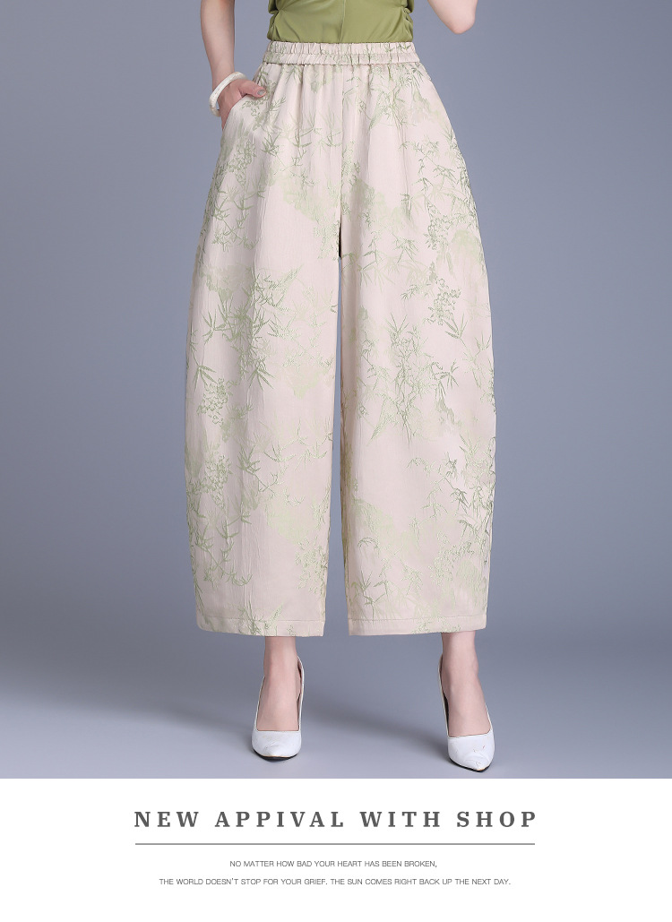 Реальный снимок женских брюк весна-лето 2025, новые, эластичная талия, однотонные, из вискозы, простые, джаккардовые, с девятью точками, повседневные.