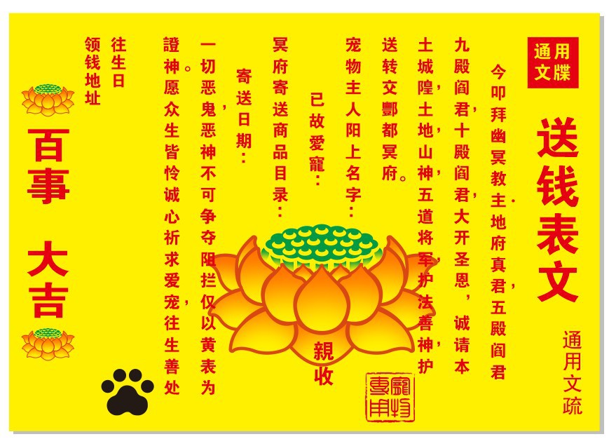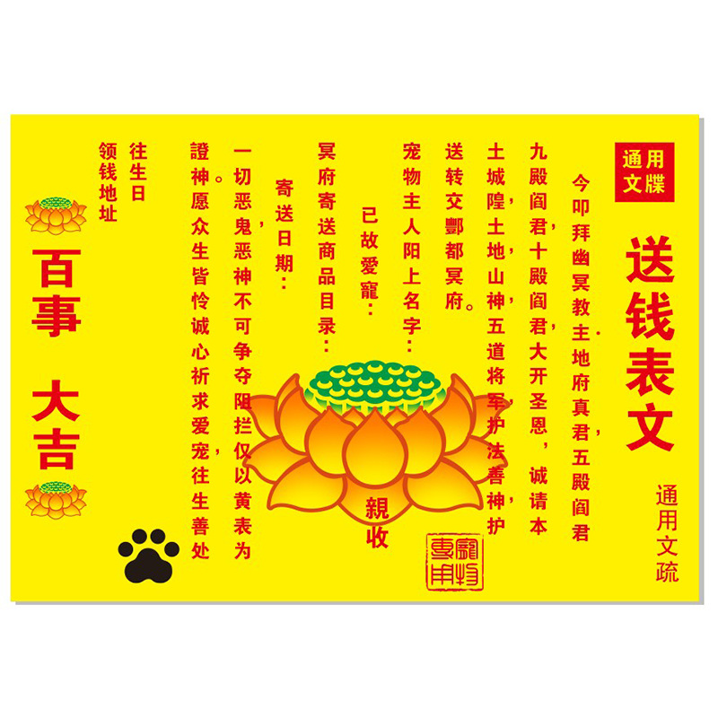 Мемориальные бумажные жертвы для кошек и собак, умерших, общие жертвы для облегчения страданий и предметы для похорон.