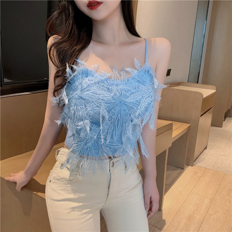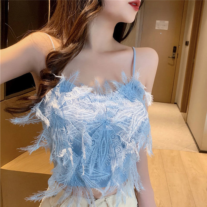 Модная летняя новинка 2025 года: ультра-сказочная короткая майка с кисточками и перьями для женщин, которую можно носить как на улице, так и в помещении.