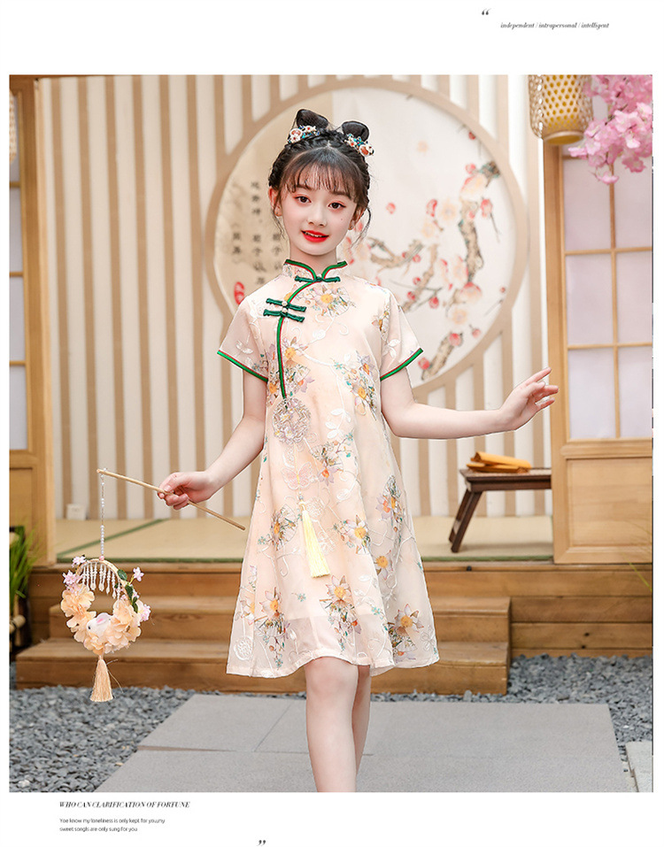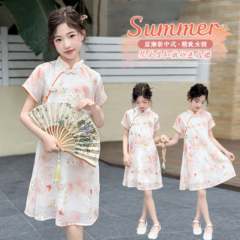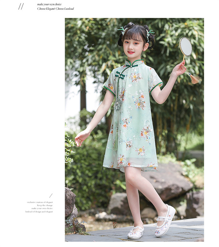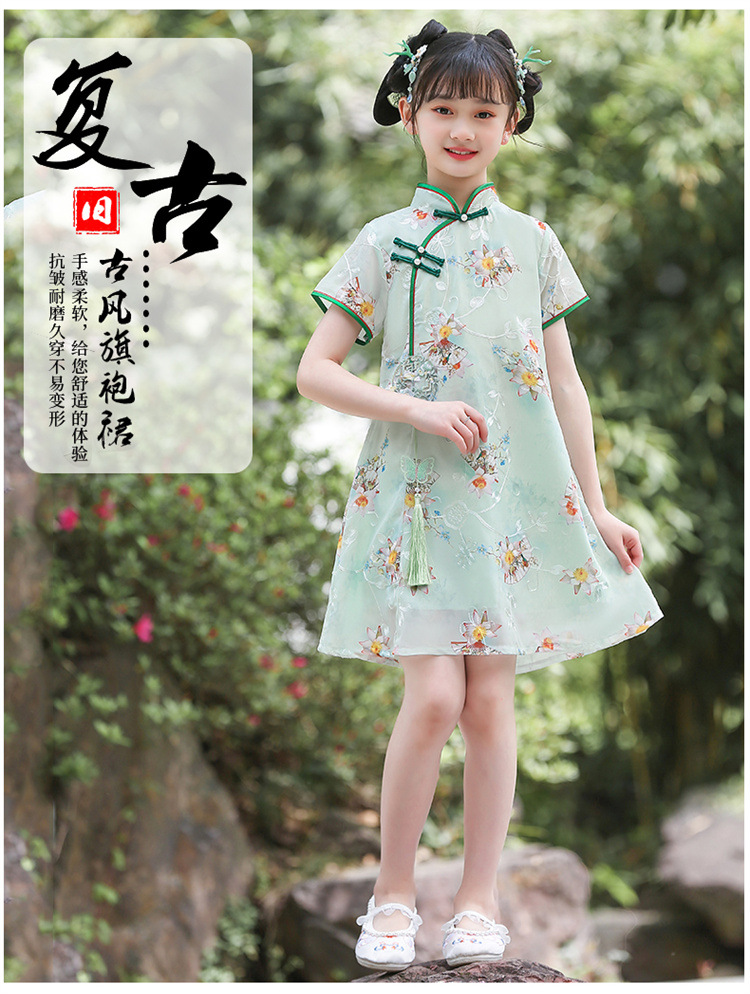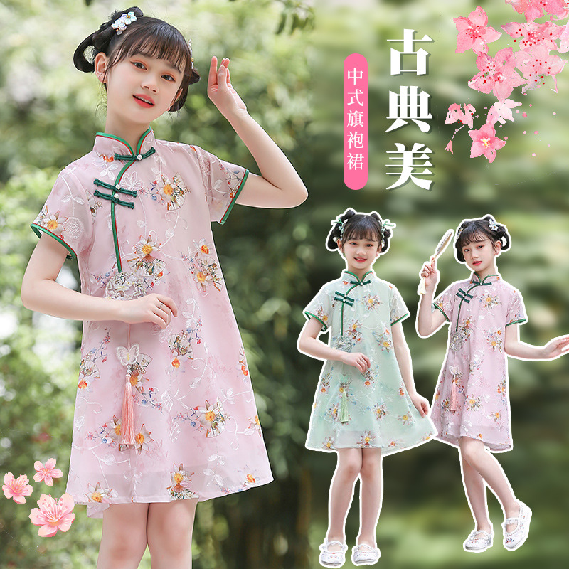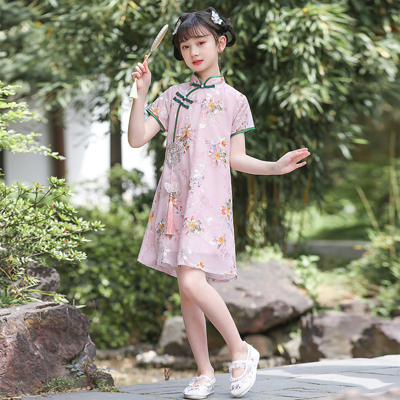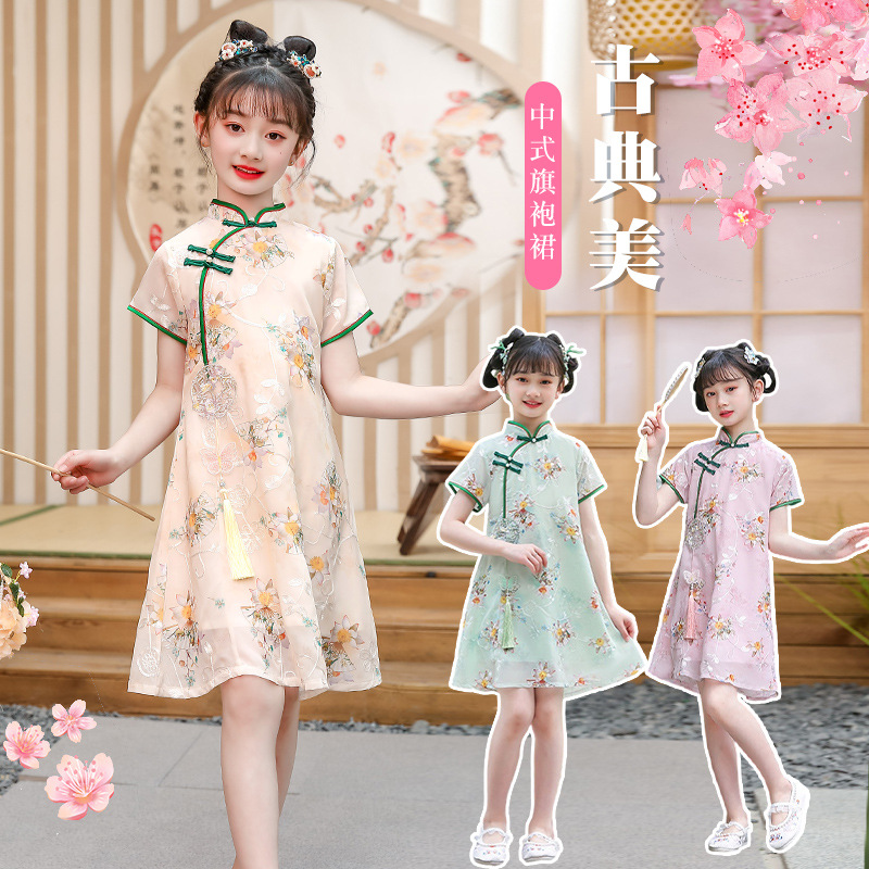Детские летние китайские платья-чонсамы 2025 года, стильные, в древнем китайском стиле ханьфу, оптом.