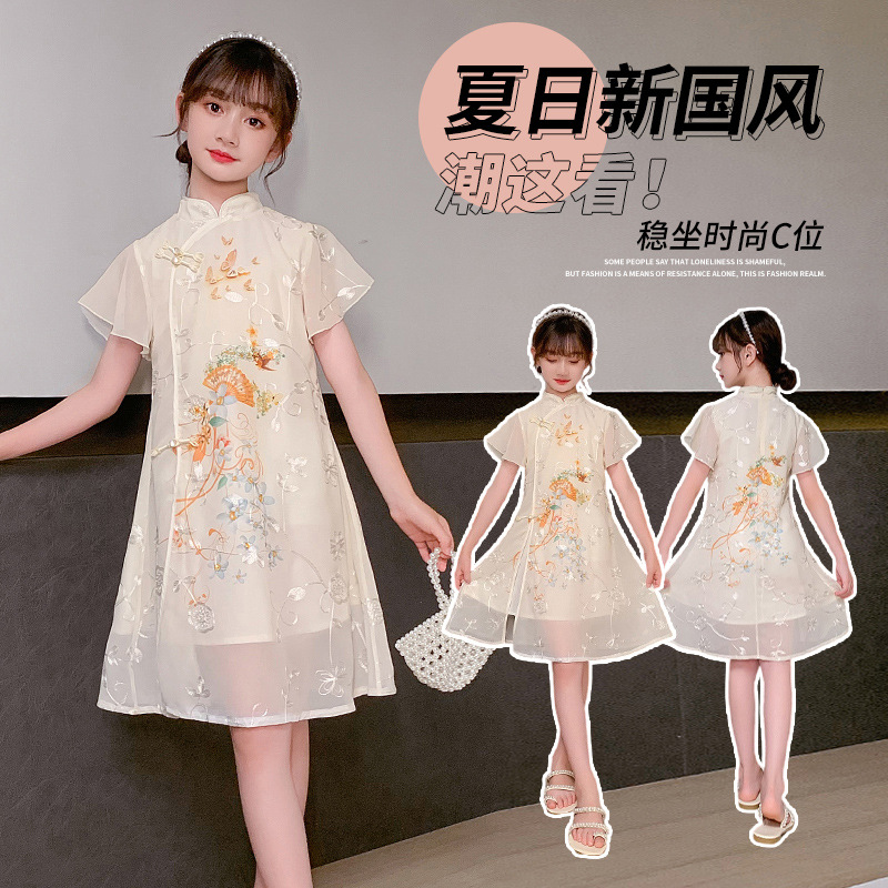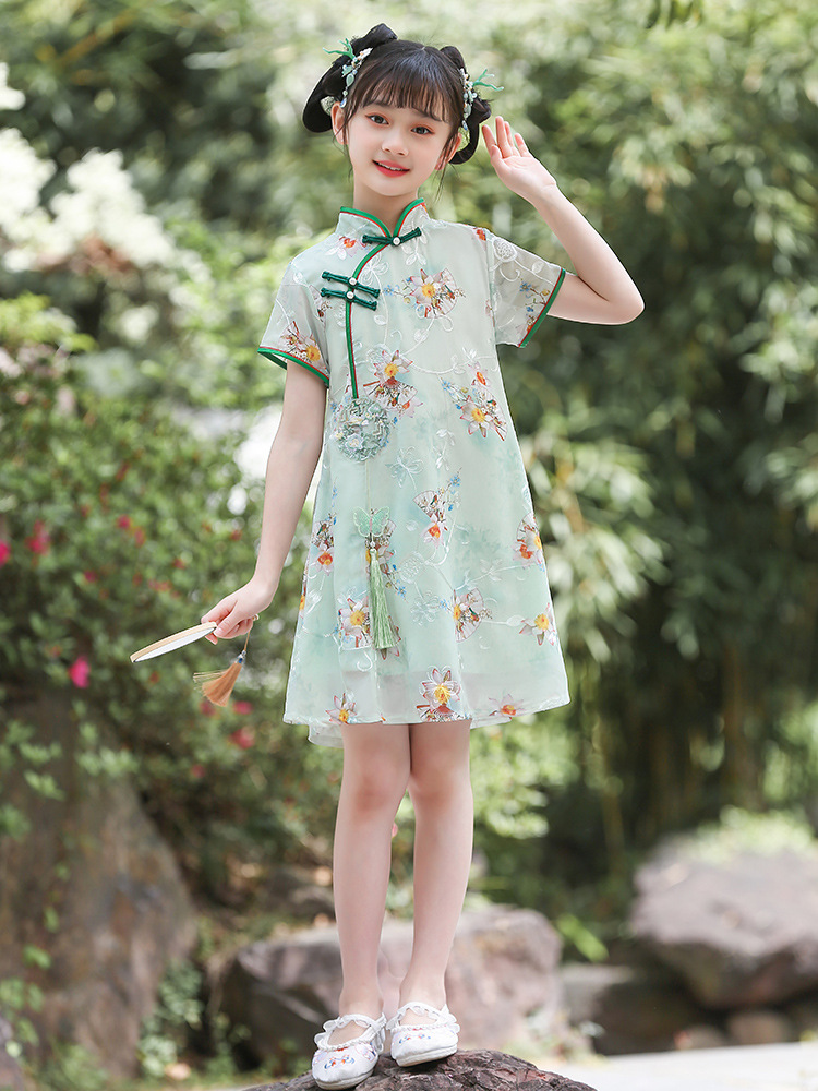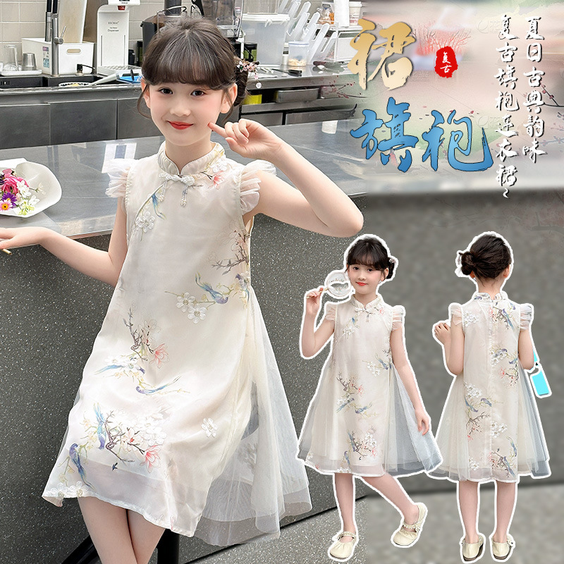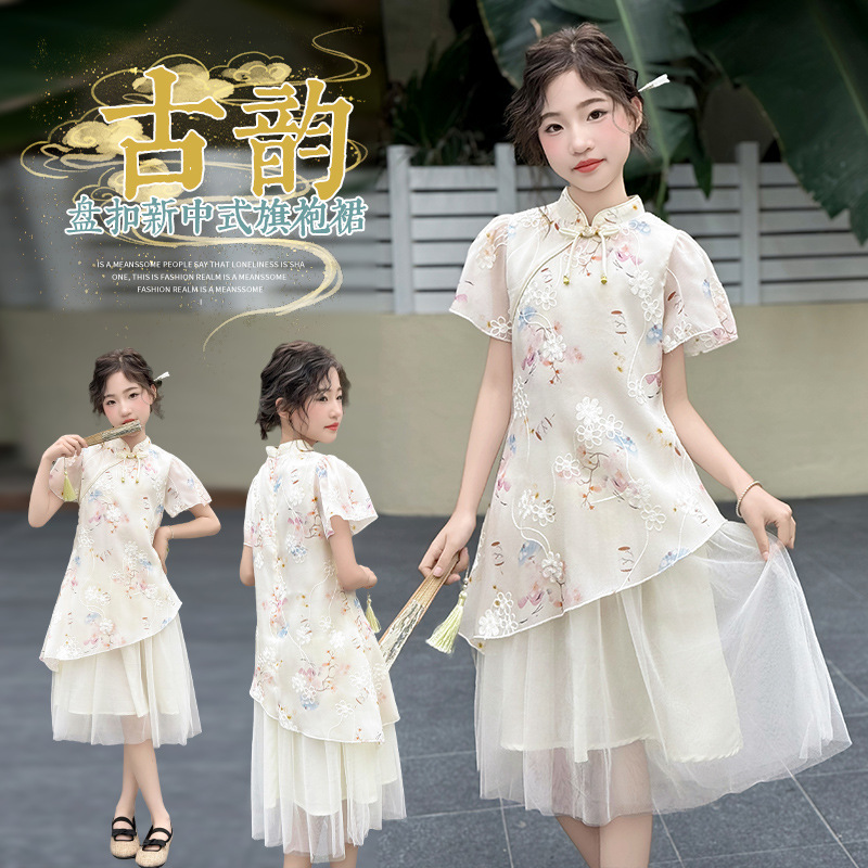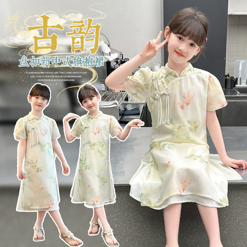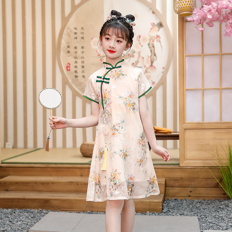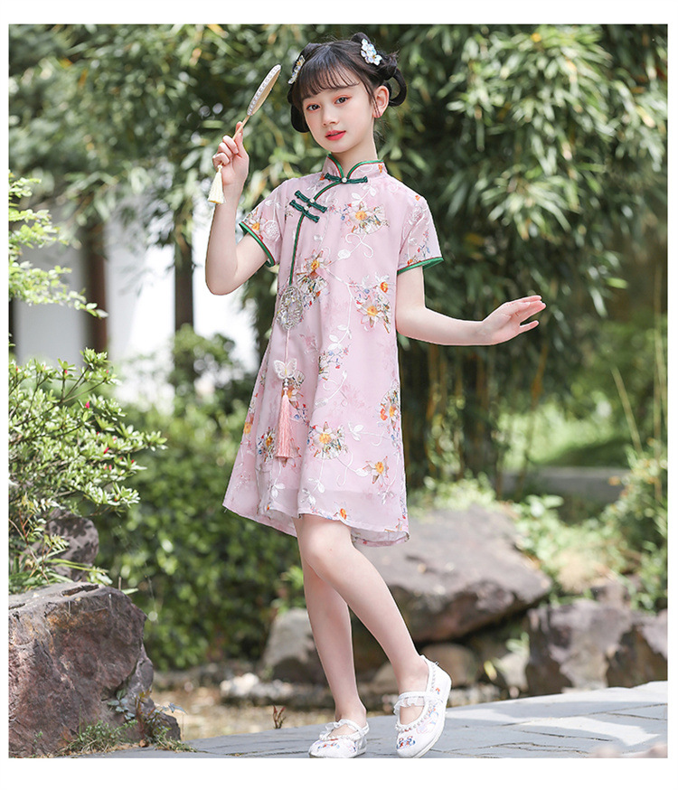 Детские летние китайские платья-чонсамы 2025 года, стильные, в древнем китайском стиле ханьфу, оптом.