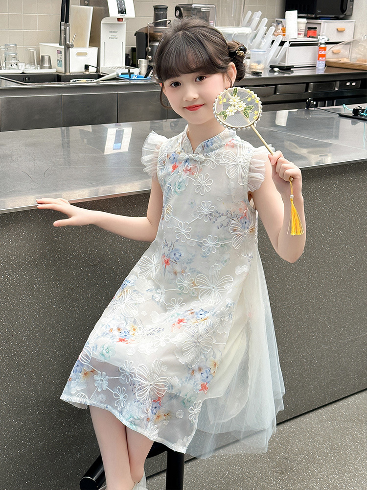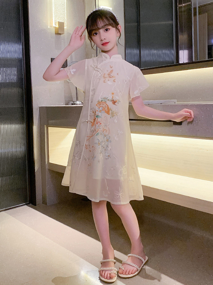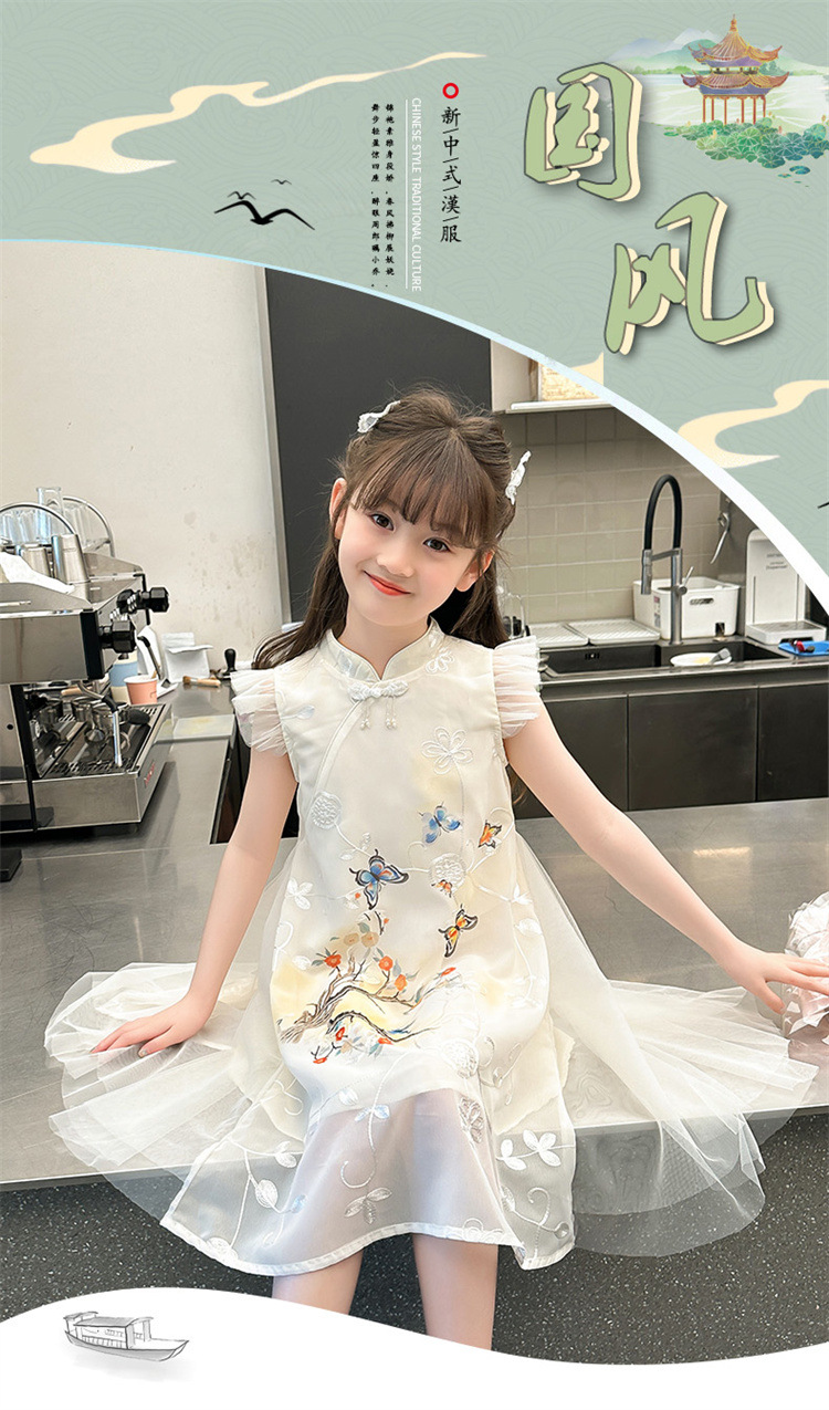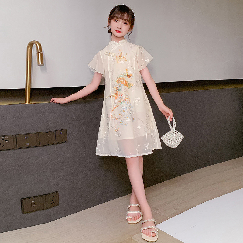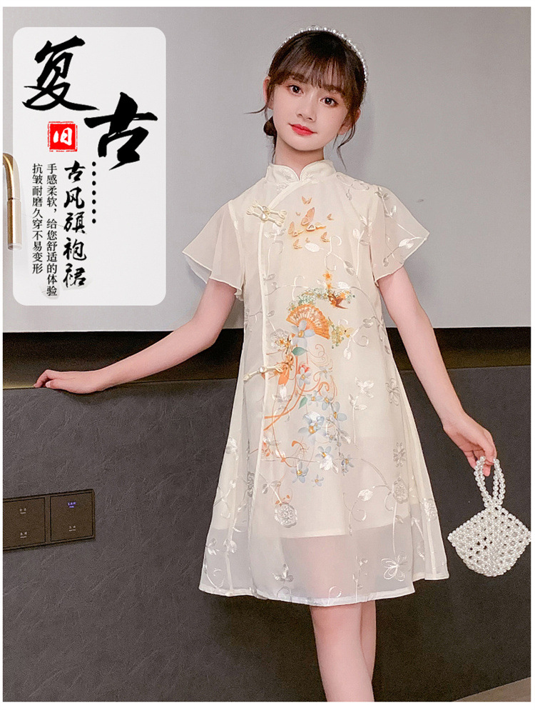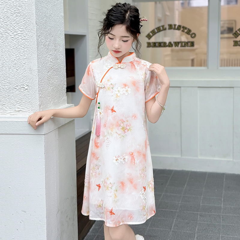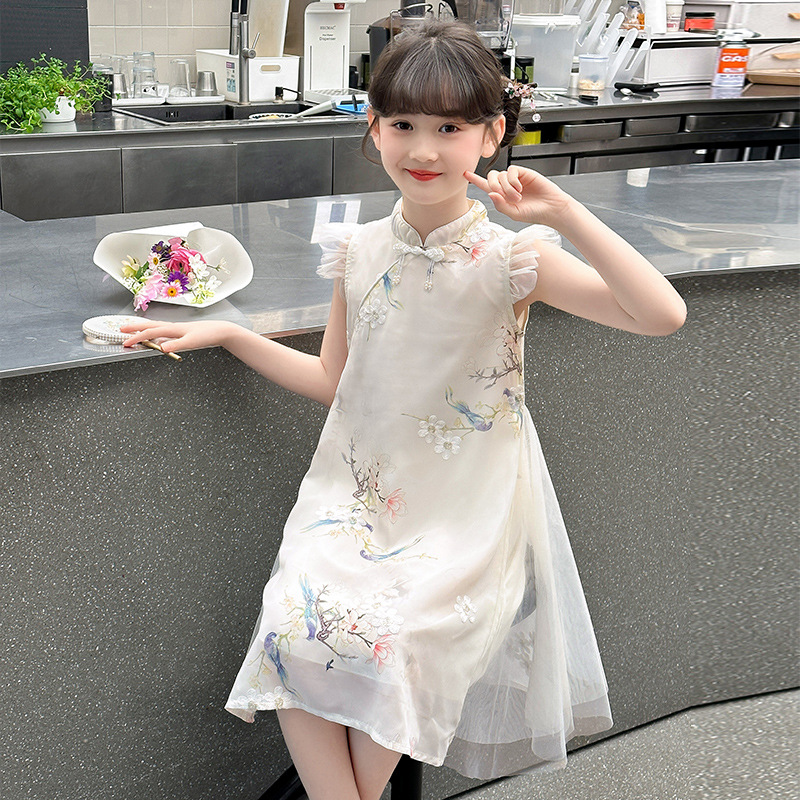Детские летние китайские платья-чонсамы 2025 года, стильные, в древнем китайском стиле ханьфу, оптом.