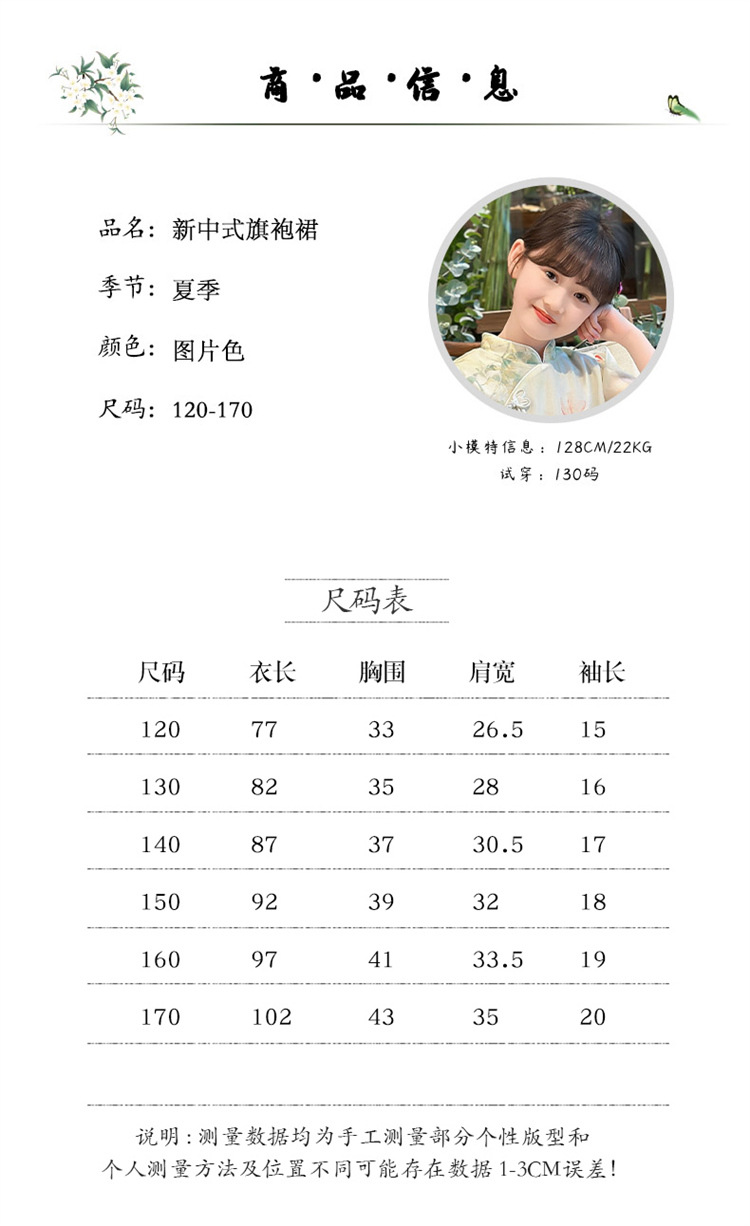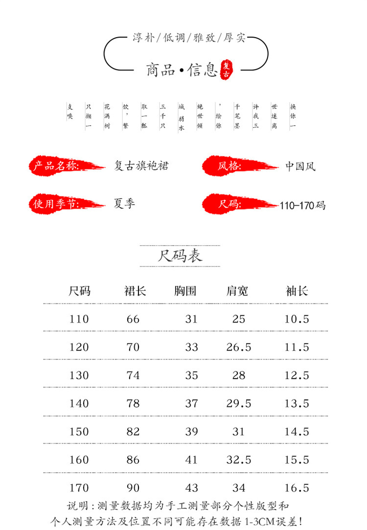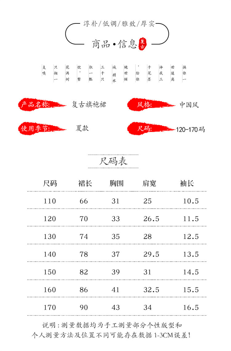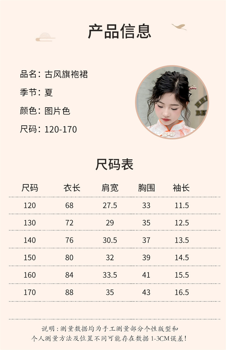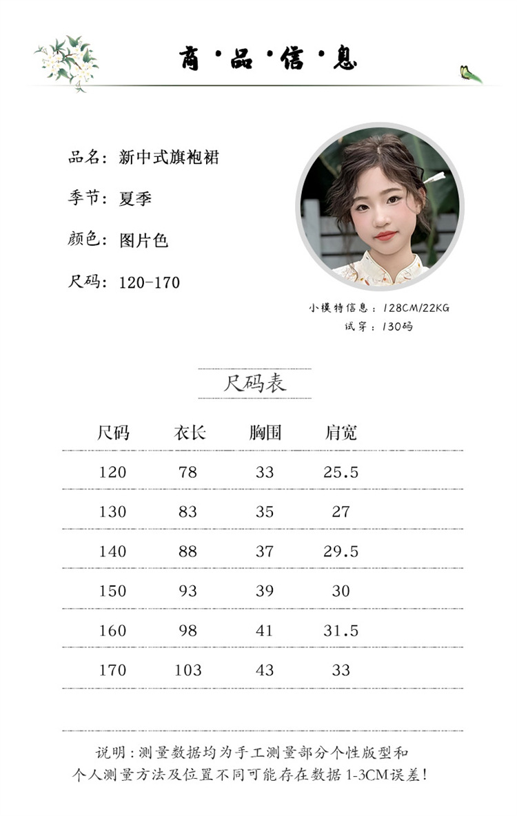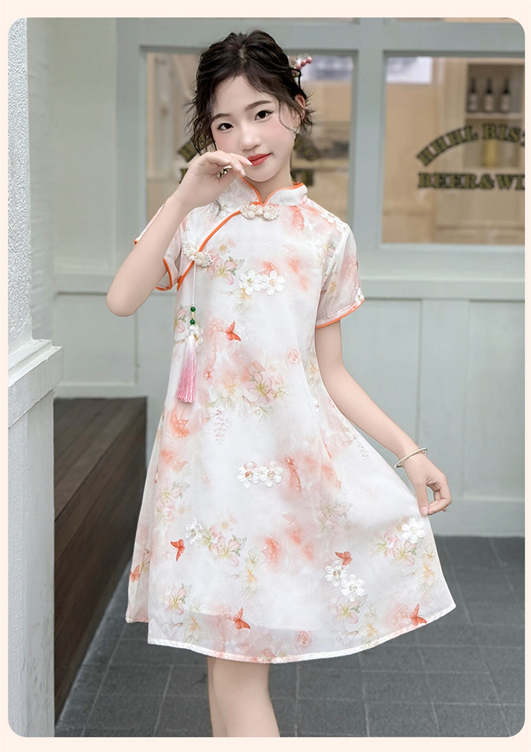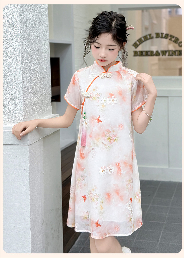 Абрикосовое позиционирование цветка чонсам; Чонсам-бабочка абрикосового цвета; Чонсам синей бабочки; Зеленый веер чонсам; Розовый веер чонсам; Абрикосовый веер чонсам; Птичий звон и цветочный аромат чонсама; юбка чонсам с цветочным принтом; Маленькая золотая рыбка чонсам; Чонсам с оранжевым цветком и бабочкой; Бежевая газовая юбка чонсам