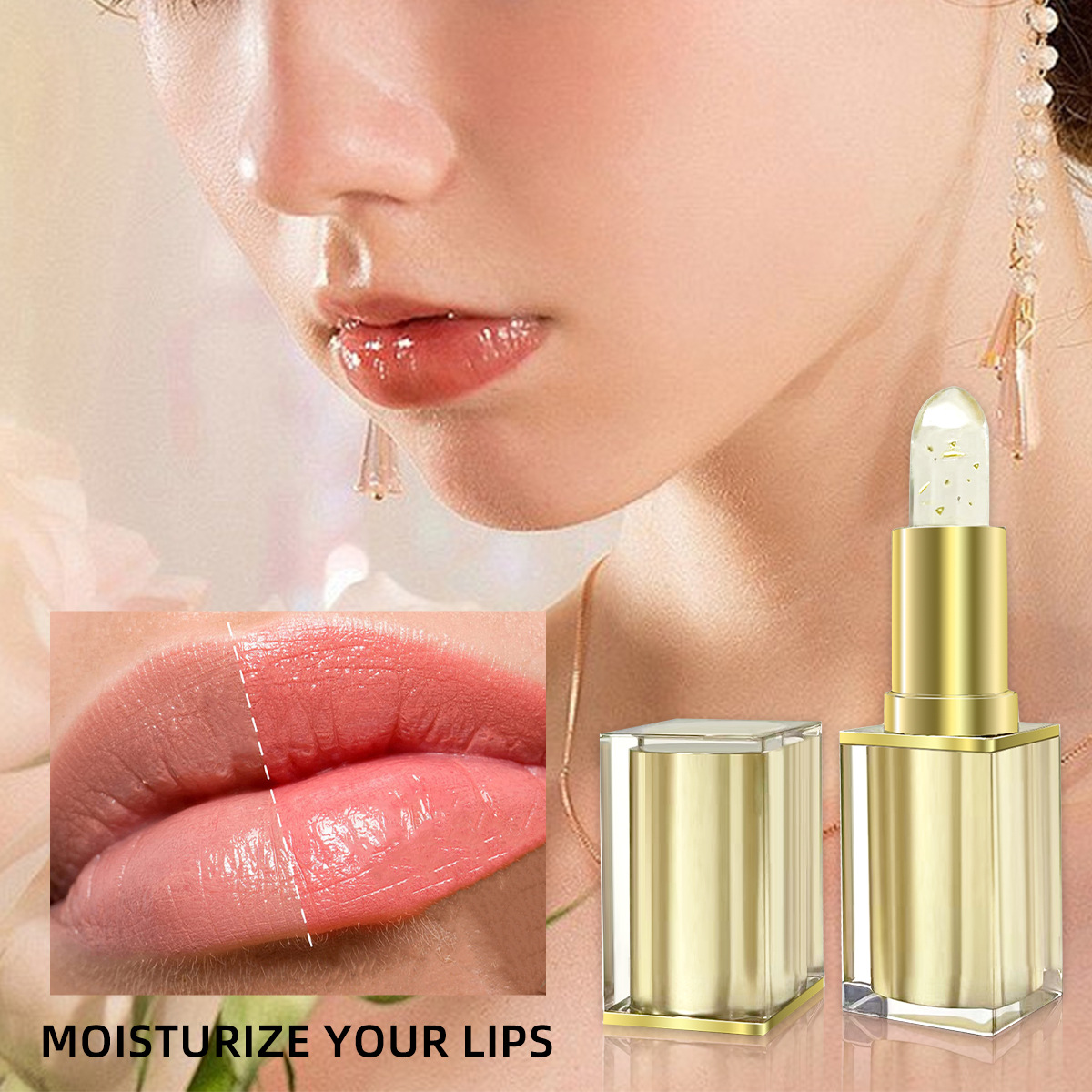 Трансформирующаяся по цвету помада, не оставляет следов, золотистая, увлажняющая, стойкая, не прилипает к чашке, предотвращает обветривание