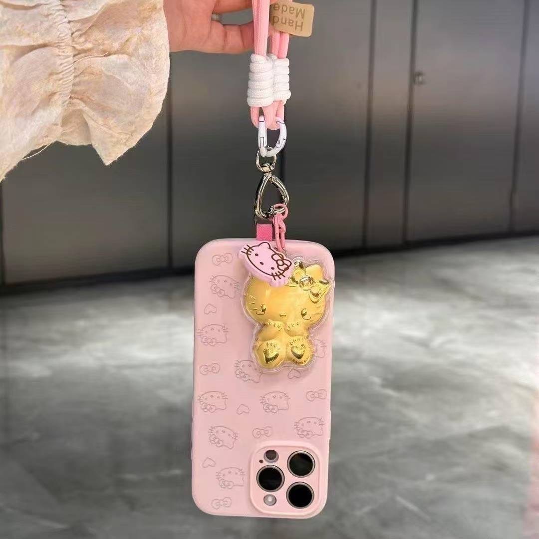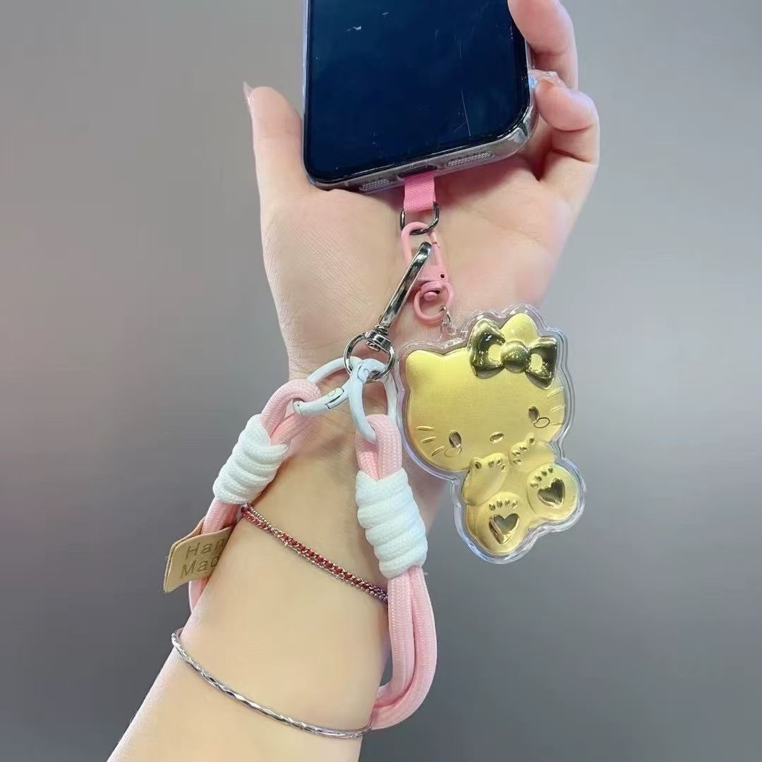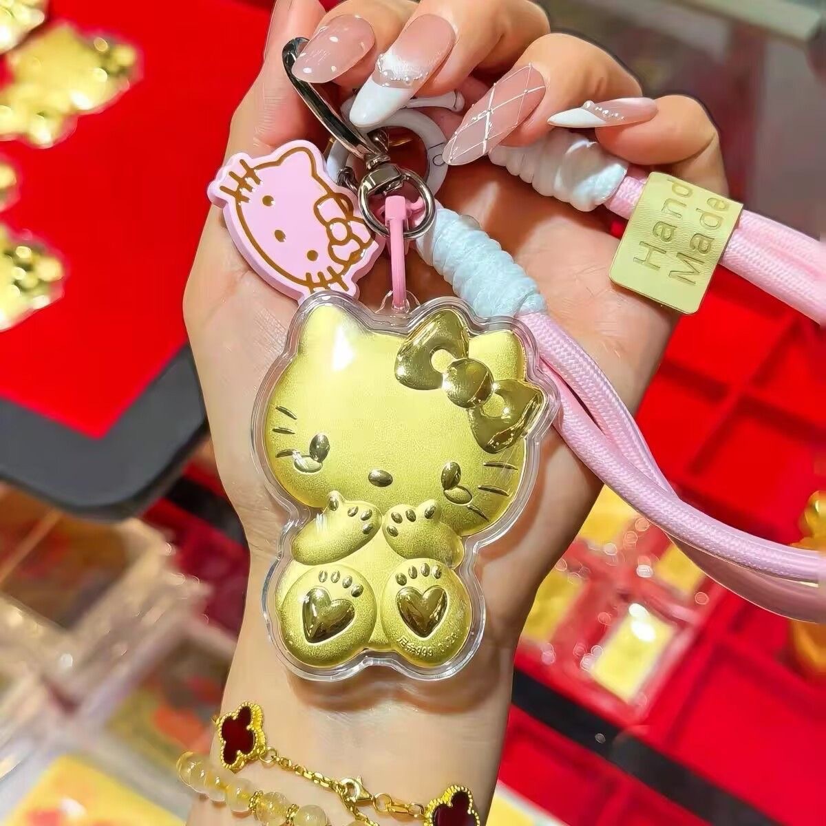 Чистое золото 999KT, брелок для ключей с изображением кота, водная ракушка, золото Hello Kitty, цепочка для мобильного телефона, сумка, кулон Xiaohongshu, горячий стиль, оптовая продажа