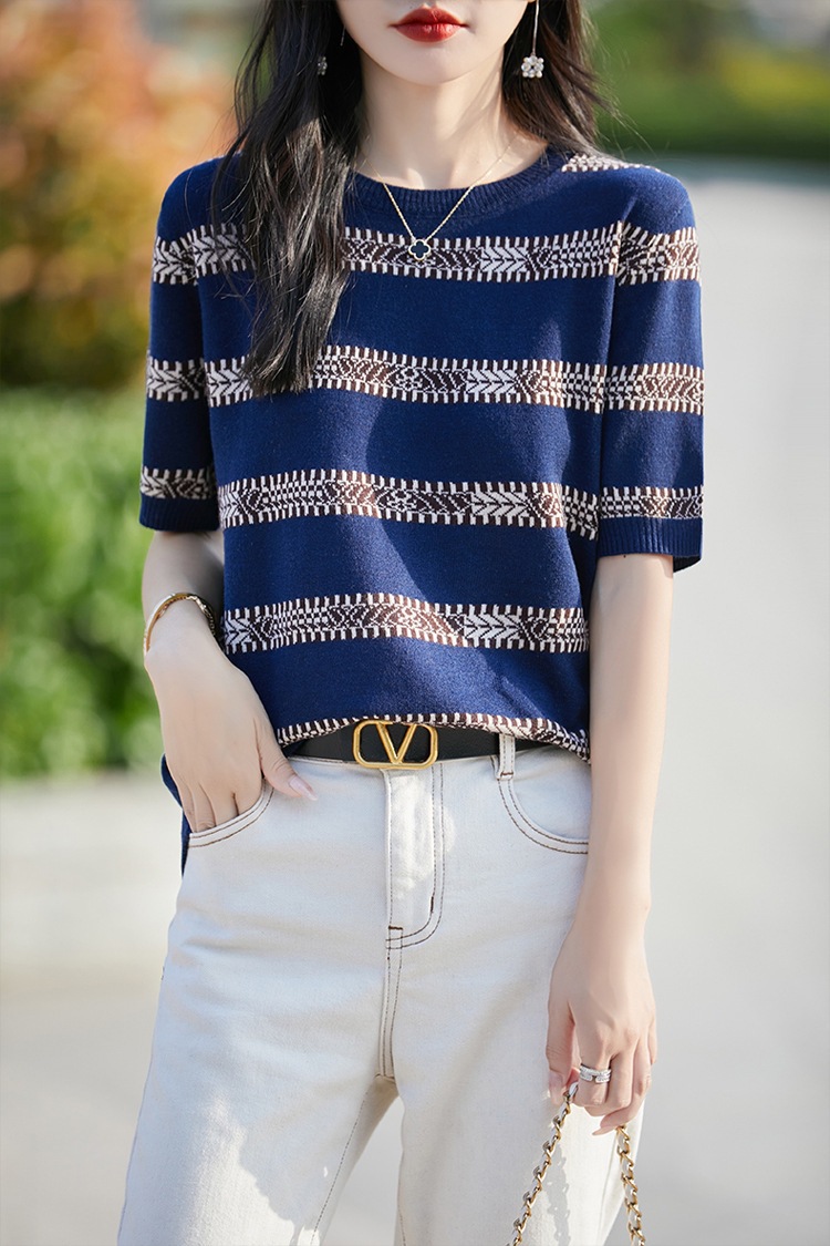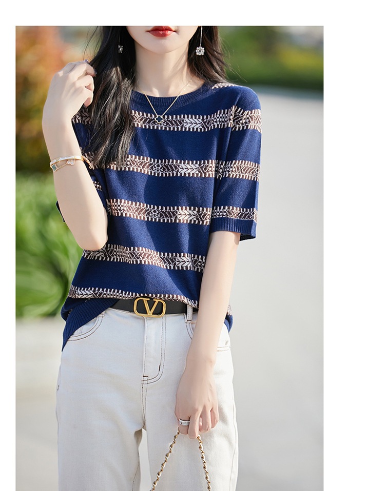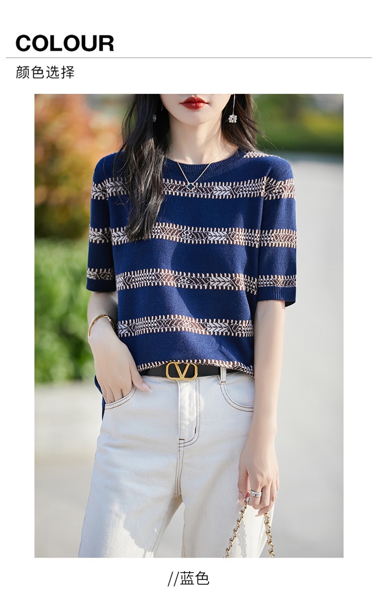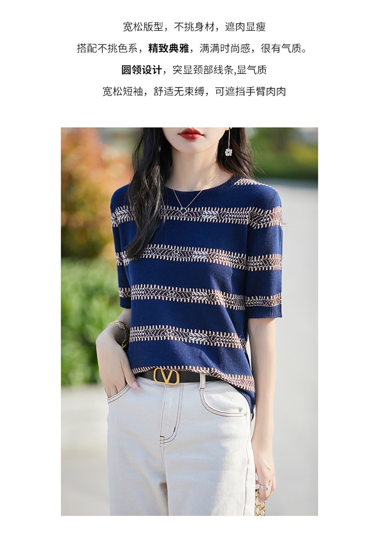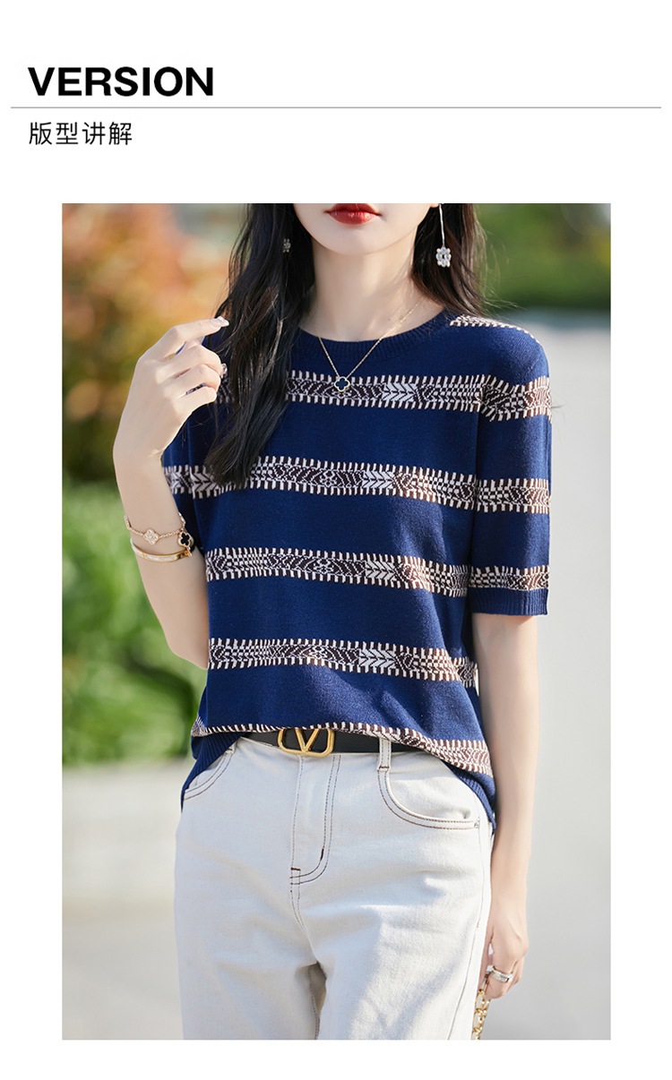 Летний топ 2025 года, женский, с коротким рукавом, круглым вырезом, тонкий, в полоску, ретро, цветные блоки, модный, свободный крой, больших размеров, однотонный, универсальный