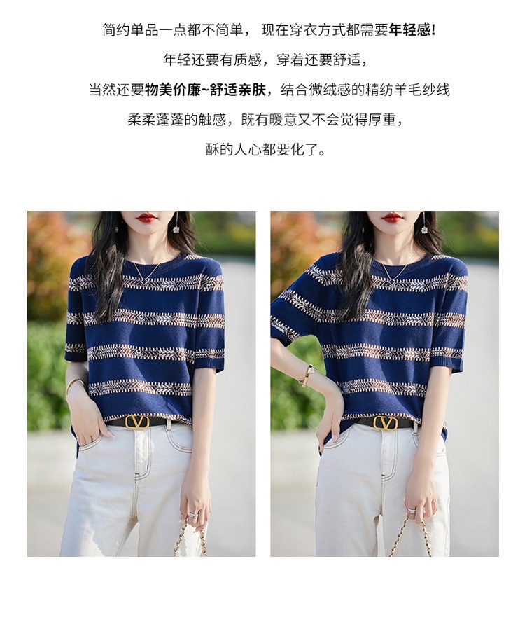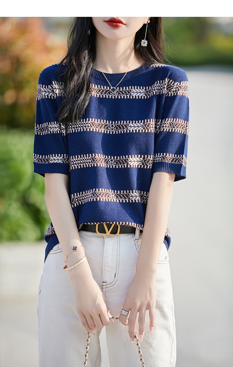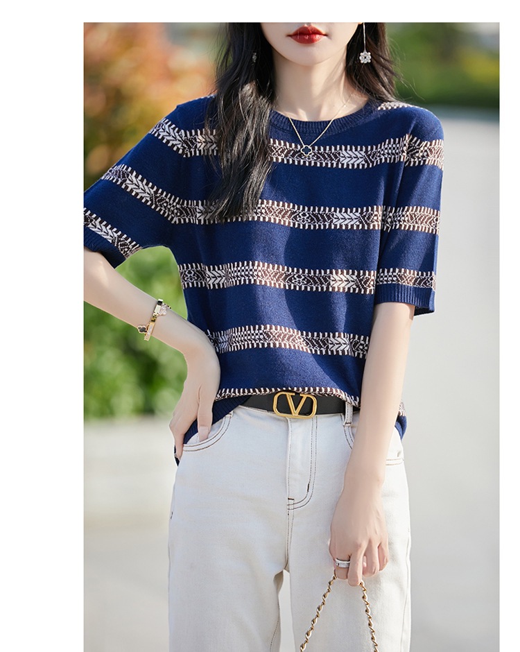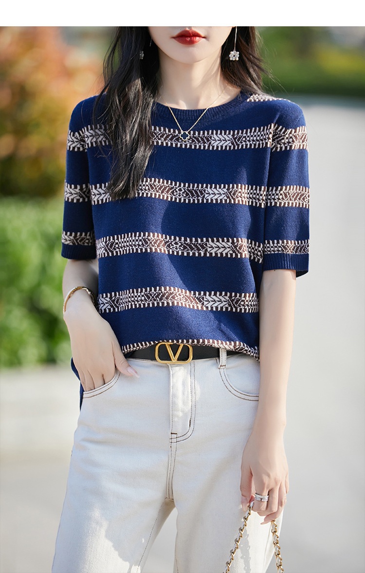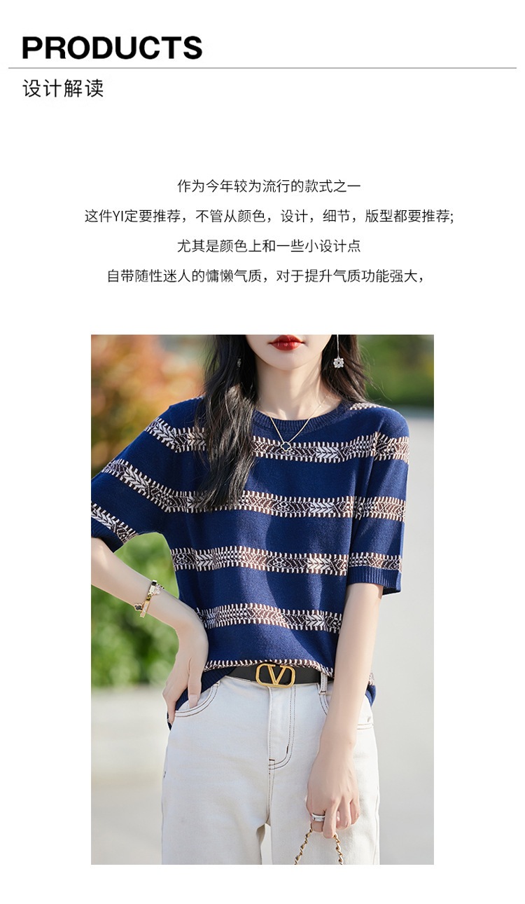 Летний топ 2025 года, женский, с коротким рукавом, круглым вырезом, тонкий, в полоску, ретро, цветные блоки, модный, свободный крой, больших размеров, однотонный, универсальный