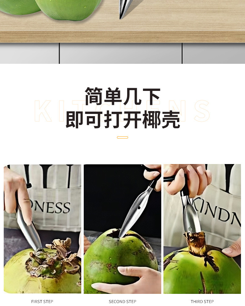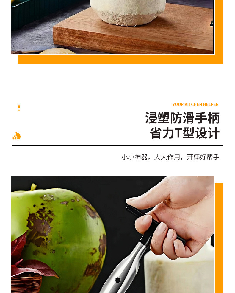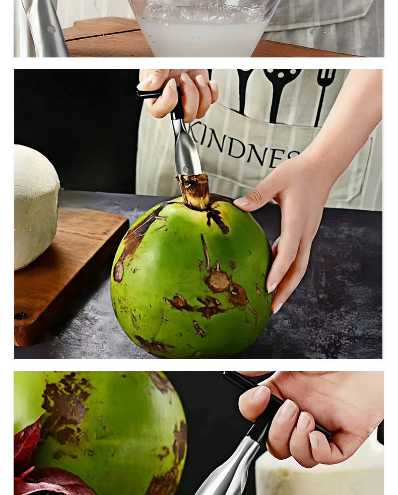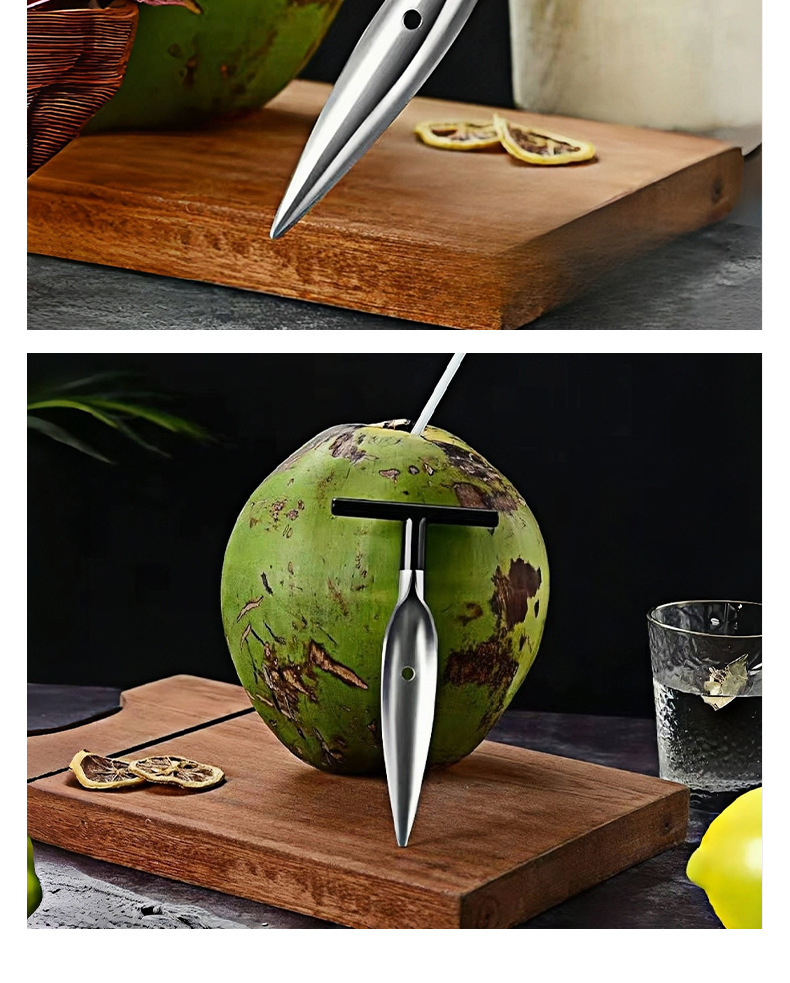 Нержавеющая сталь Кокосовый открыватель кокосового кокосового конуса Кокосовый зеленый перфоратор Специальный кокосовый открыватель кокосового инструмента