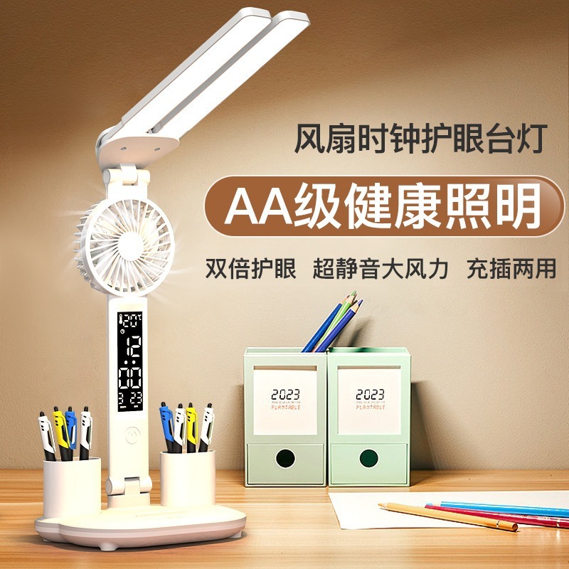Светодиодная умная настольная лампа для учебы, настольная лампа для чтения в общежитии колледжа, перезаряжаемая прикроватная лампа с вентилятором для спальни, дропшиппинг