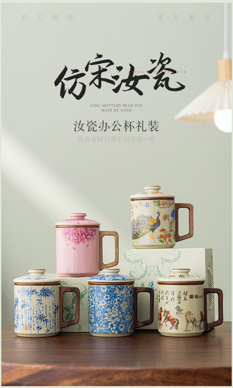 [Синий и белый] Чашка для чая Ru Kiln; [Синий бамбук] Чашка чая Ru Kiln; [Павлин] Чашка чая в печи Ру; 【Восемь лошадей】Чашка чая Ru Kiln; 【Пион】Чашка для чая Ru Kiln