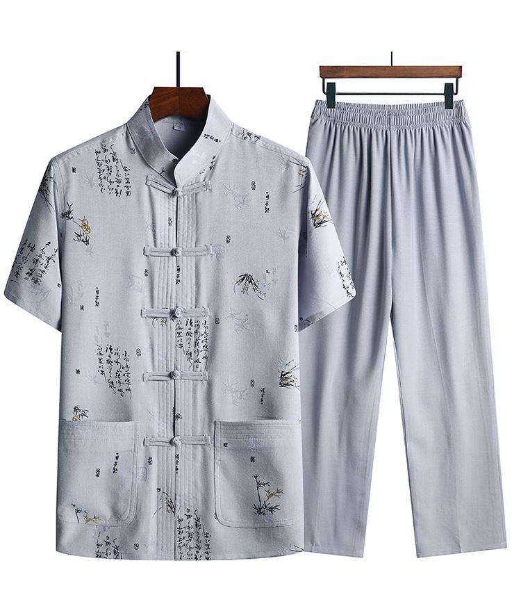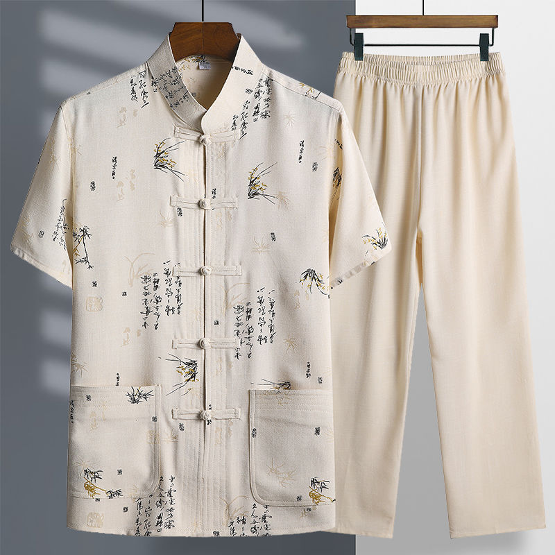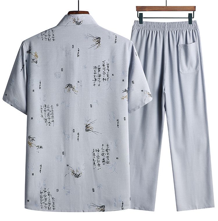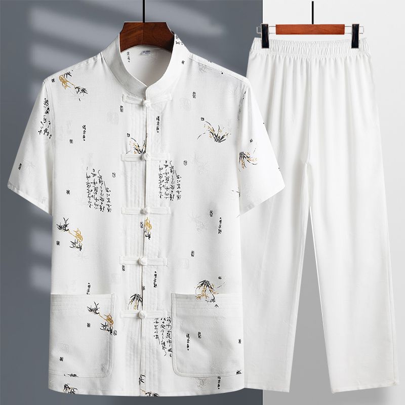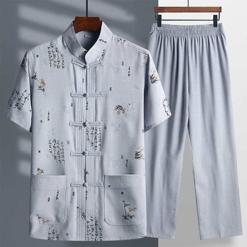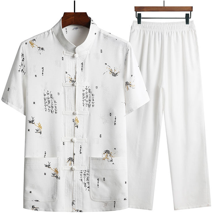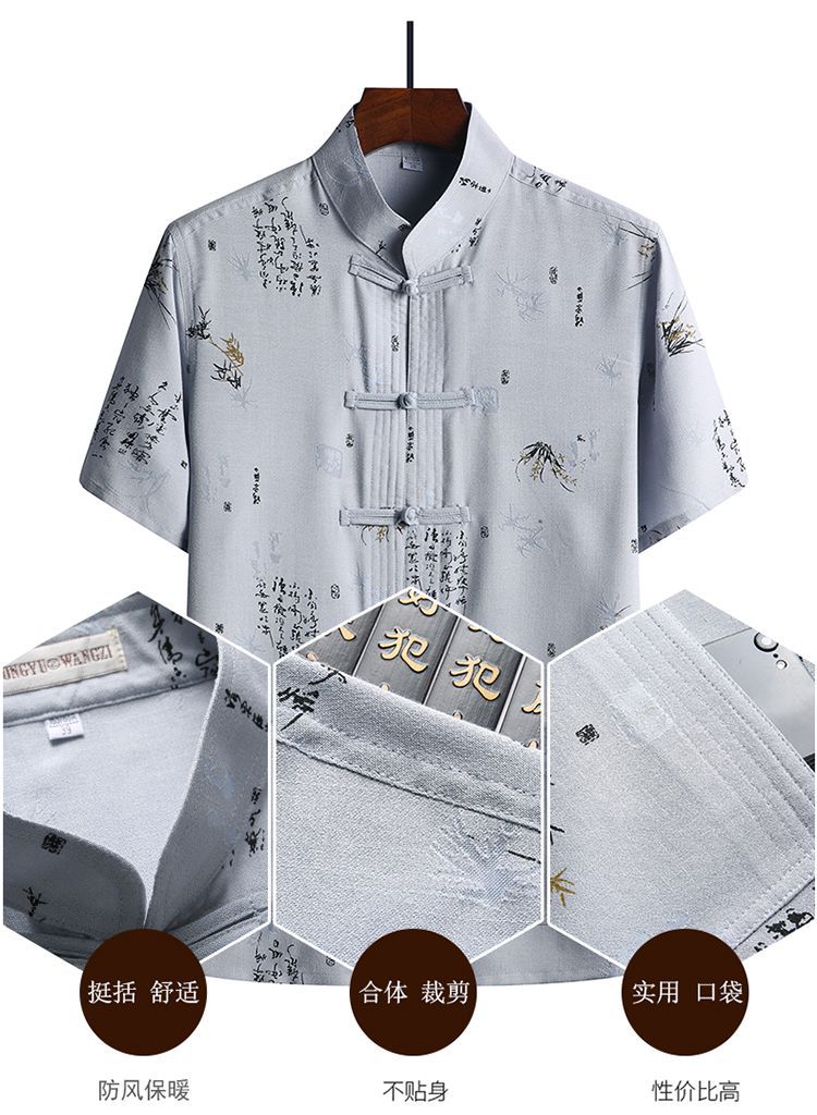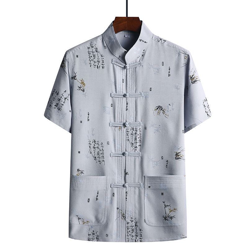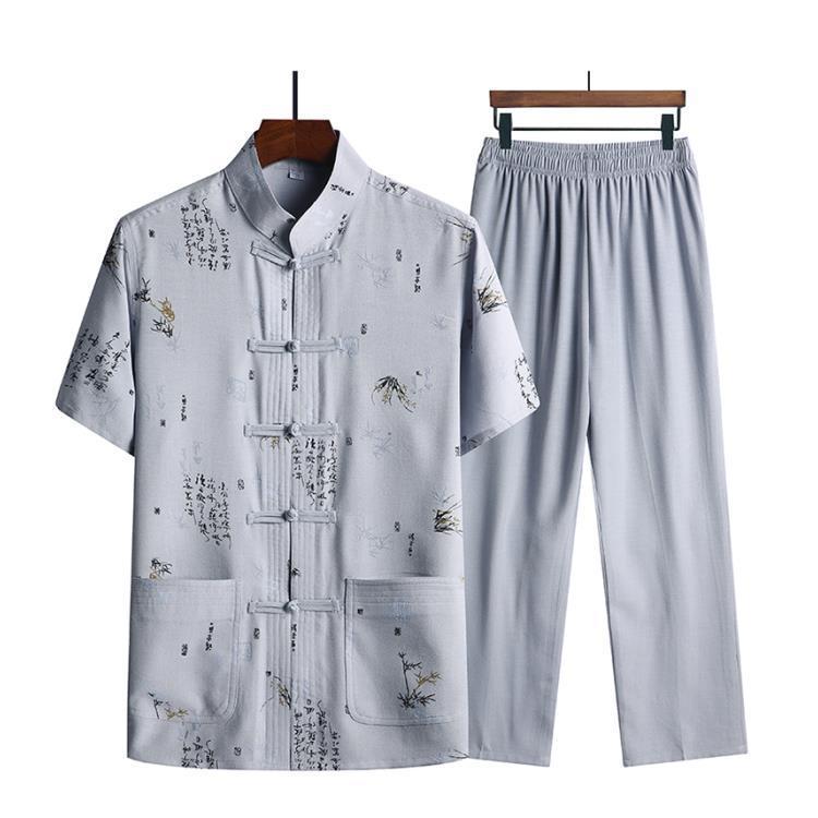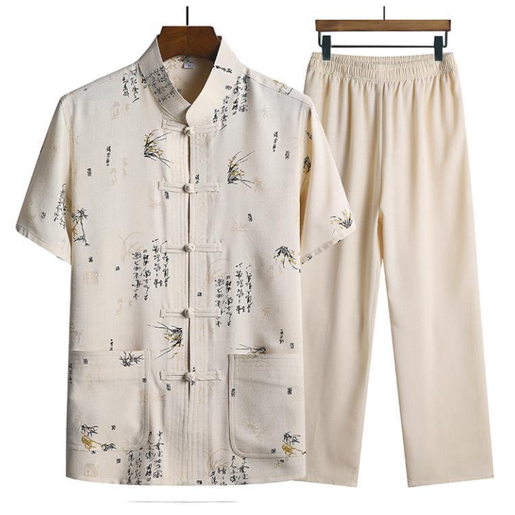 Мужская рубашка из хлопка и льна в китайском стиле, мужская летняя рубашка с короткими рукавами для среднего и пожилого возраста, костюм Тан, этнический костюм для утренних упражнений, костюм династии Хань, дедушка