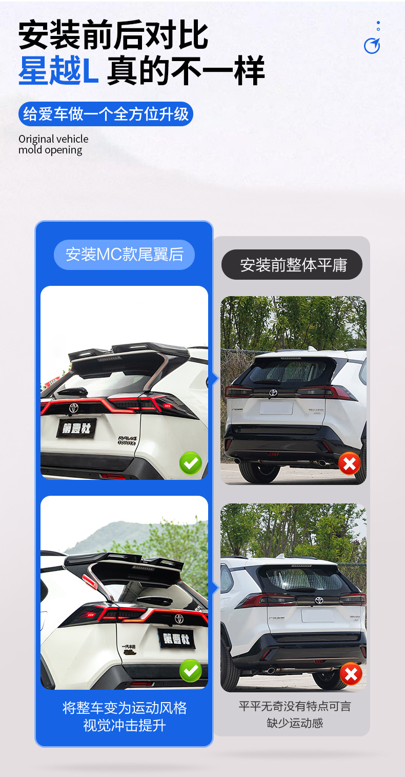Подходит для Toyota RAV4 (20-25 модели), Rongfang/Weilanda, задний спойлер MC пятого поколения, не требует сверления.