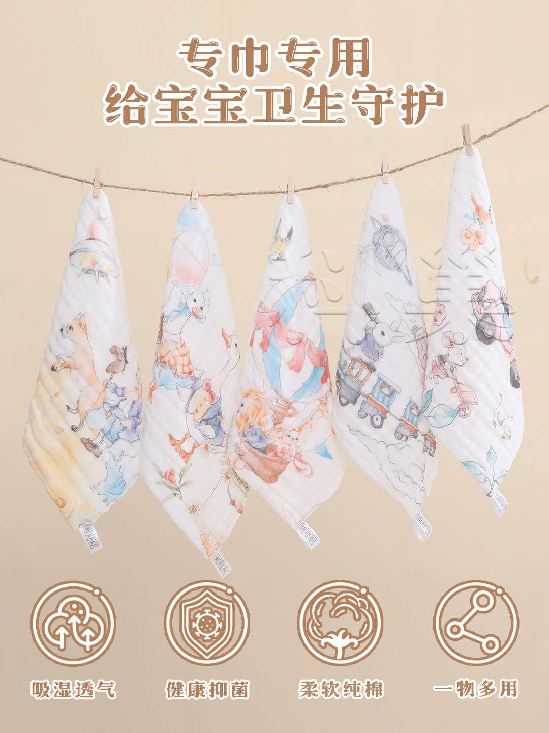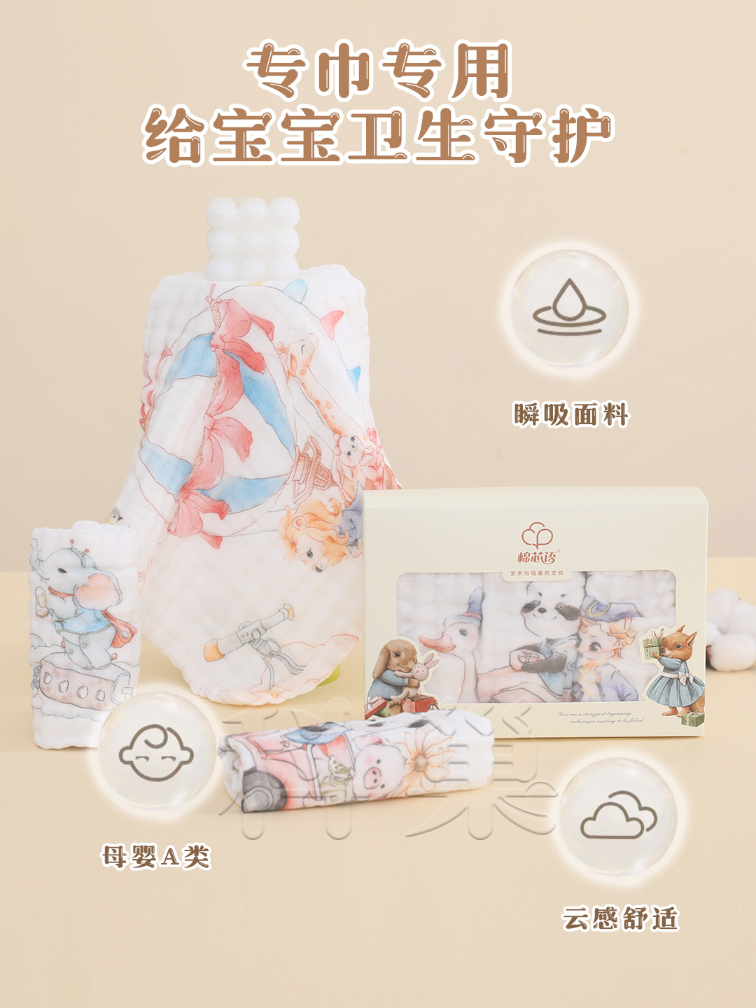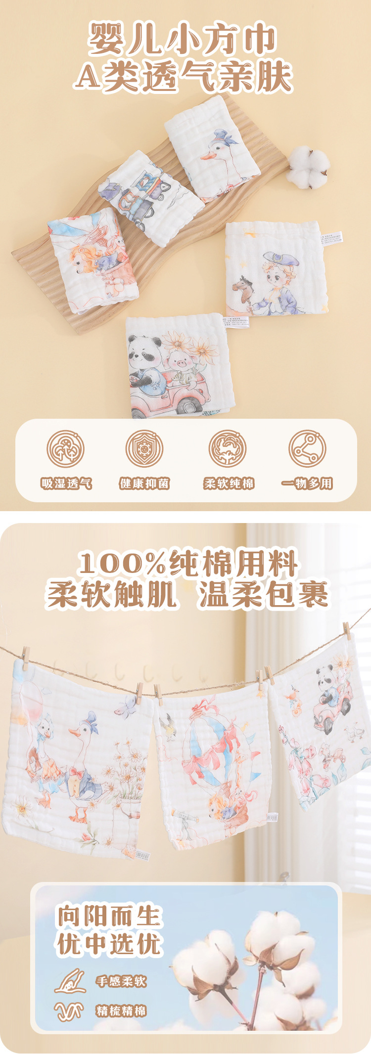 新生儿纱布方巾,宝宝口水巾 ,擦手巾,独花方巾,