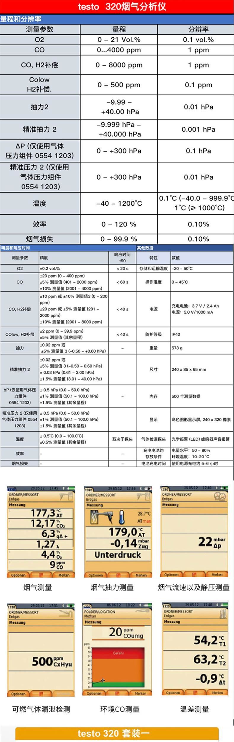 Дымовые газы, всасывание дымовых газов, давление, обнаружение утечек газа, измерение CO окружающей среды и разницы температур