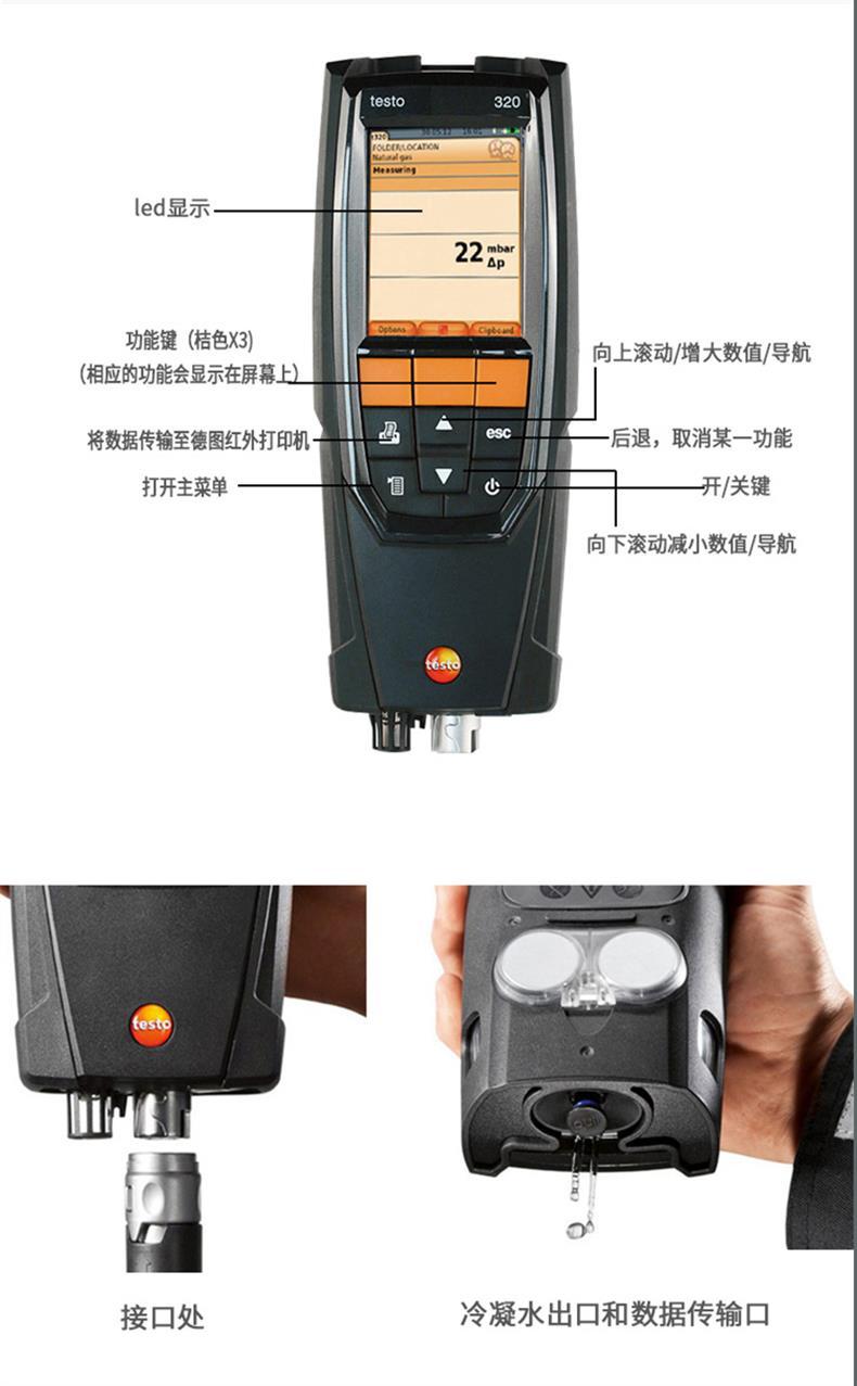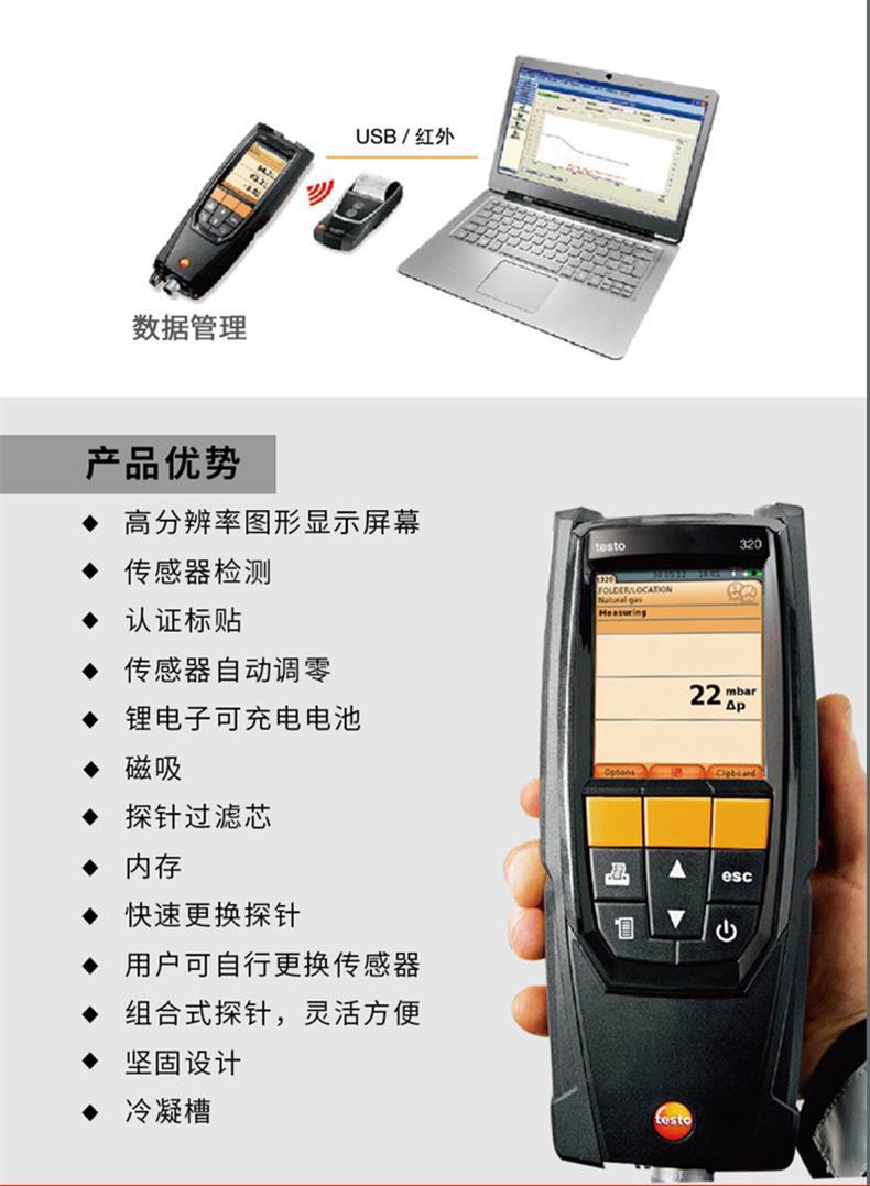 Газоанализатор дымовых газов Testo testo320, тестер CO/O2, детектор КПД горения котла