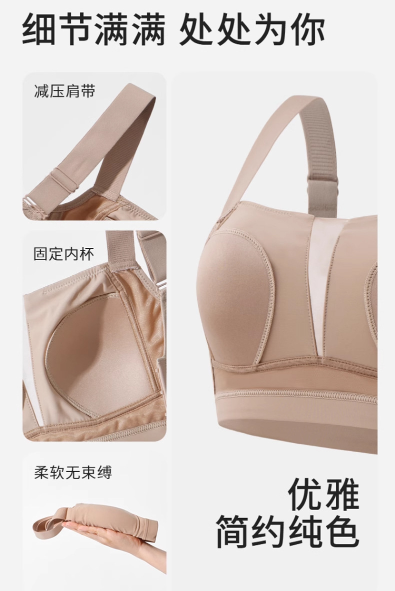 собрать; Бесследный; дышащий; подталкивать вверх; Интересный; Красивая спина; Впитывать пот; Антиэкспозиция; Регулируемый тип; удобный; Боковой сбор; Закройте вторичные груди; Большая грудь кажется маленькой