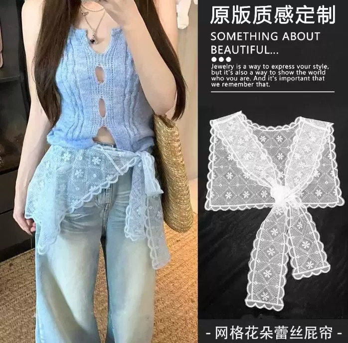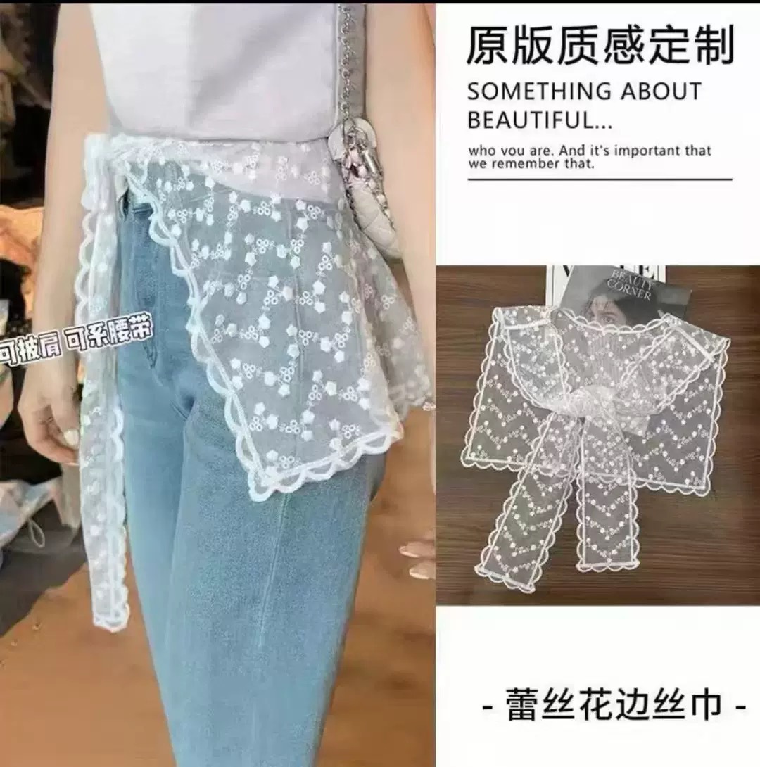 Корейский стиль, кружевной пояс с вышивкой, шелковый шарф, многослойная газовая юбка средней длины, аксессуары для занавесок на ягодицах
