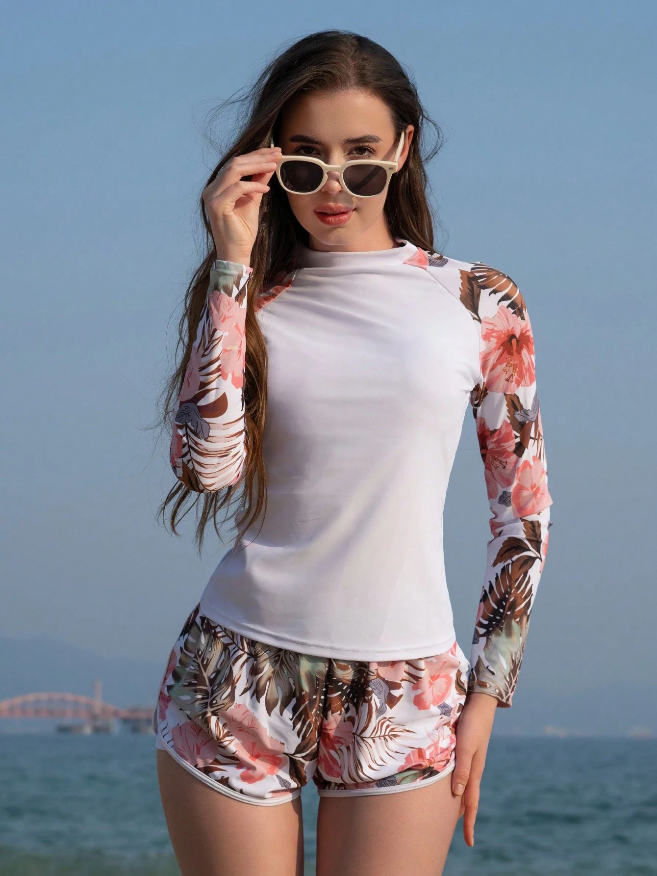 2025 Amazon Европейский и американский внешнеторговый купальник с длинными рукавами, принтованный, двухслойные штаны, женский раздельный танкини