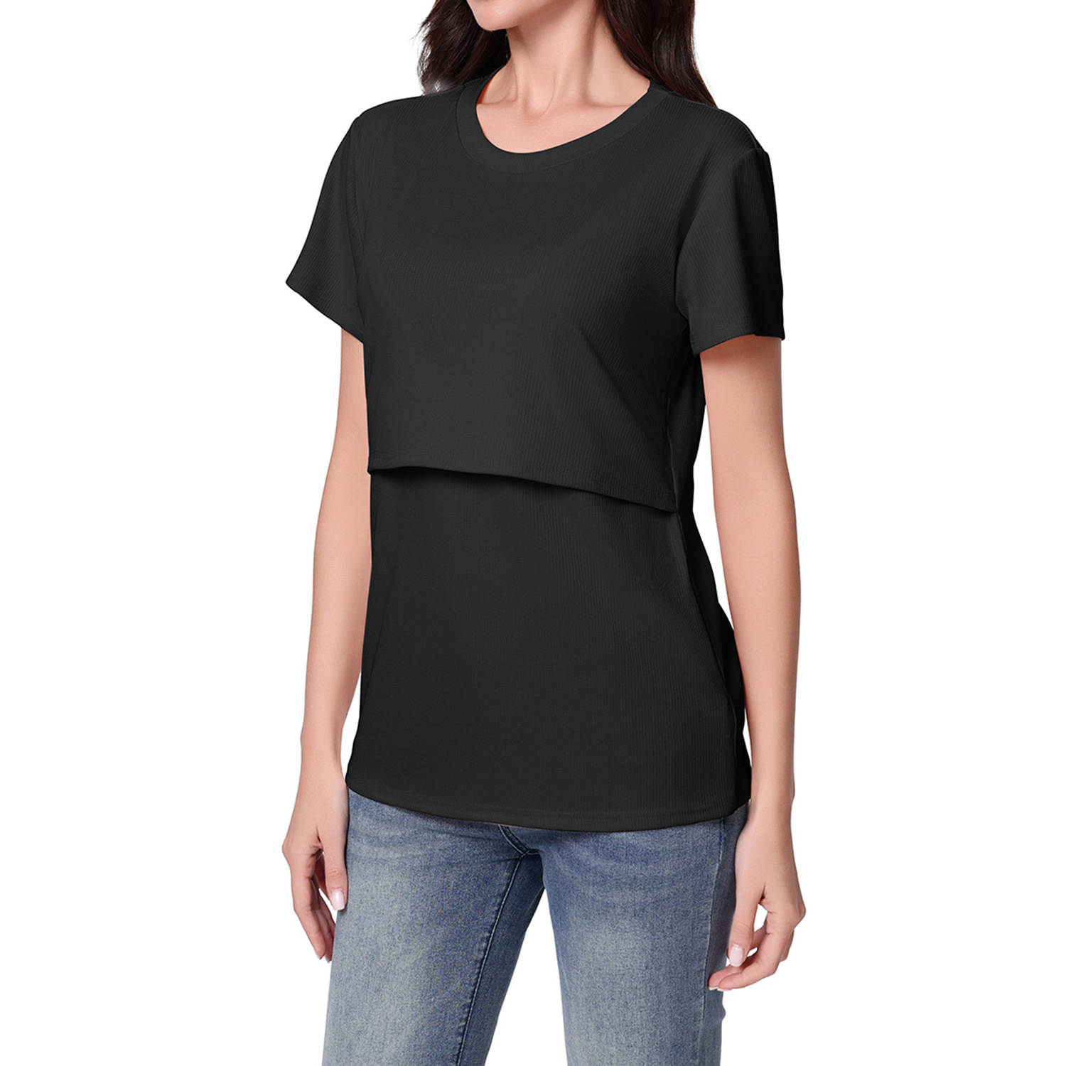 Настоящее фото новой европейской и американской одежды для беременных. Женская популярная женская одежда Amazon в тонкую полоску с короткими рукавами, имитация двух предметов, одежда для кормящих мам ярких цветов.