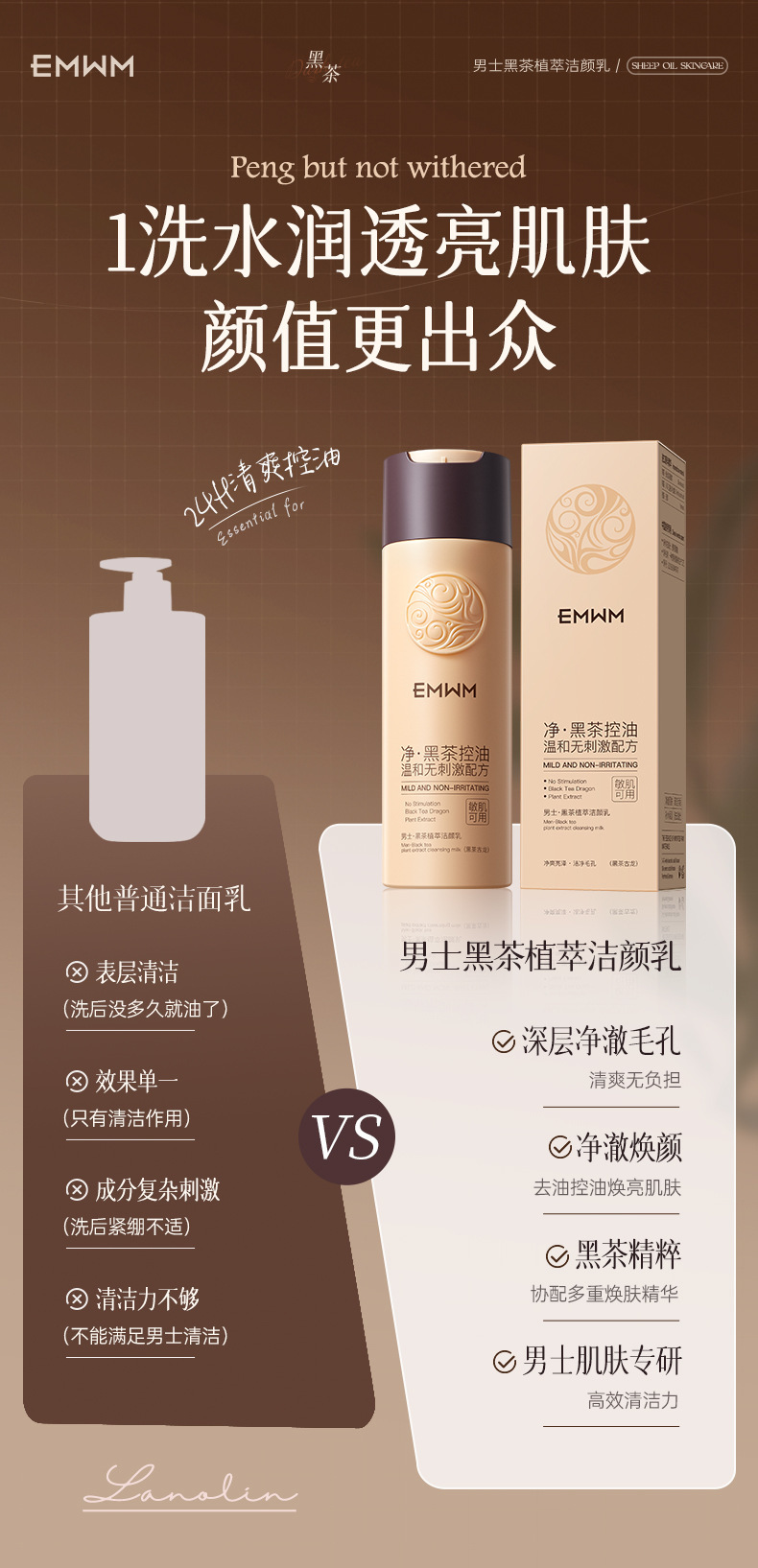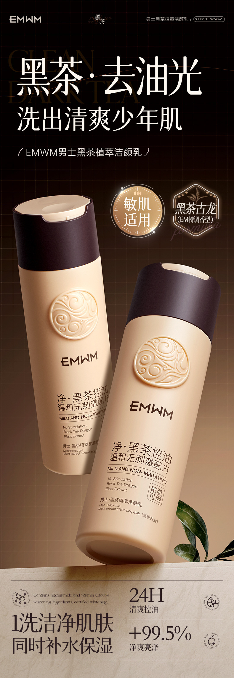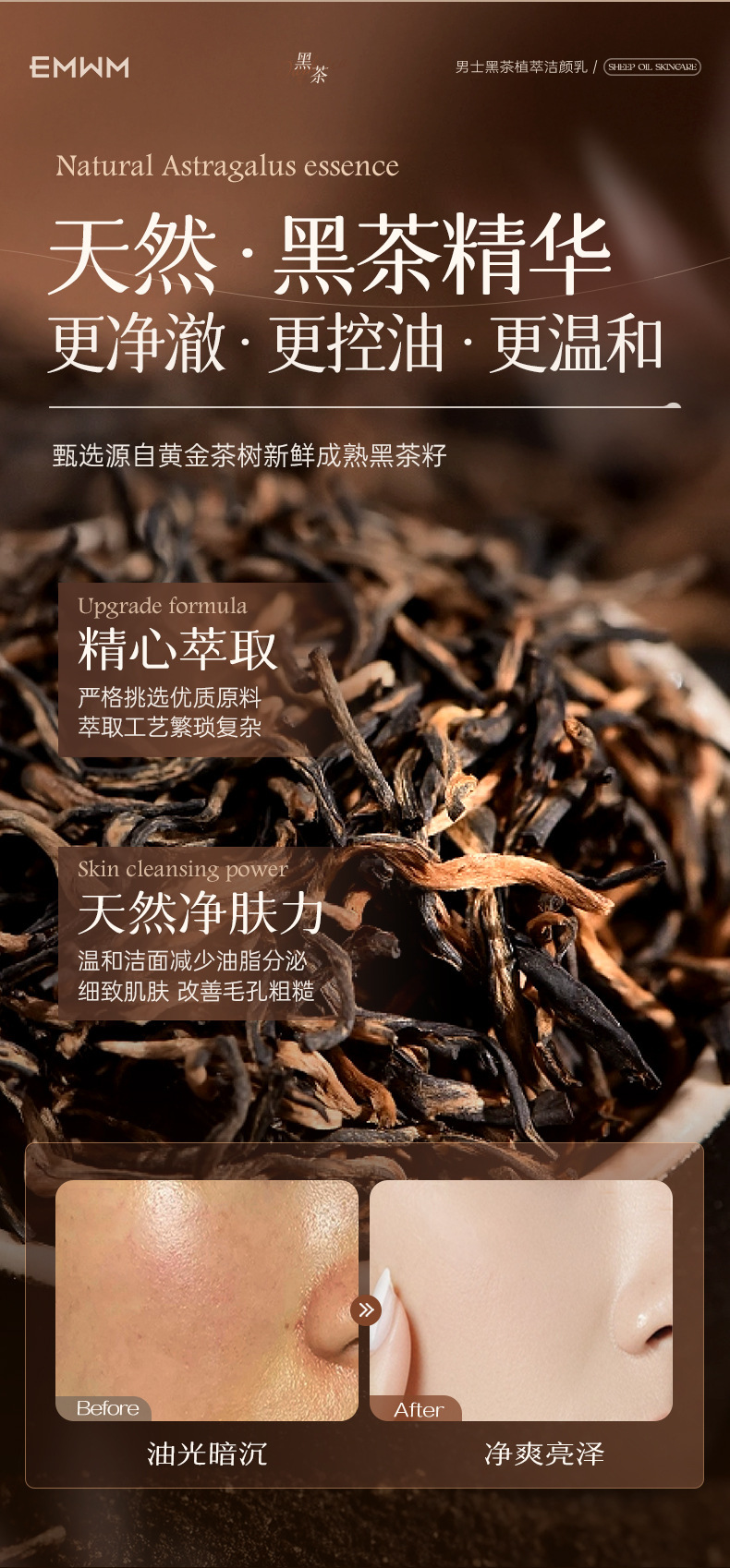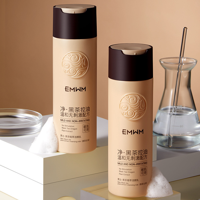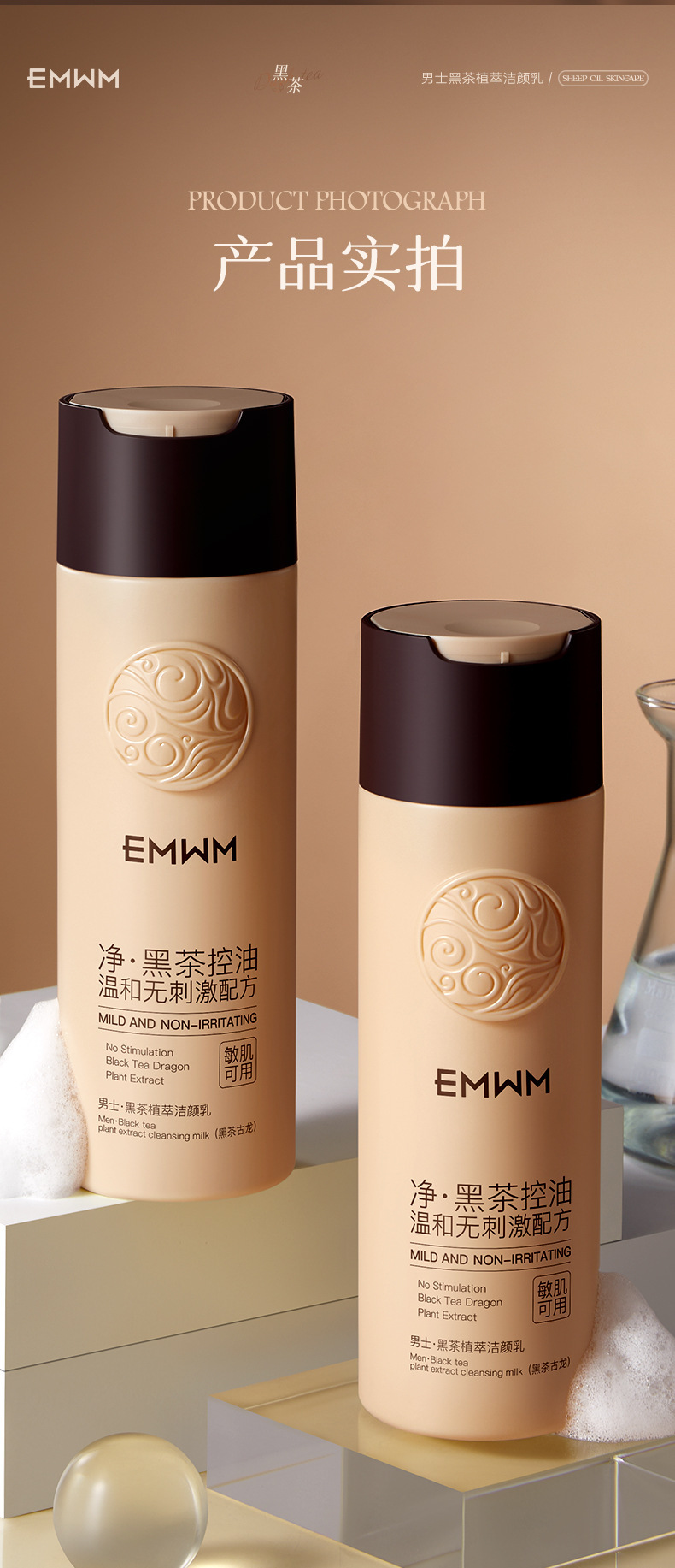 Очищающее молочко с экстрактом черного чая EMWM для мужчин, 200 г; Лосьон для увлажнения кожи EMWM с черным чаем, 200 мл