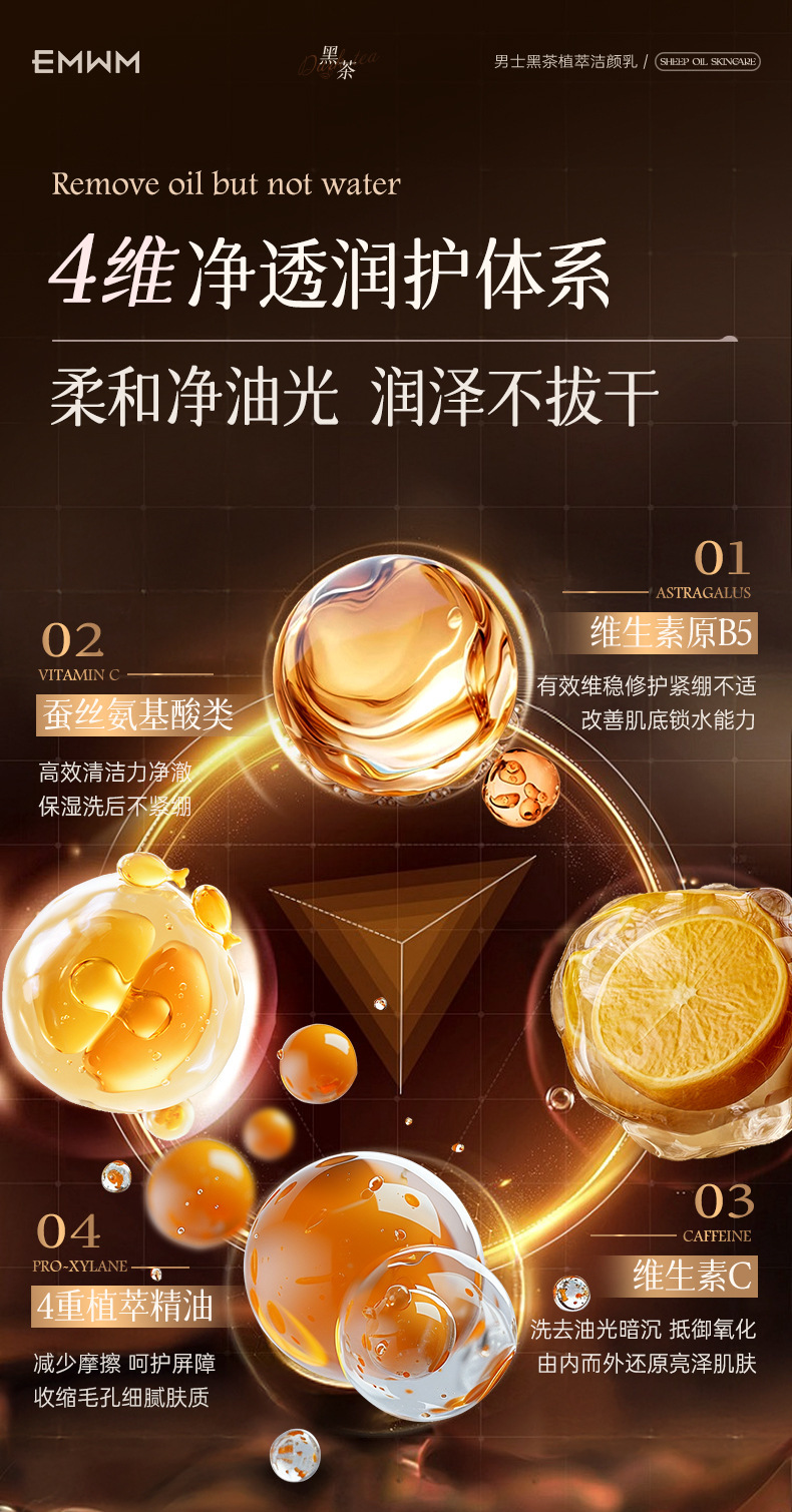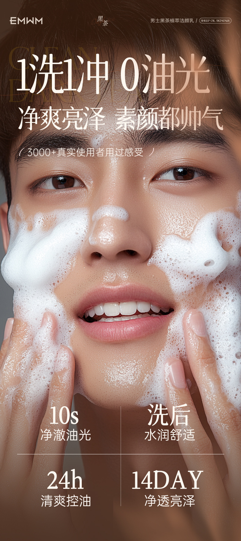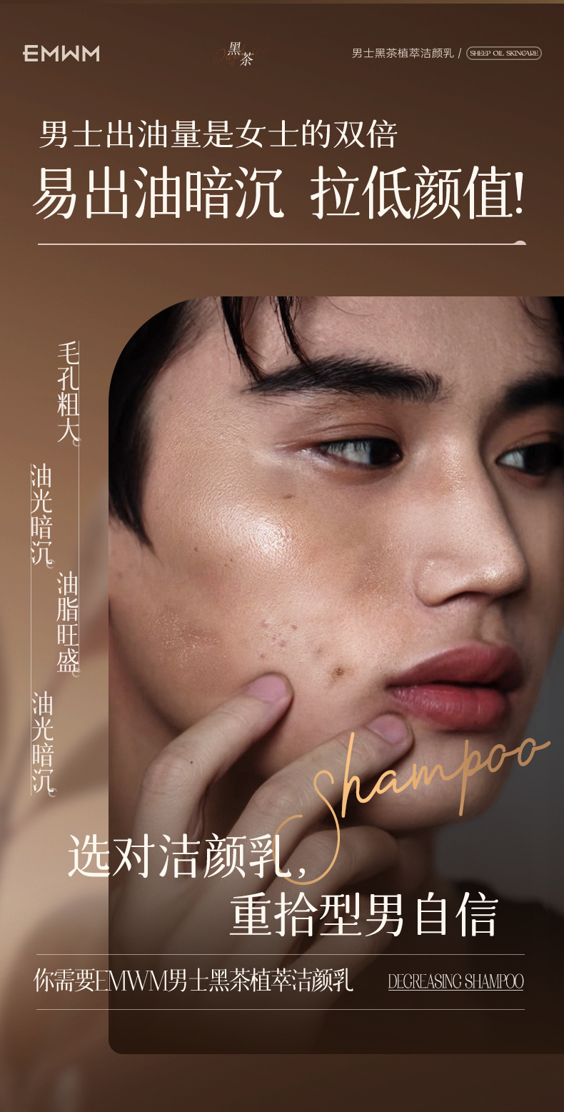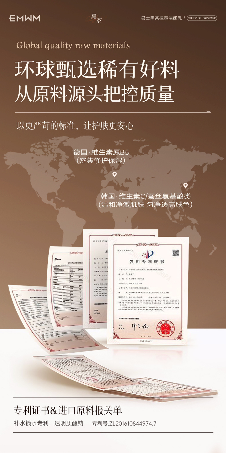 Очищающее молочко с экстрактом черного чая EMWM для мужчин, 200 г; Лосьон для увлажнения кожи EMWM с черным чаем, 200 мл
