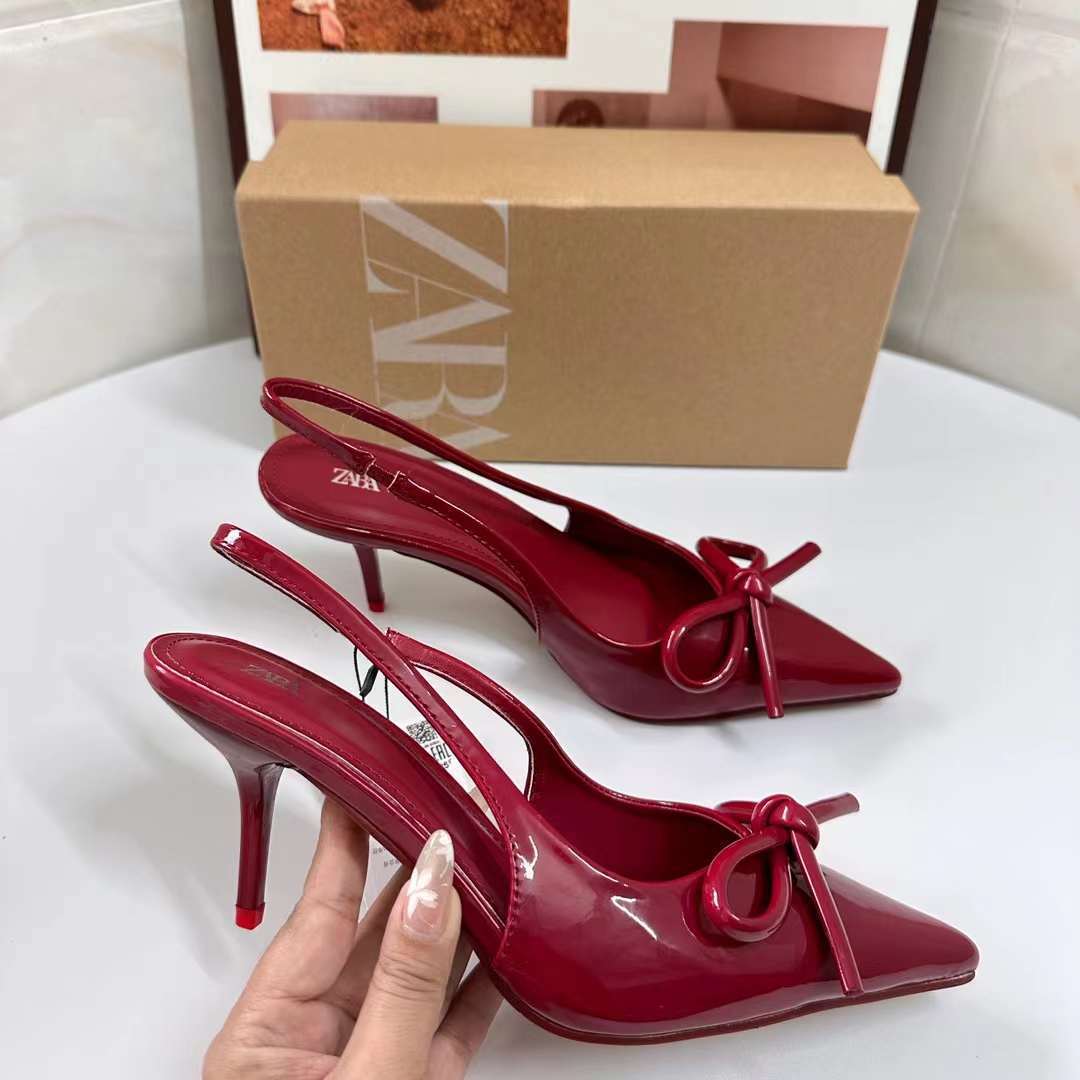 новые модные женские туфли на плоской подошве с открытой спиной, туфли на шпильке, высокие каблуки с неглубоким горлышком, босоножки с пряжкой и острым носком, весенние и осенние банты знаменитостей
